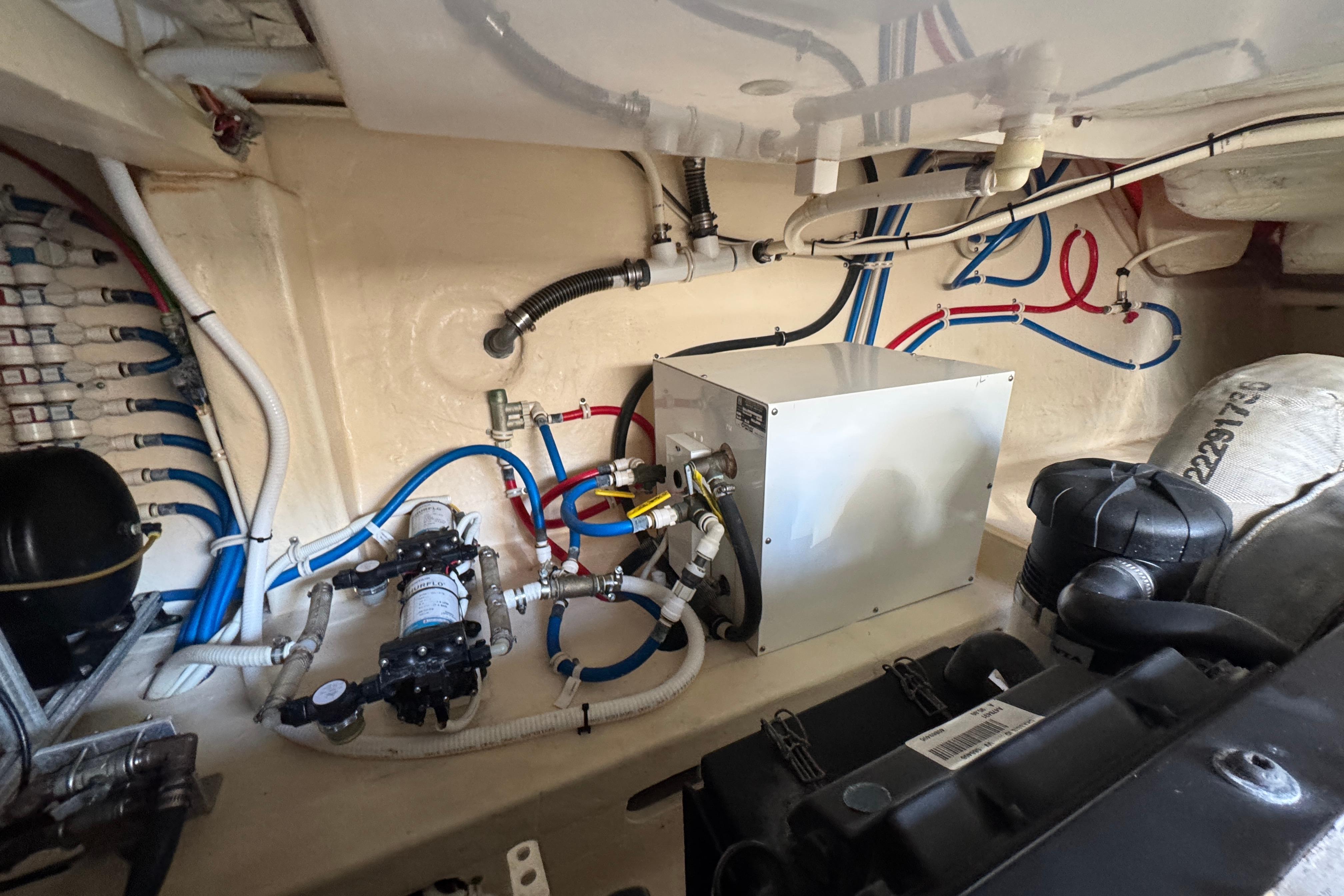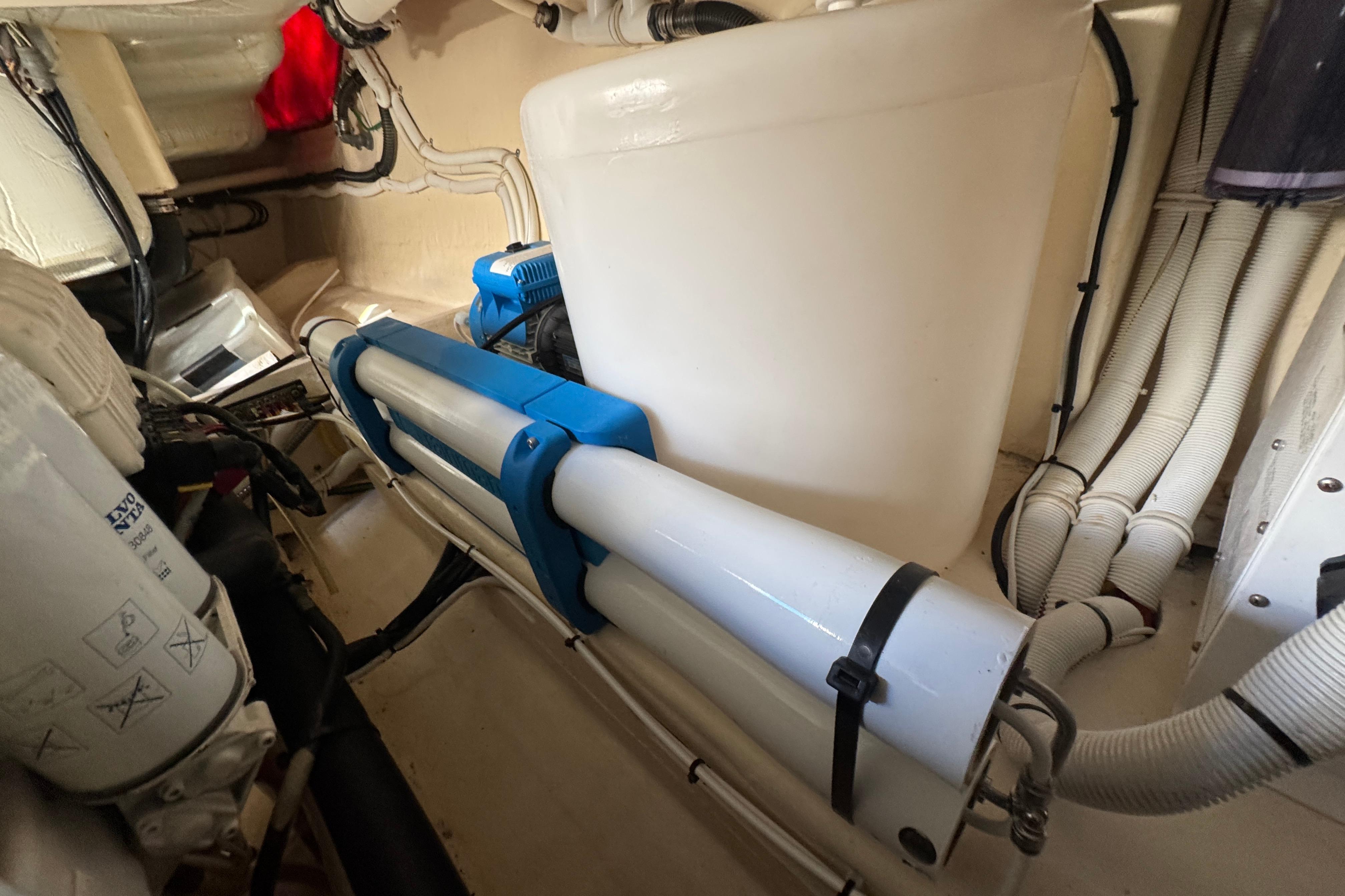 Two new titanium AC compressors installed in the forward stateroom and salon