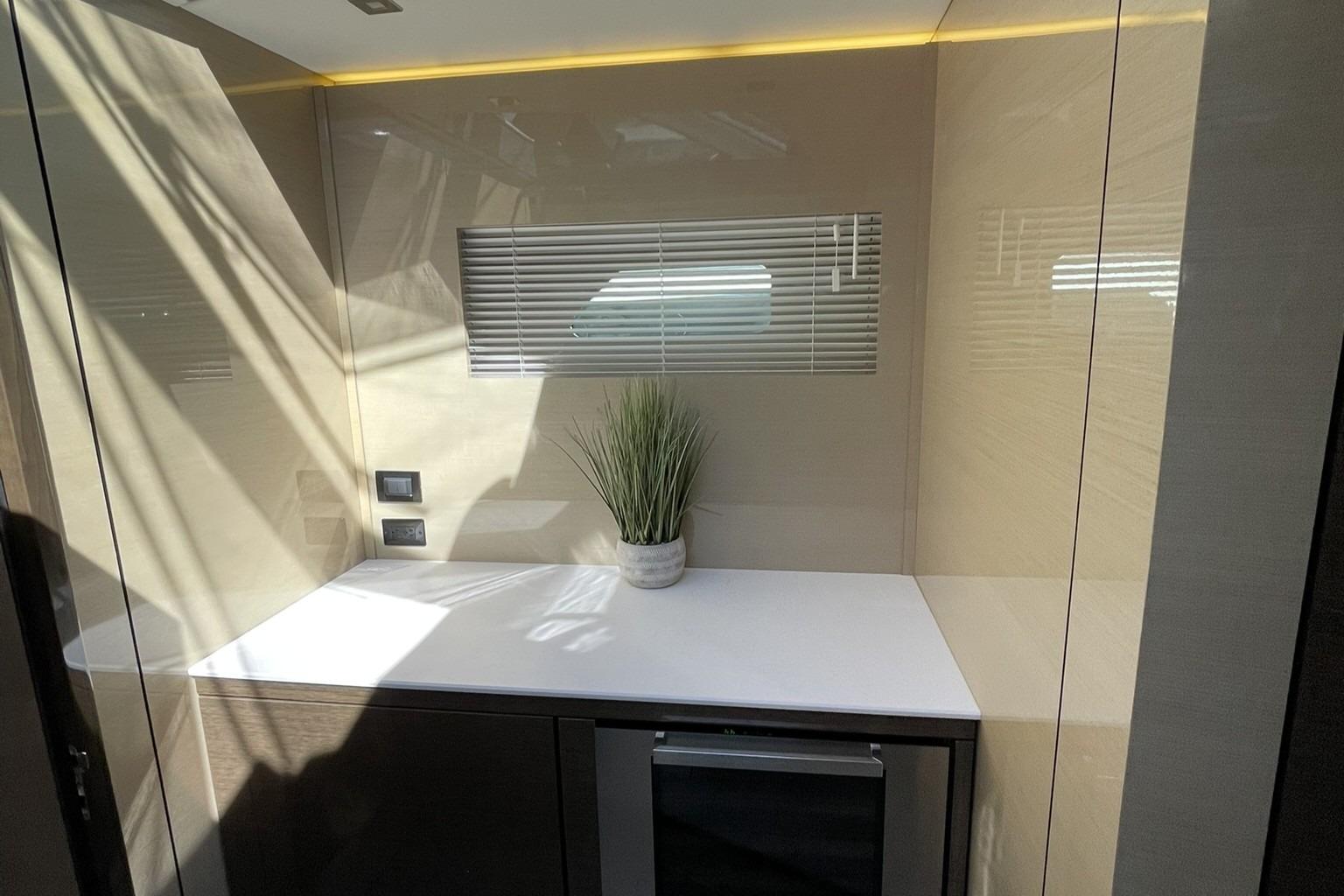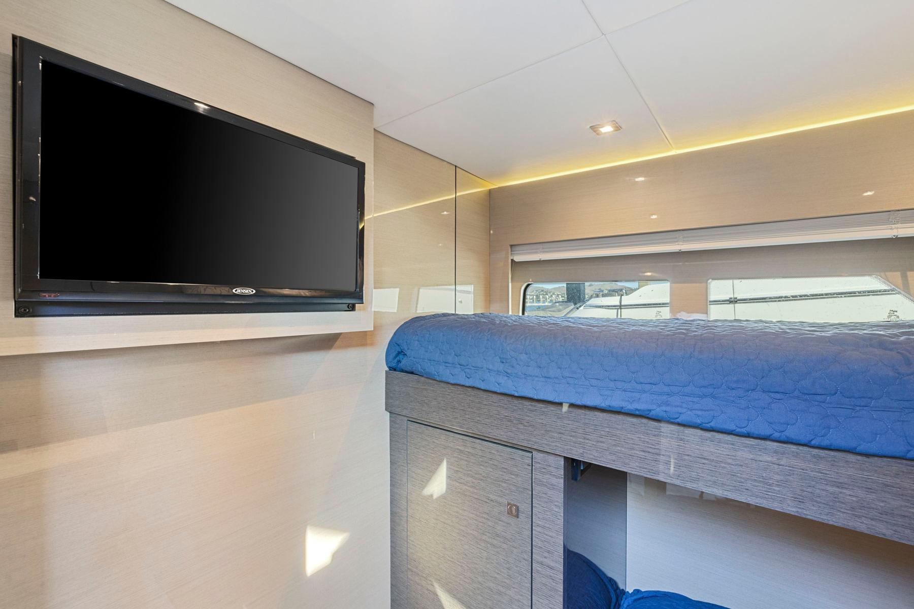 Equipped with nearly every available amenity, this 54 Cantius is powered by the highly regarded Volvo Penta IPS 950 system, delivering outstanding performance, fuel efficiency, and maneuverability. With Dynamic Positioning and a Seakeeper 9 gyrostabilizer, every journey is smooth, quiet, and effortlessly controlled.