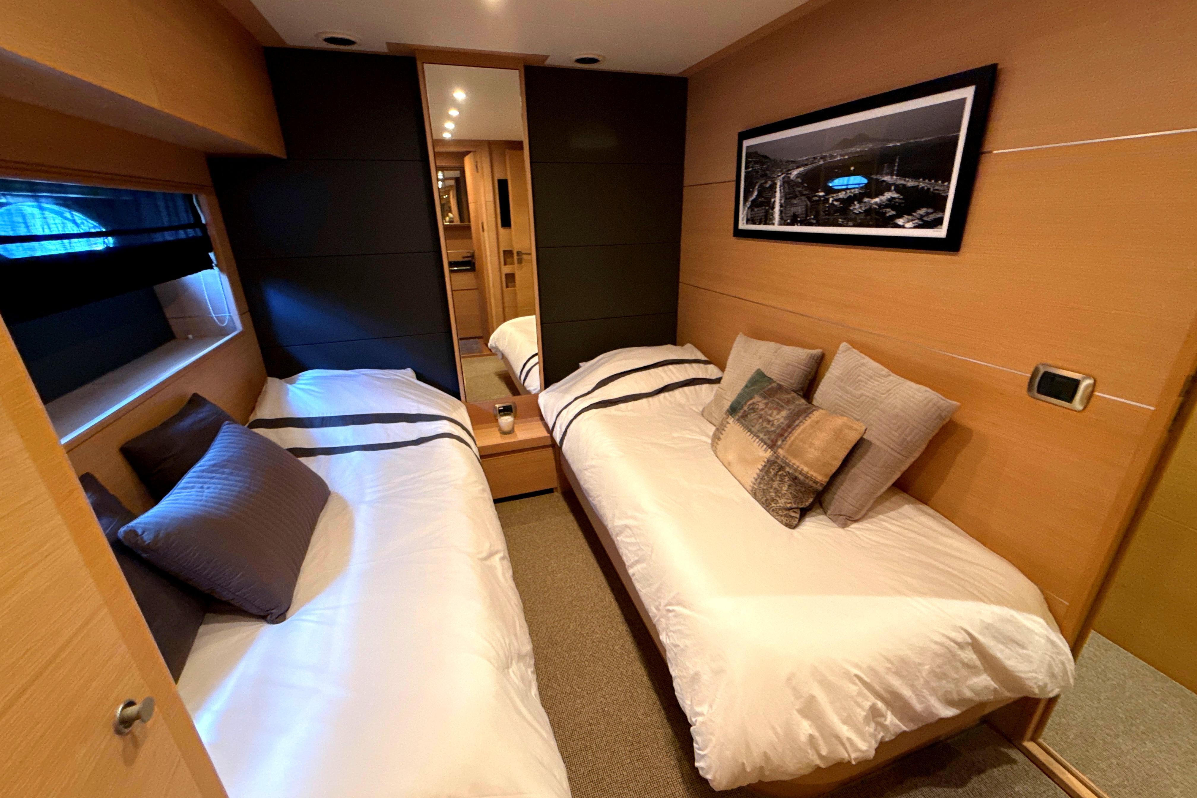 Accommodations: Typically configured with four en-suite cabins, including a full-beam master suite, a VIP stateroom, and two twin cabins—offering generous space for up to 8 guests. Crew quarters are also included.