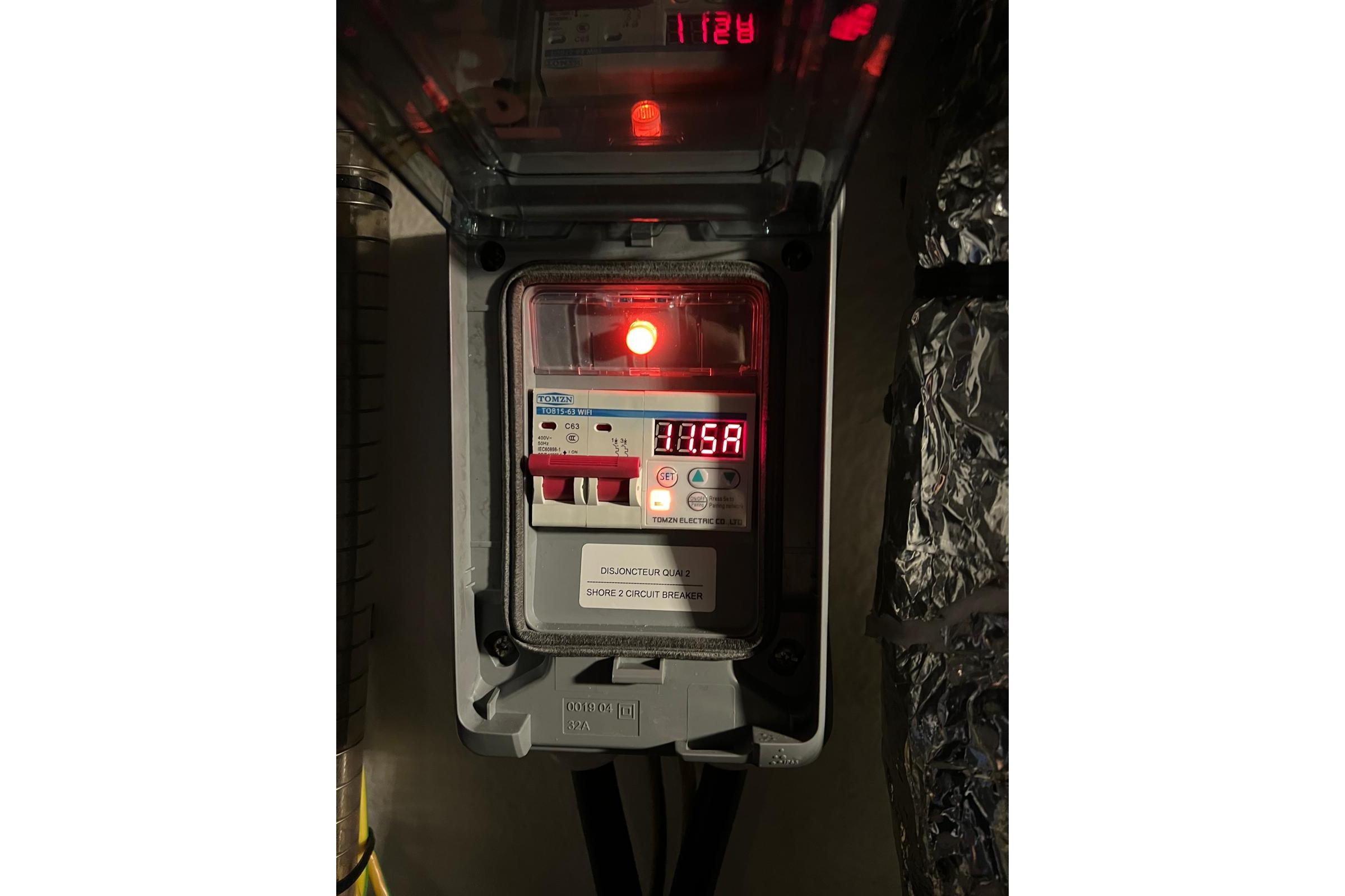 The yacht’s energy independence is unmatched, featuring a 4.7 kW solar array, 1,200 Ah LiFePO₄ battery bank, and dual Victron 6,000 VA inverters.
