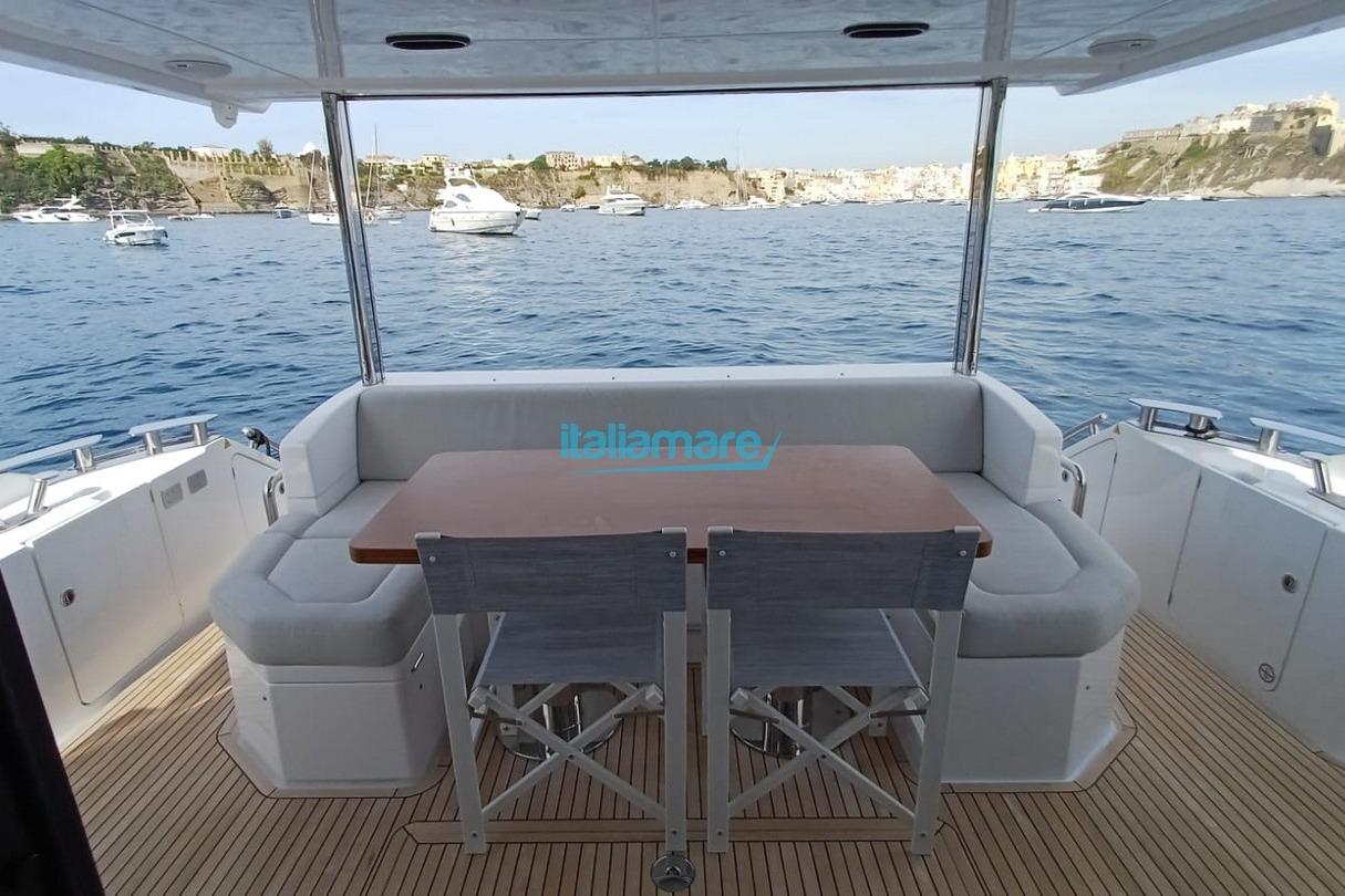 Main accessories: Air conditioning - 20kW generator - GPS - Joystick steering - Seakeeper 9 - Electric awning in the cockpit and on the flybridge - Teak on the flybridge - Teak side decks - Gangway - 2 TVs