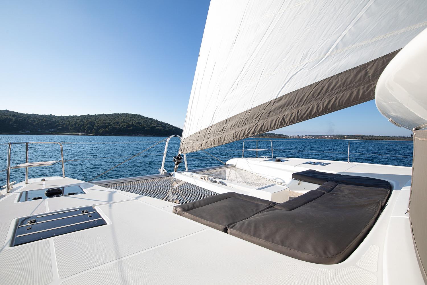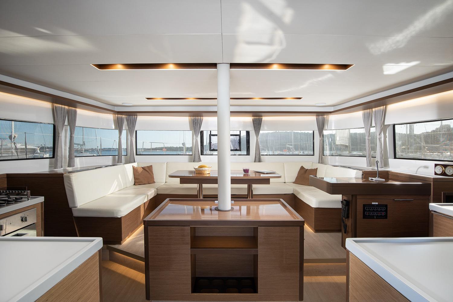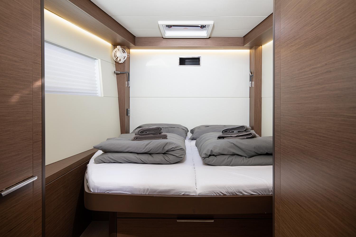 This Lagoon 50 provides accommodation for 12 guests within 6 double cabins: