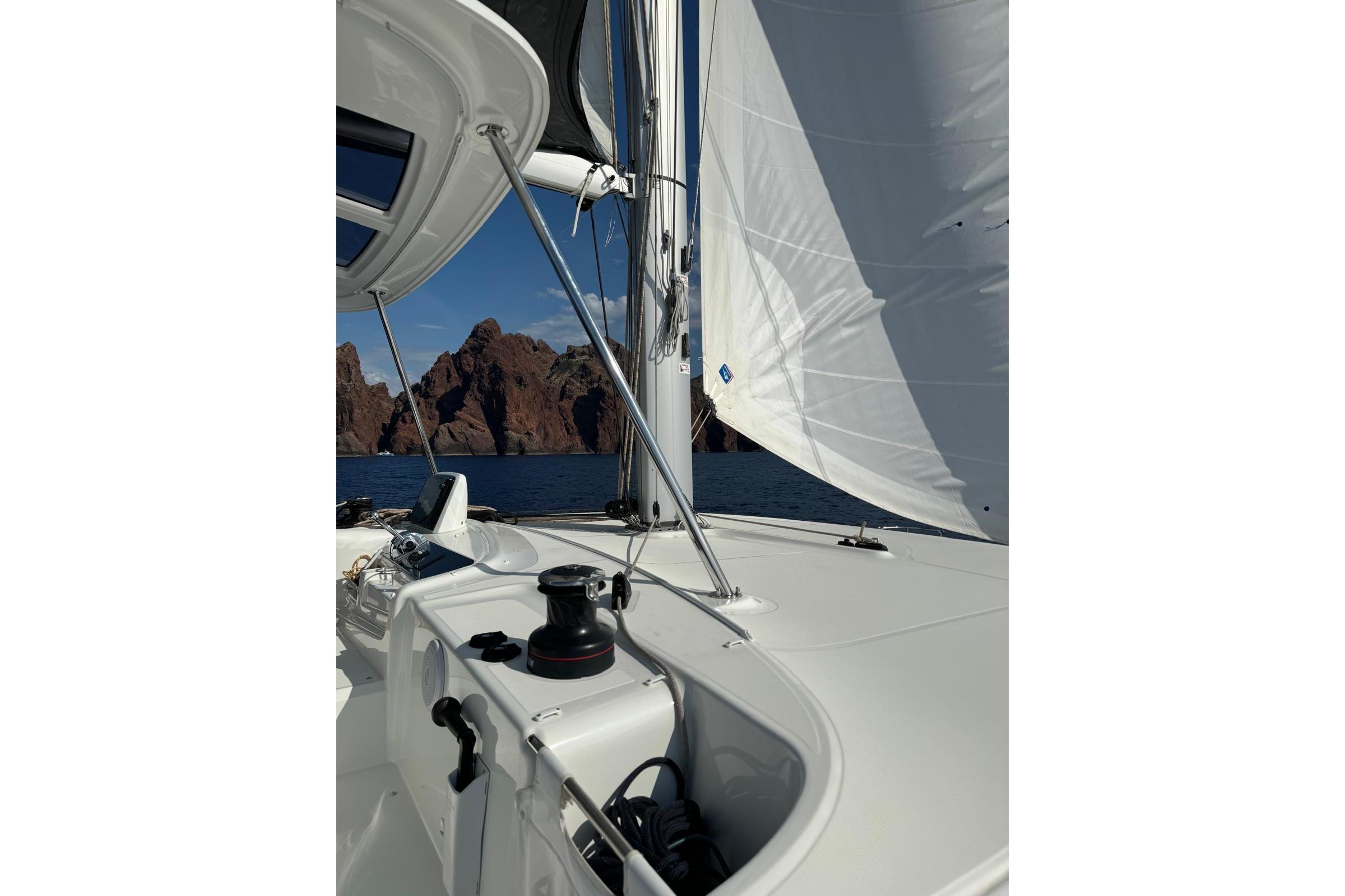 Le Lagoon 46 est équipé d’un grand-voile à corne en Dacron, d’un Code 0 en Mylar avec emmagasineur et tangon, ainsi que de winchs électriques. L’électronique Raymarine comprend un afficheur i70s, un pilote automatique p70s, un écran Axiom Pro 16’’ avec cartographie, un radar Quantum 2 Doppler, une VHF RAY90 et un émetteur/récepteur AIS, offrant toutes les fonctionnalités nécessaires à une navigation sûre et confortable.