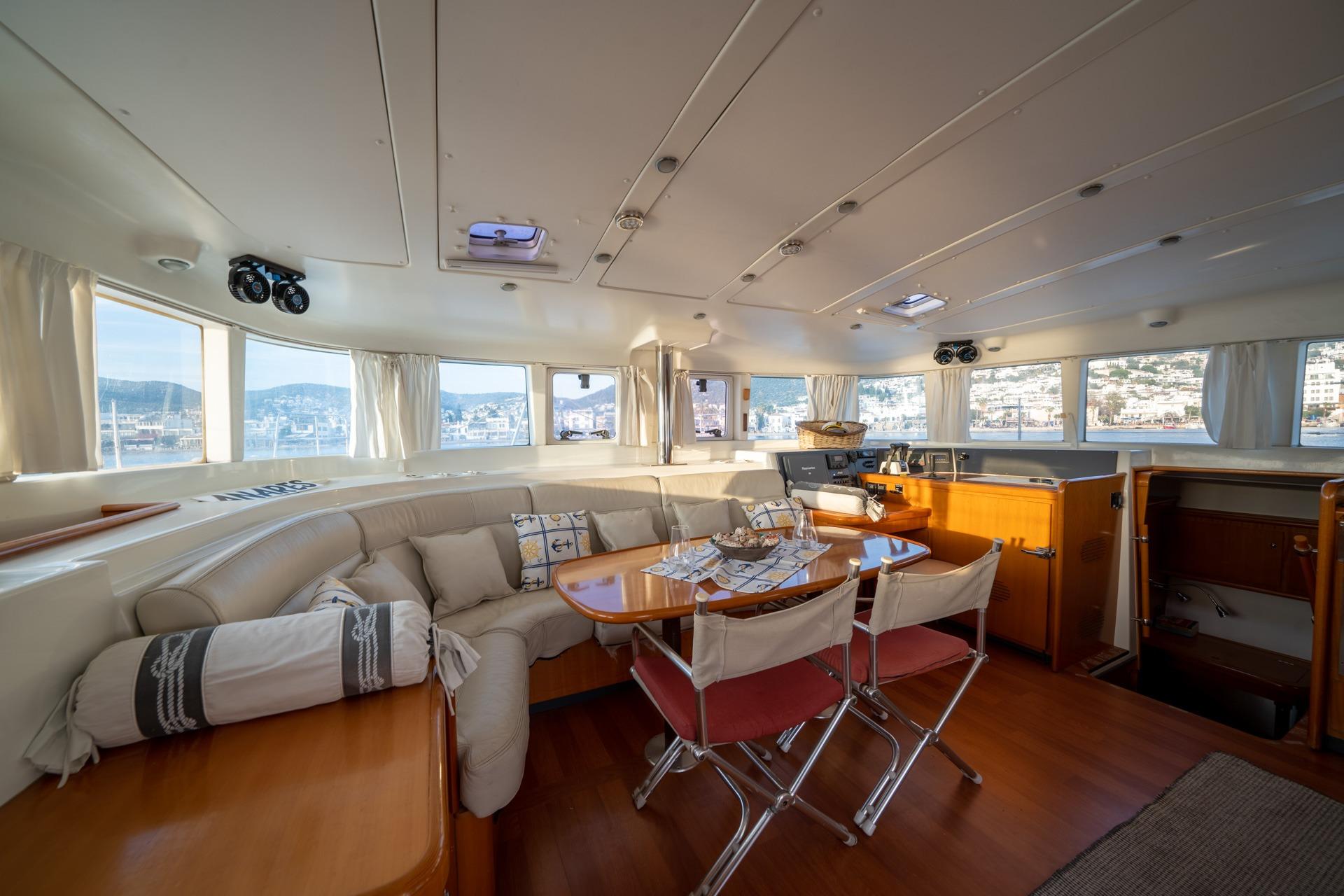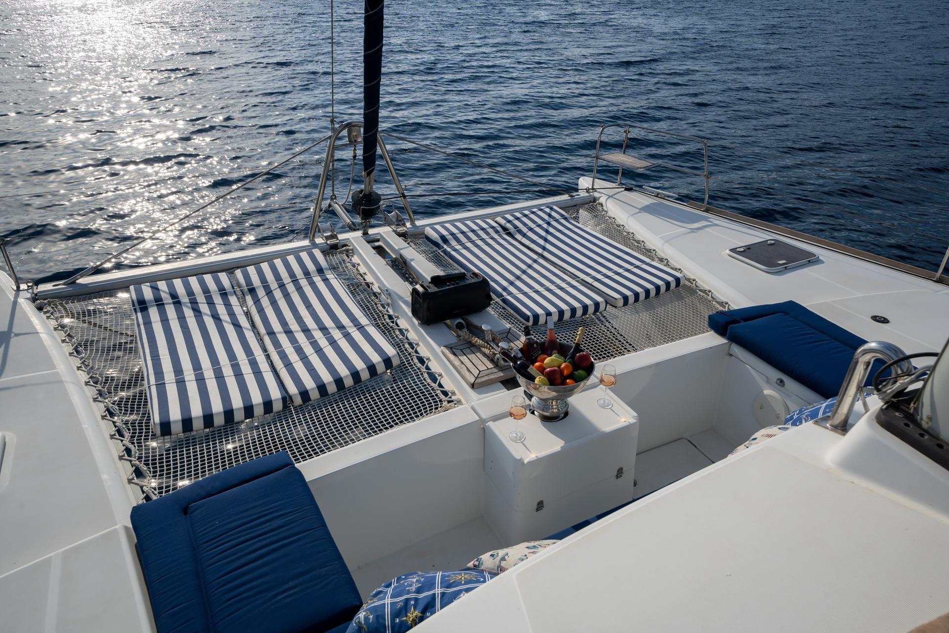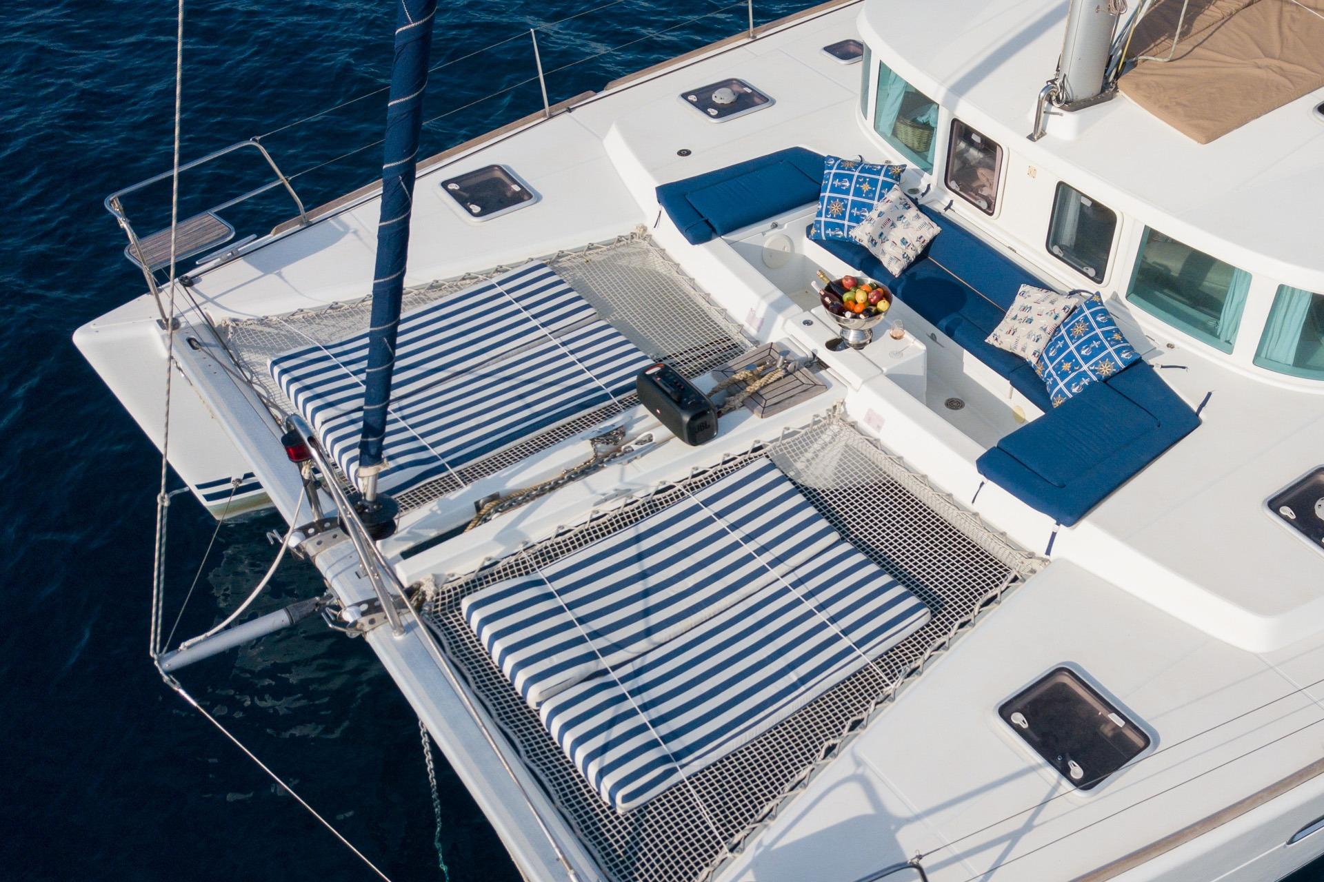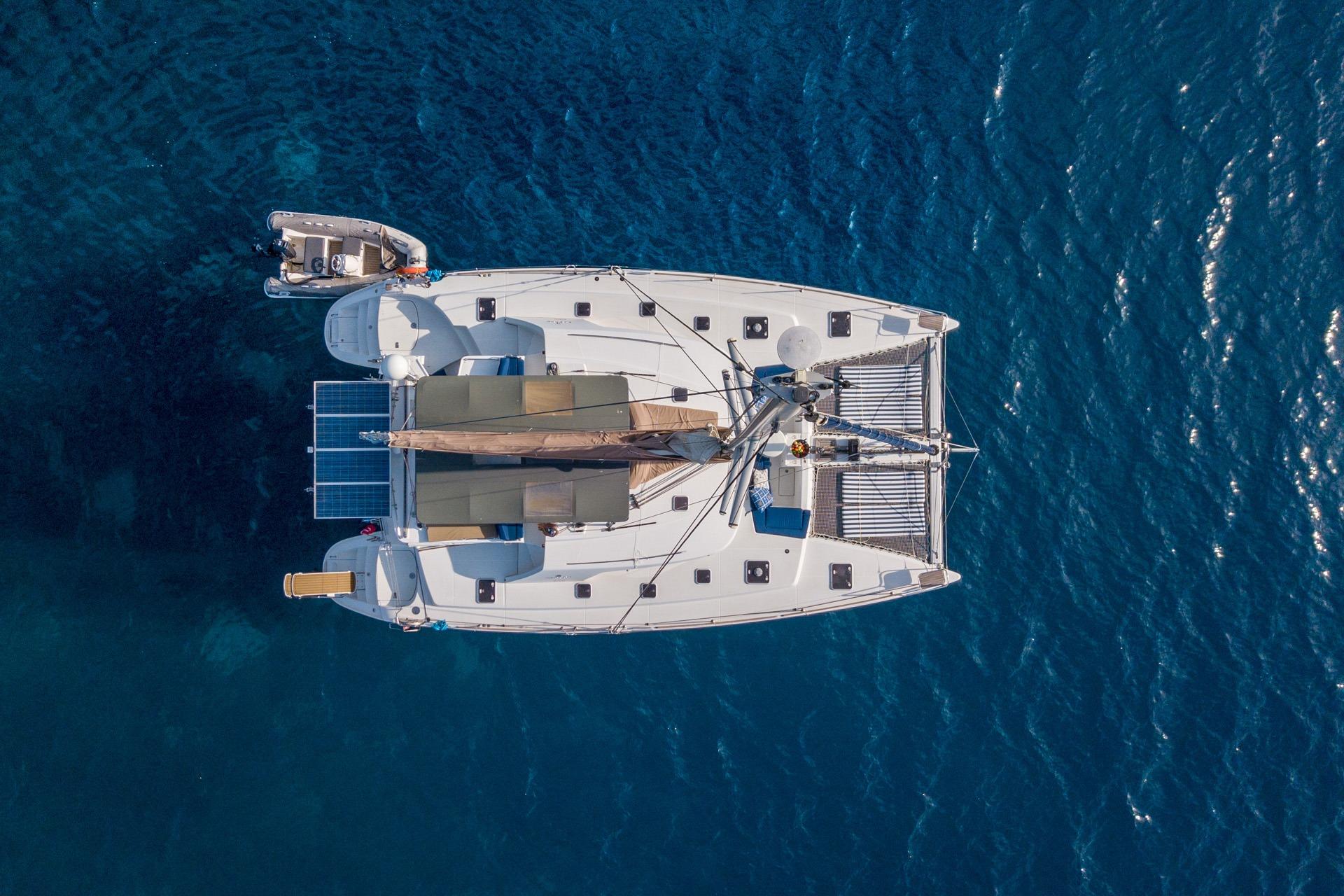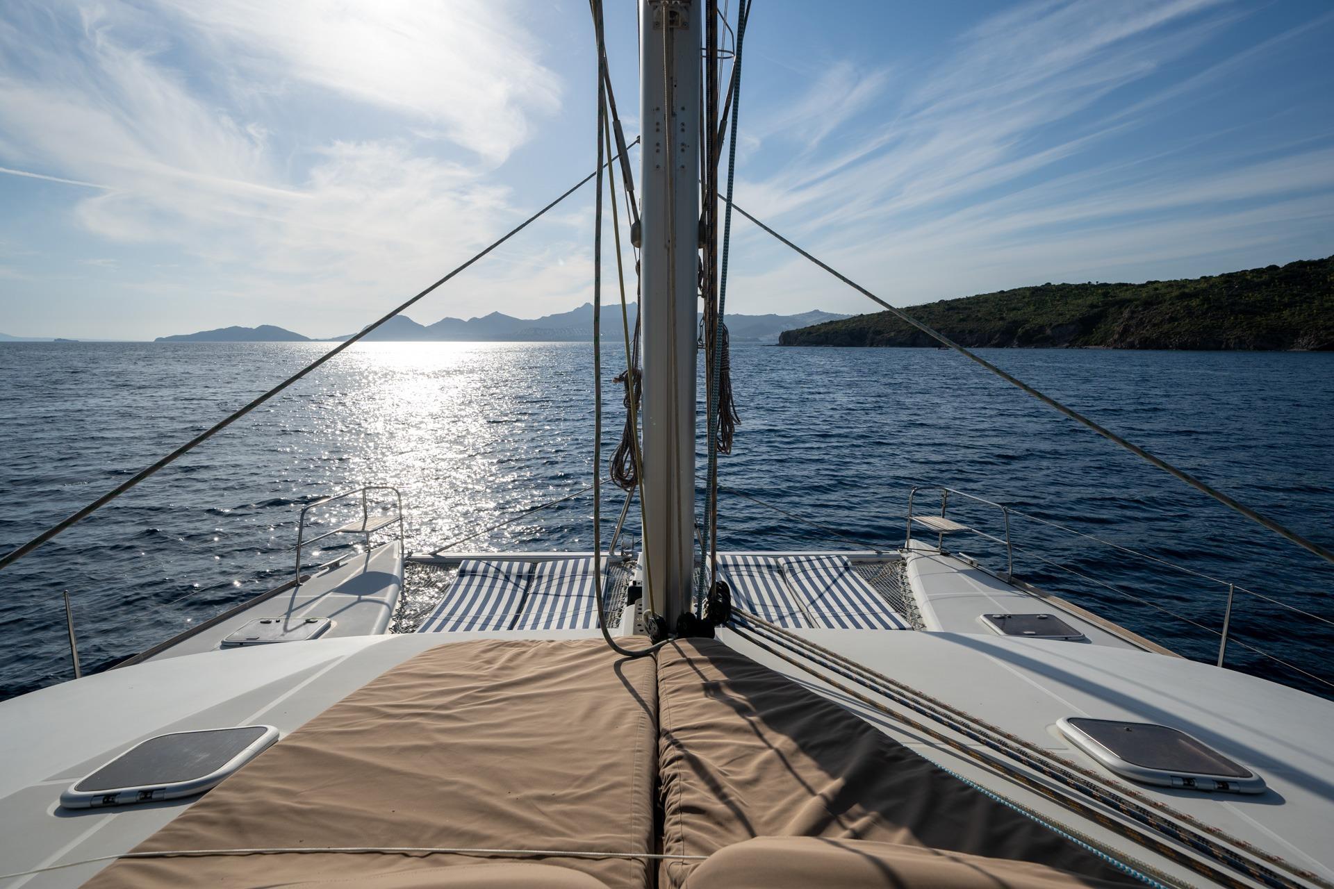 The Lagoon 440 offers exceptional value and impressive interior volume, making it highly attractive to sailors seeking long-range cruising capability and comfort without excessive operating costs. It was designed to satisfy both private owners focused on bluewater performance and spacious living, as well as the charter market. One of its signature design features is the integrated rigid bimini with centrally positioned helm station, providing optimal visibility, protection from the elements, and a social layout where guests can comfortably accompany the helmsman during navigation.