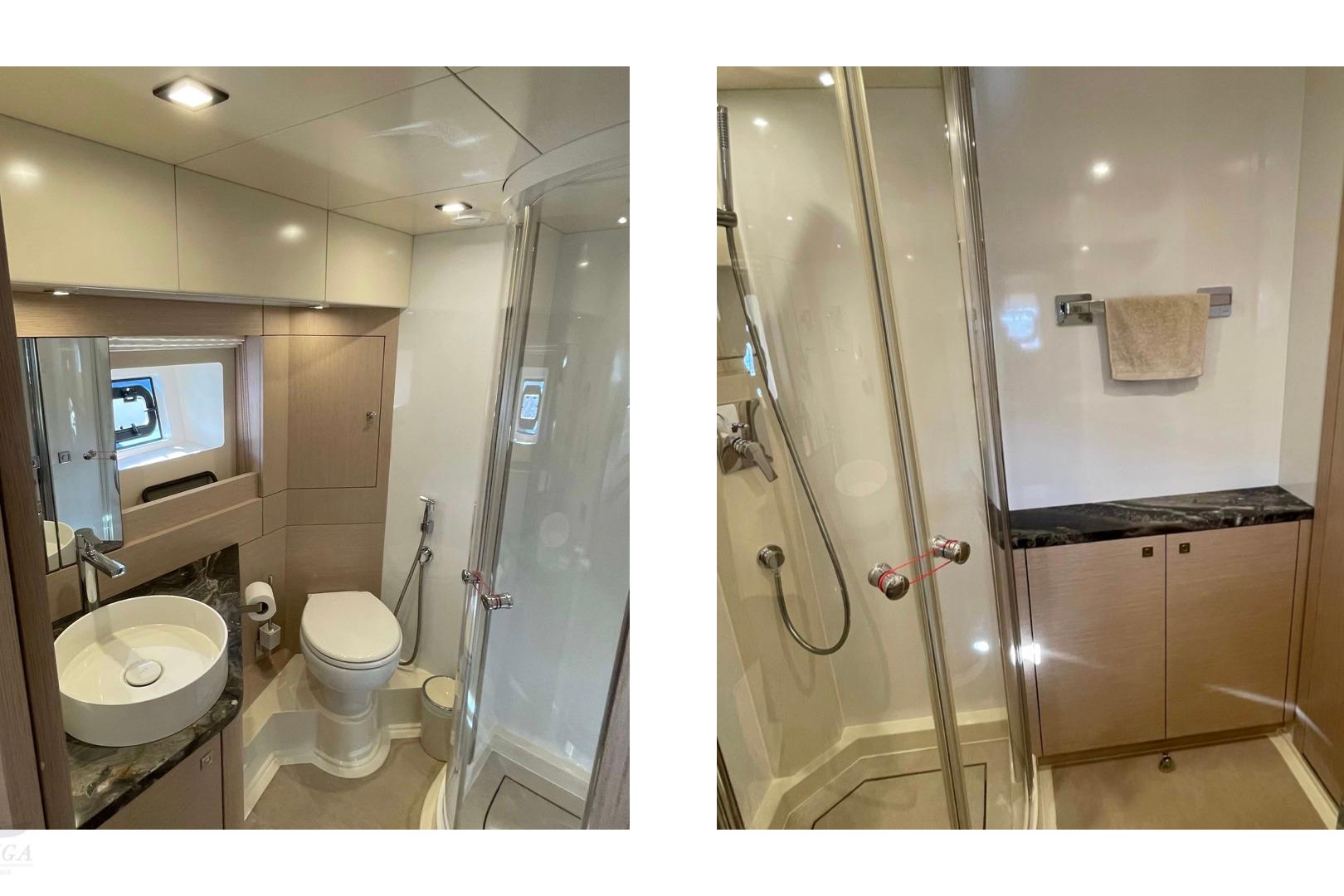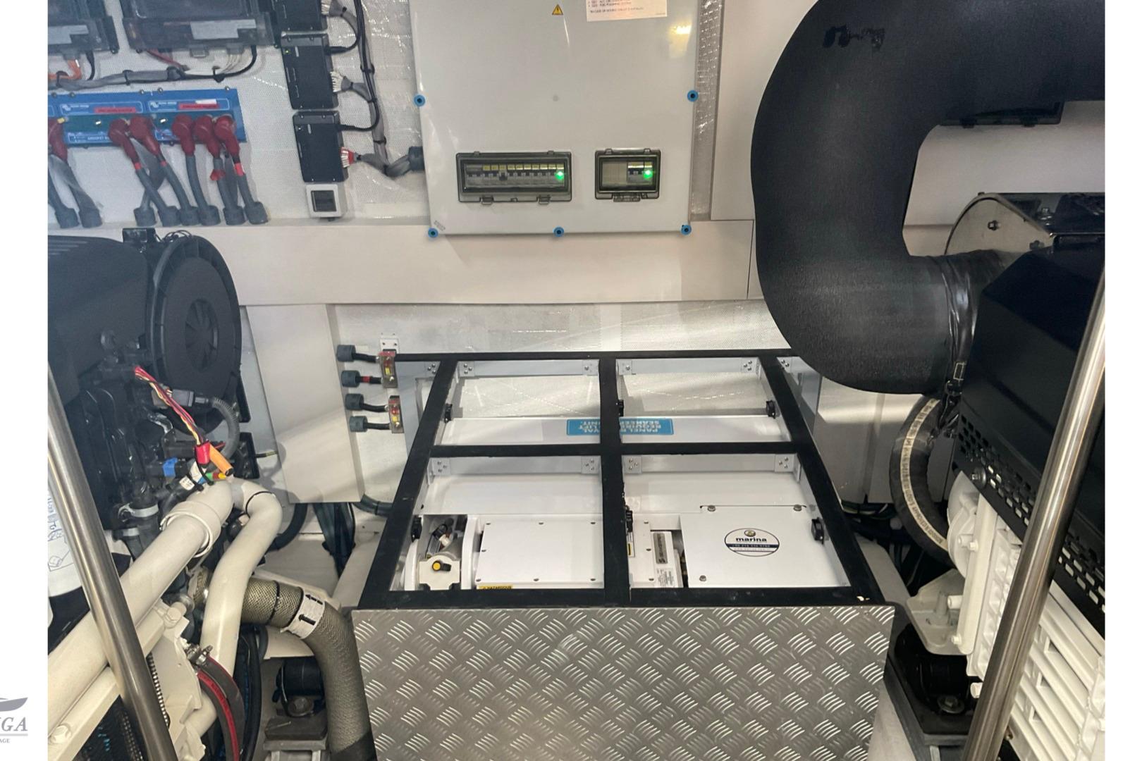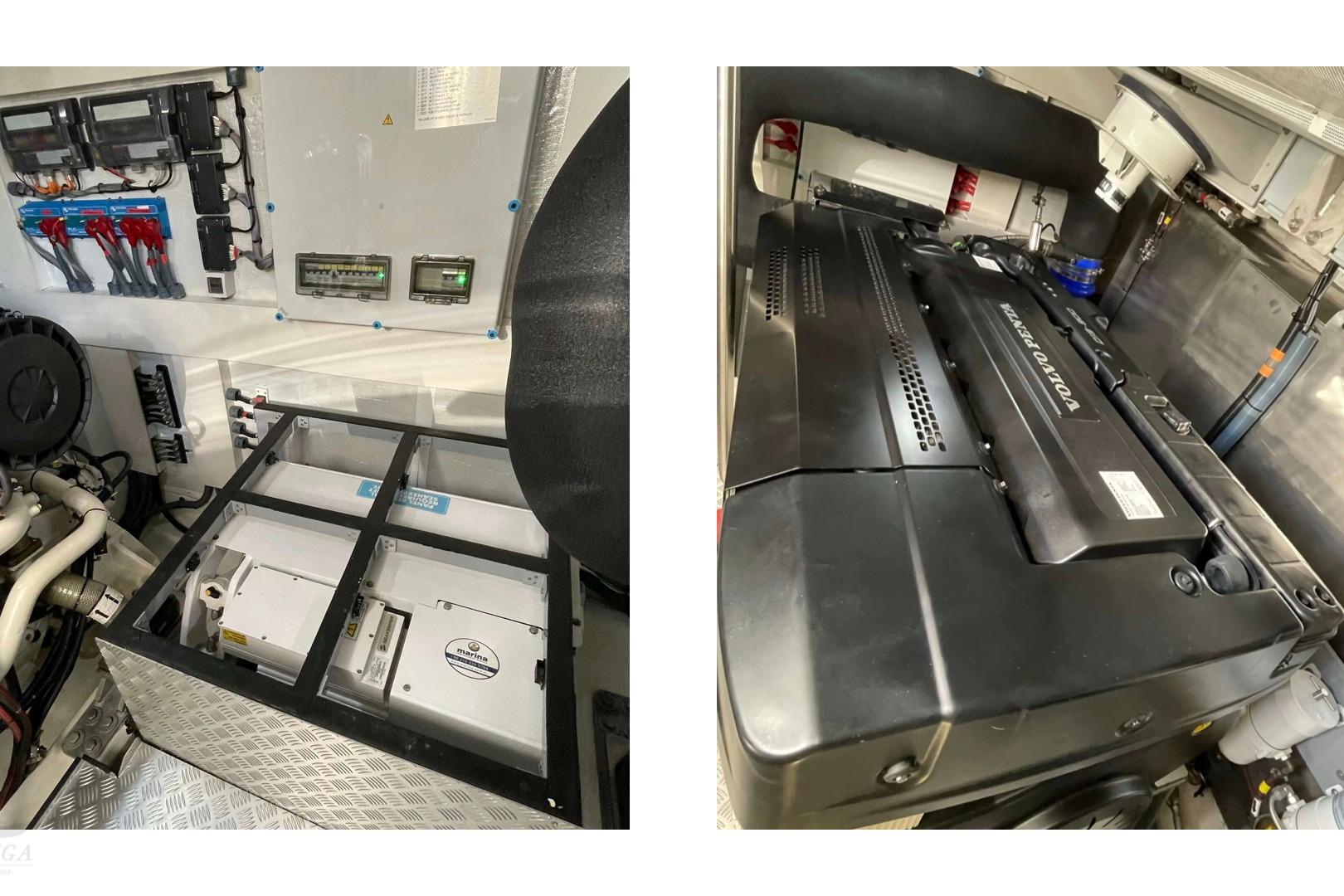 The Sirena 58’s semi-displacement hull delivers smooth and efficient performance. Twin Volvo D13-900 engines provide a top speed of 25 knots and comfortable cruising at 16 knots. The Seakeeper 9 Gyro Stabilizer ensures exceptional stability both underway and at anchor, while the Onan 17.5 kW generator, 5,000 W inverter, and 130 L/h watermaker allow for extended autonomy at sea.
