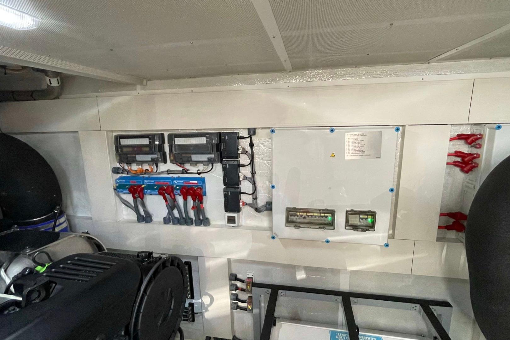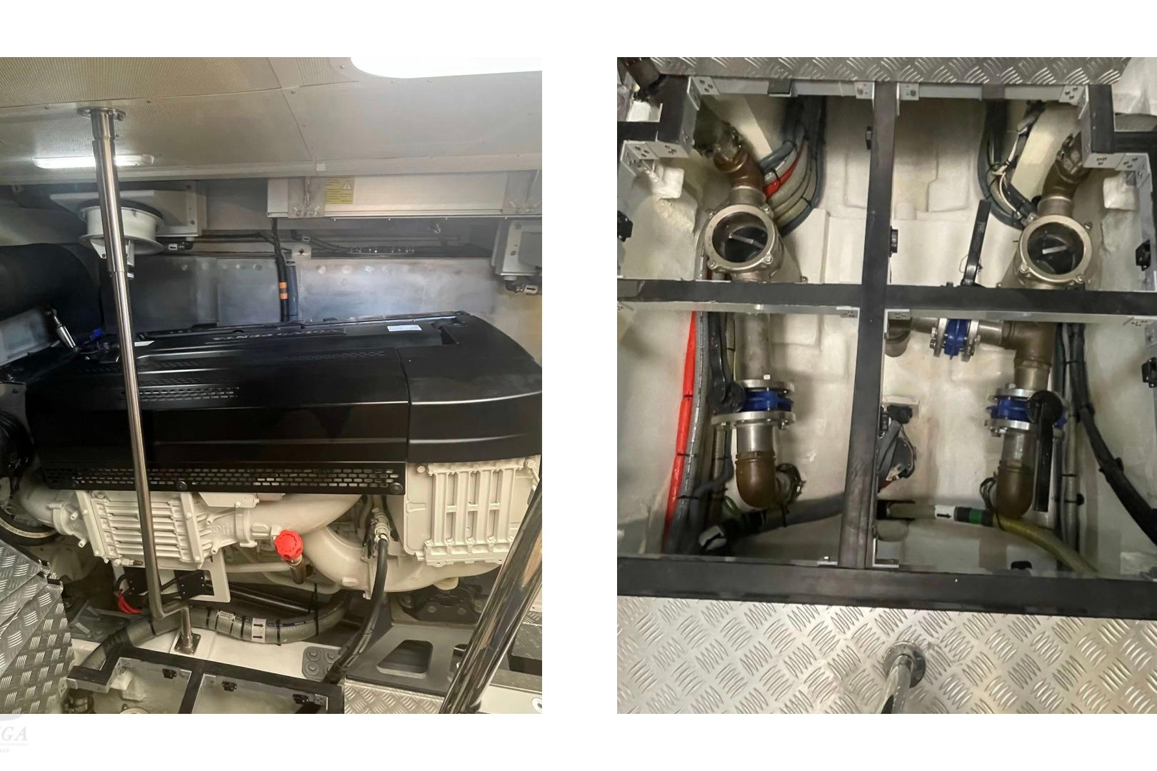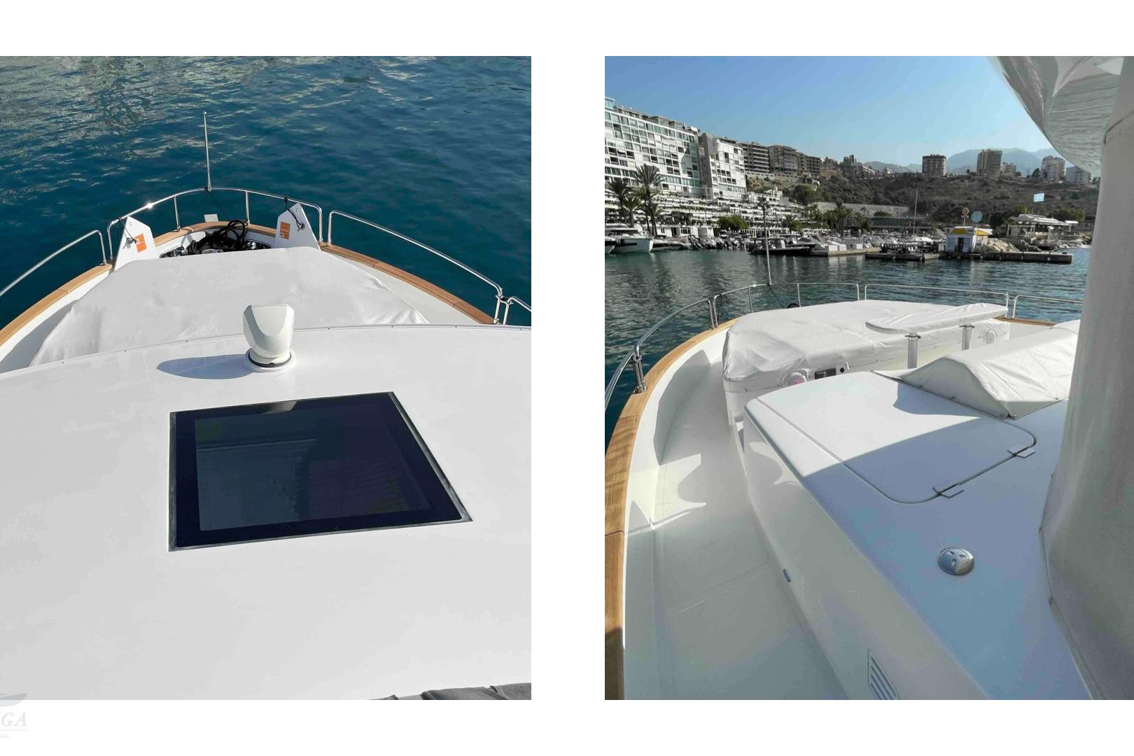 The Sirena 58’s semi-displacement hull delivers smooth and efficient performance. Twin Volvo D13-900 engines provide a top speed of 25 knots and comfortable cruising at 16 knots. The Seakeeper 9 Gyro Stabilizer ensures exceptional stability both underway and at anchor, while the Onan 17.5 kW generator, 5,000 W inverter, and 130 L/h watermaker allow for extended autonomy at sea.
