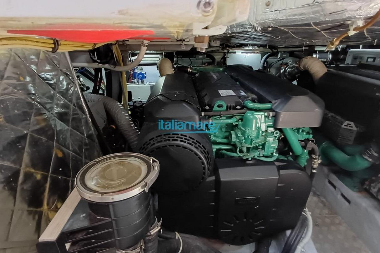 È dotato di due motori Volvo Penta IPS800 da 600 cavalli, capaci di spingerlo fino a 36 nodi di velocità massima, con una navigazione fluida e precisa anche in mare formato.