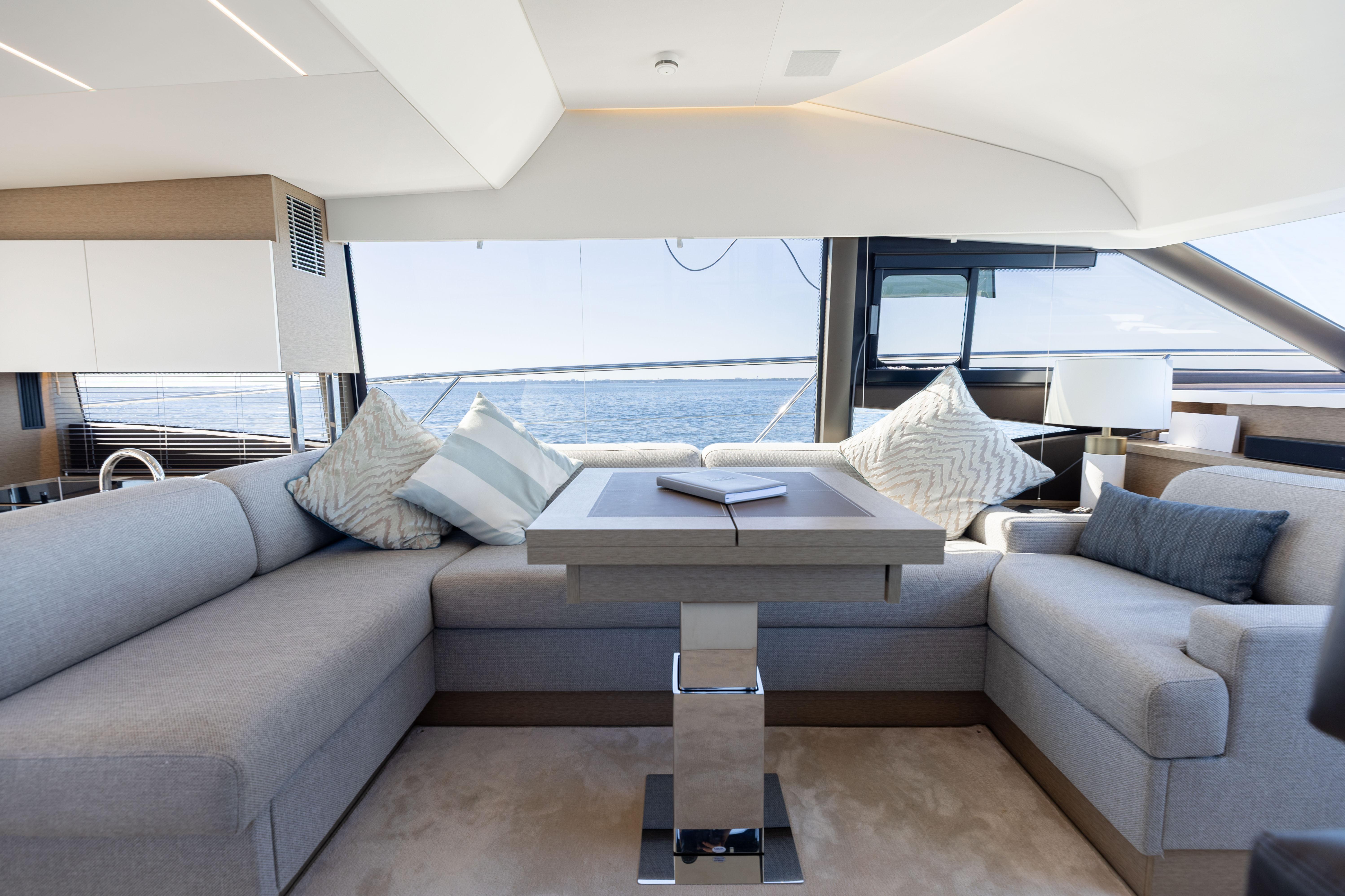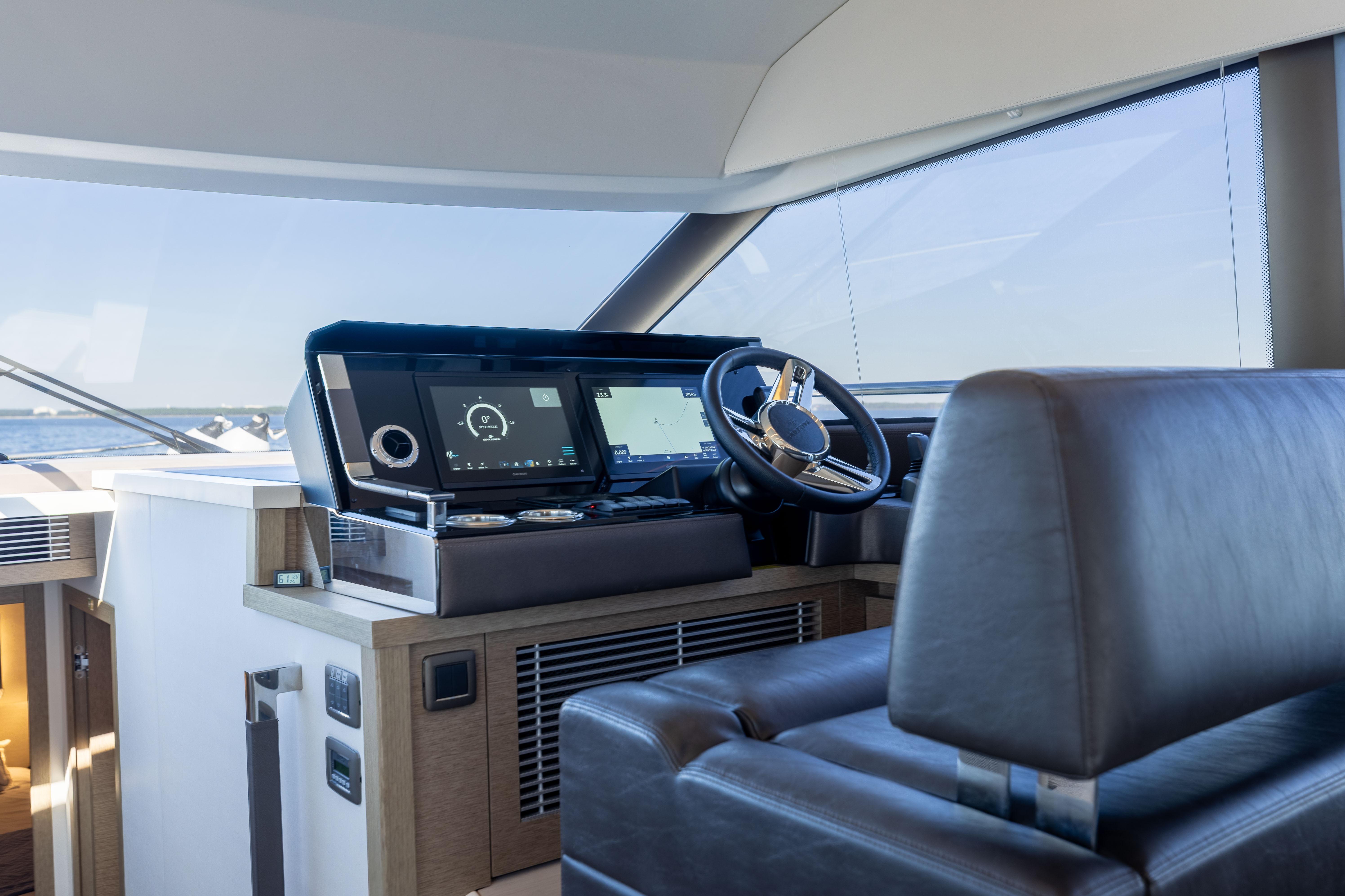 Underway, the Prestige 520 Fly is powered by twin Volvo IPS650s, delivering quiet, efficient performance with a comfortable cruise in the mid-20 knot range. A Seakeeper 6 gyro stabilizer enhances stability both offshore and at anchor, while the addition of a watermaker extends her independence for longer or more secluded trips. From the Gulf Coast to the Keys and across to the Bahamas, the 520 reflects Prestige’s reputation for ride quality, livability, and modern design — supported by Galati’s legacy of service and customer care.
