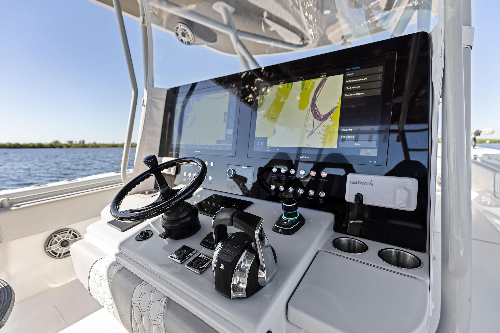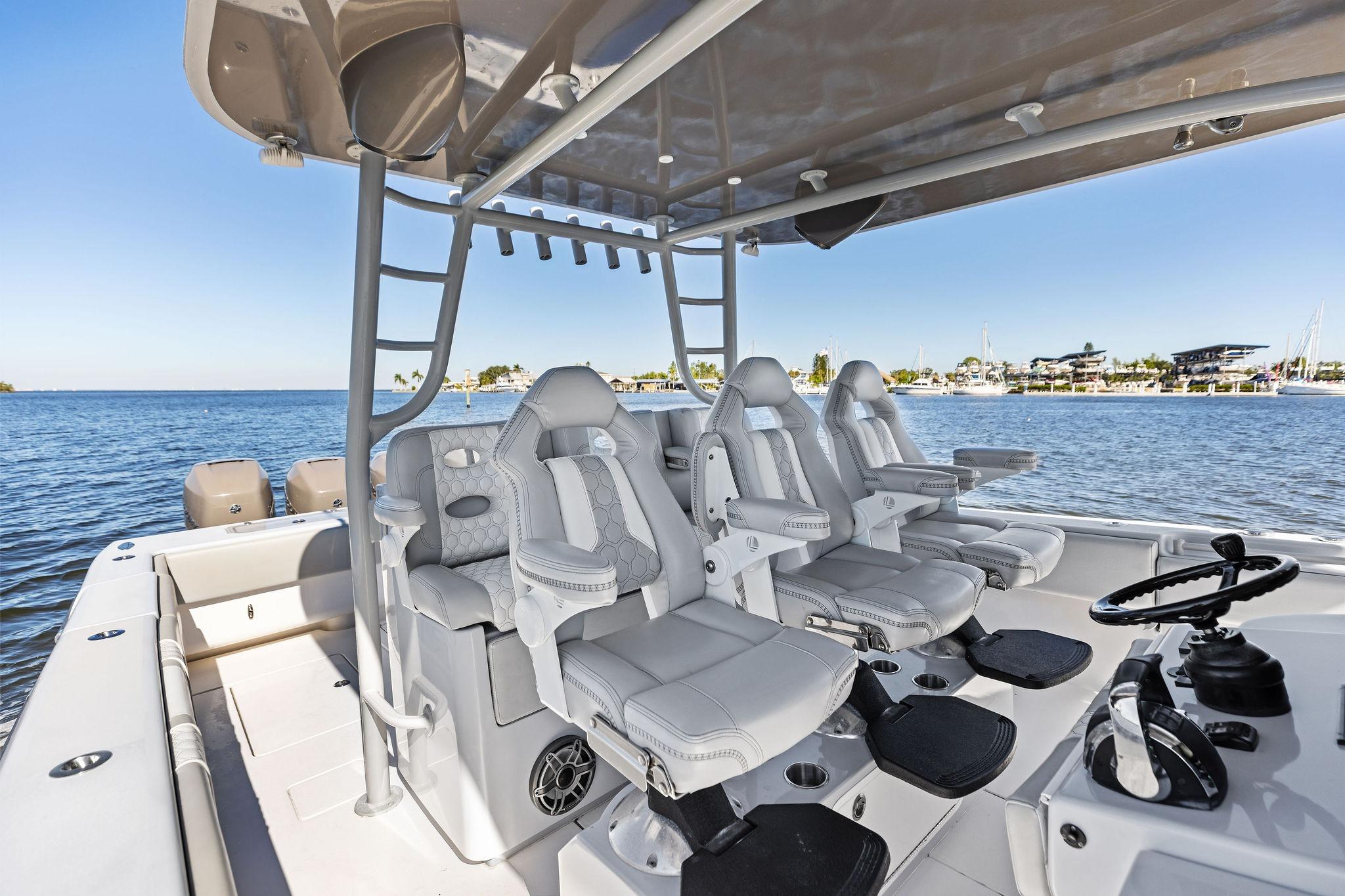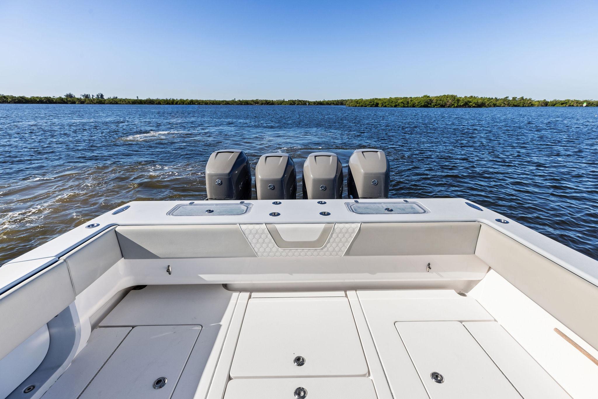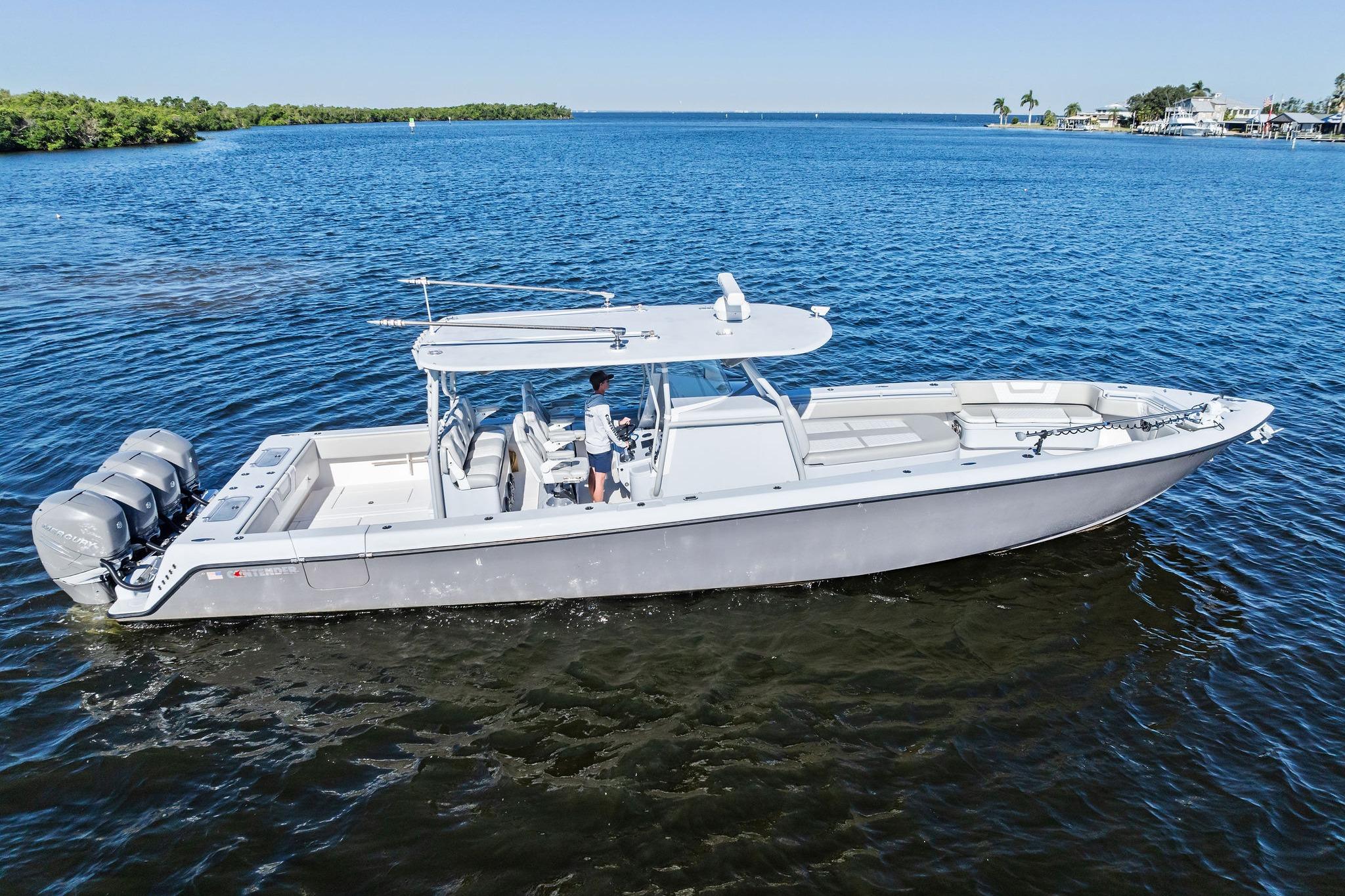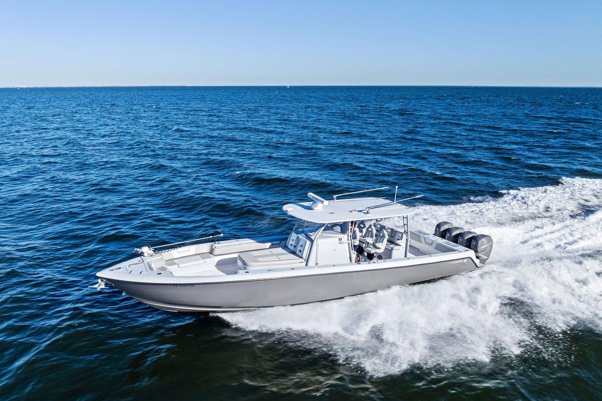 Introducing the stunning 2022 Contender 44 CB, a remarkable sports fishing boat that combines performance and style. With an impressive overall length of 43.83 feet, this vessel is designed for serious anglers and adventure seekers alike. The deep Vee hull, crafted from durable fiberglass, ensures a smooth and stable ride, even in challenging waters. Powered by four robust Mercury Verado outboard engines, each delivering 400 horsepower, this boat promises exhilarating speed and agility, making it perfect for reaching your favorite fishing spots quickly. With 540 hours of use, it has been well-maintained and is ready for new adventures. This Contender is equipped with essential features that enhance your boating experience, including joystick control for effortless maneuvering. Whether you're cruising or fishing, the 2022 Contender 44 CB is the ultimate choice for those who appreciate quality and performance on the water.