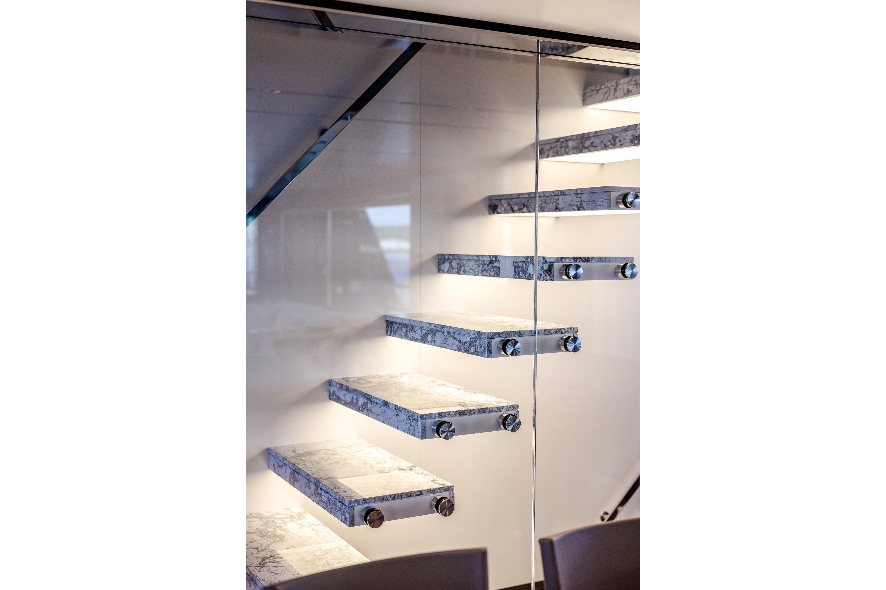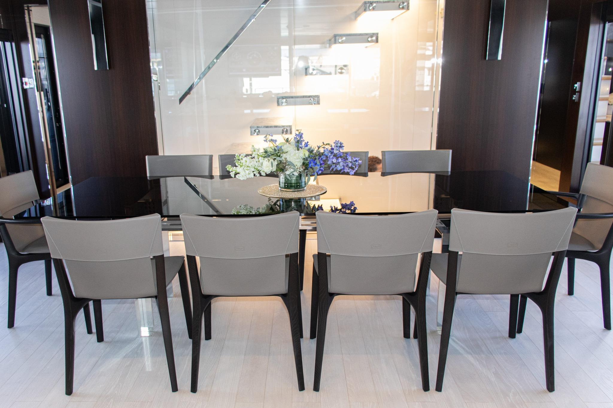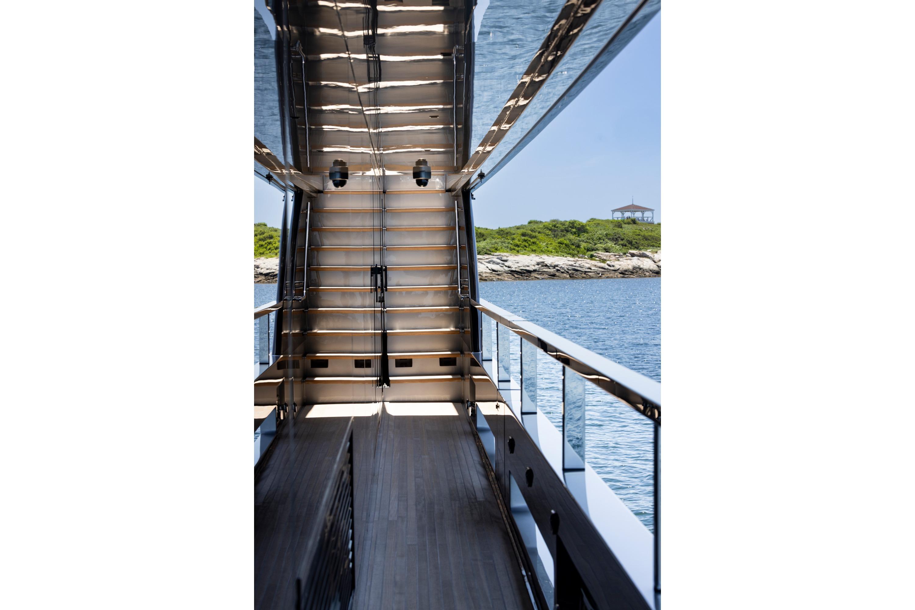 - Main deck dining area (portside): openable panoramic glazing door with polished stainless steel frame.