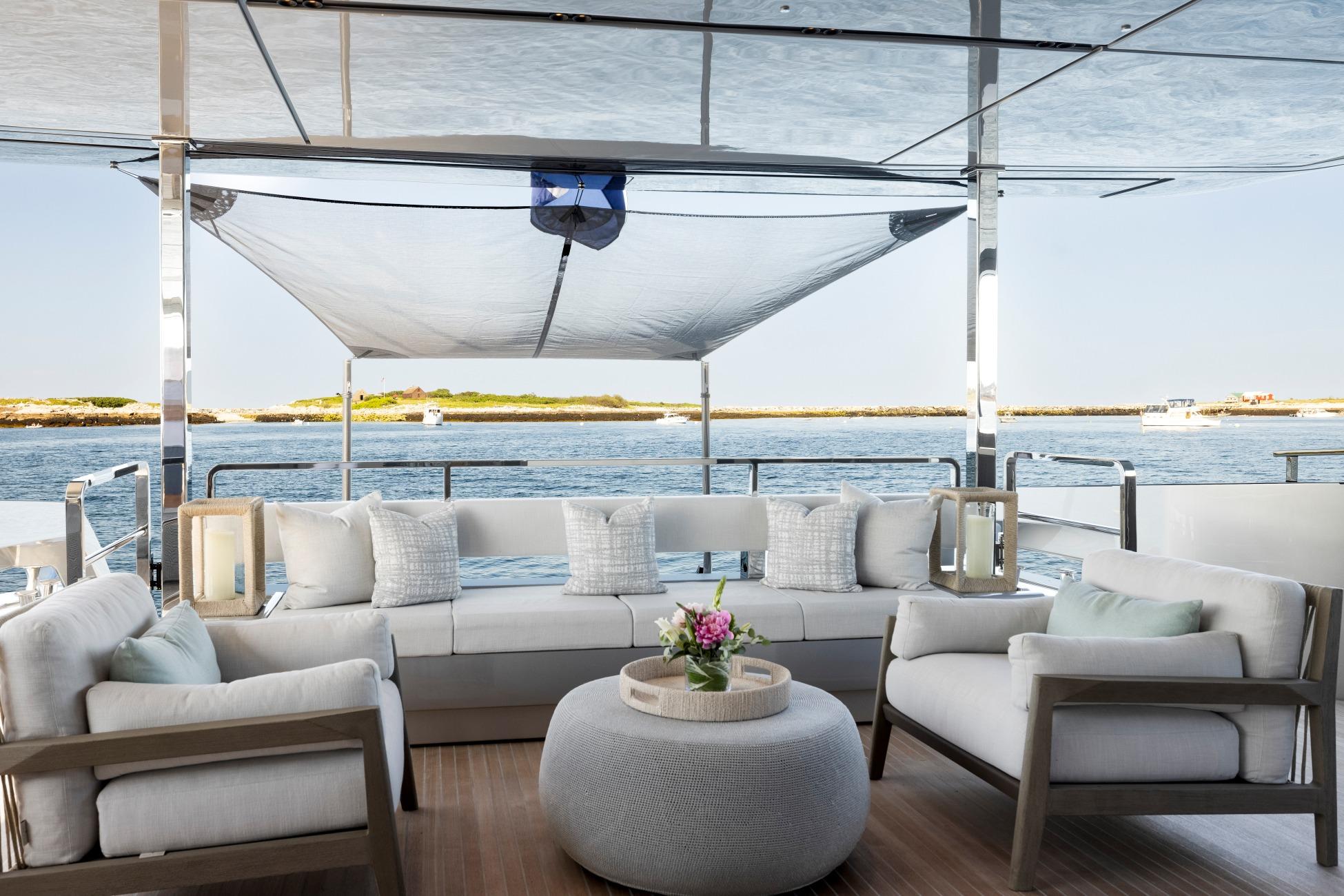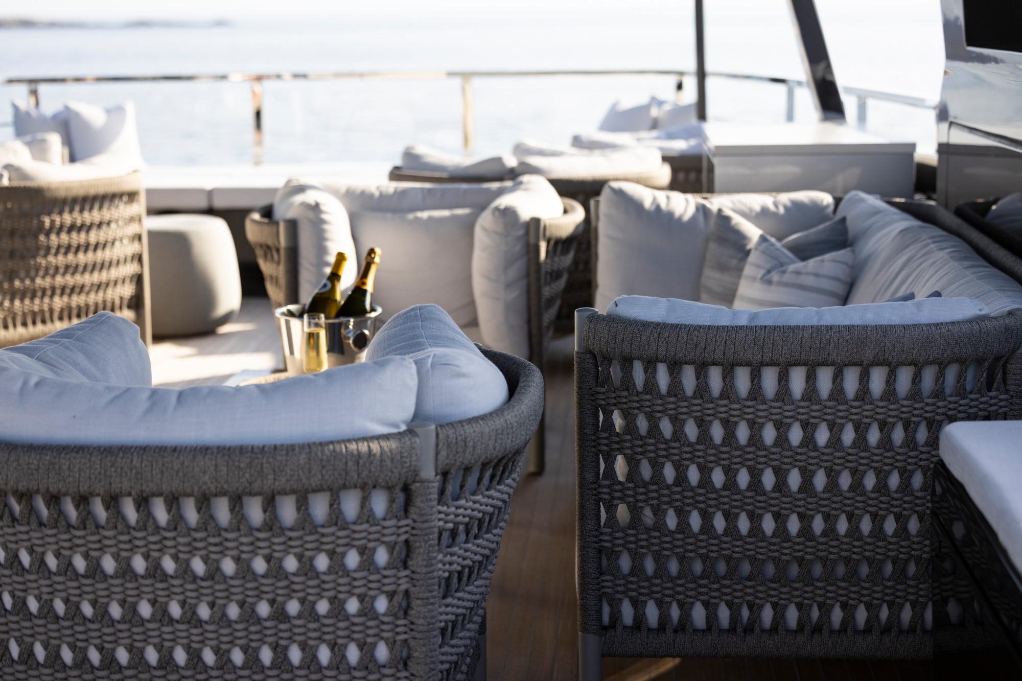 UPPER DECK AFT: The upper deck aft area is set up as al fresco dining.
