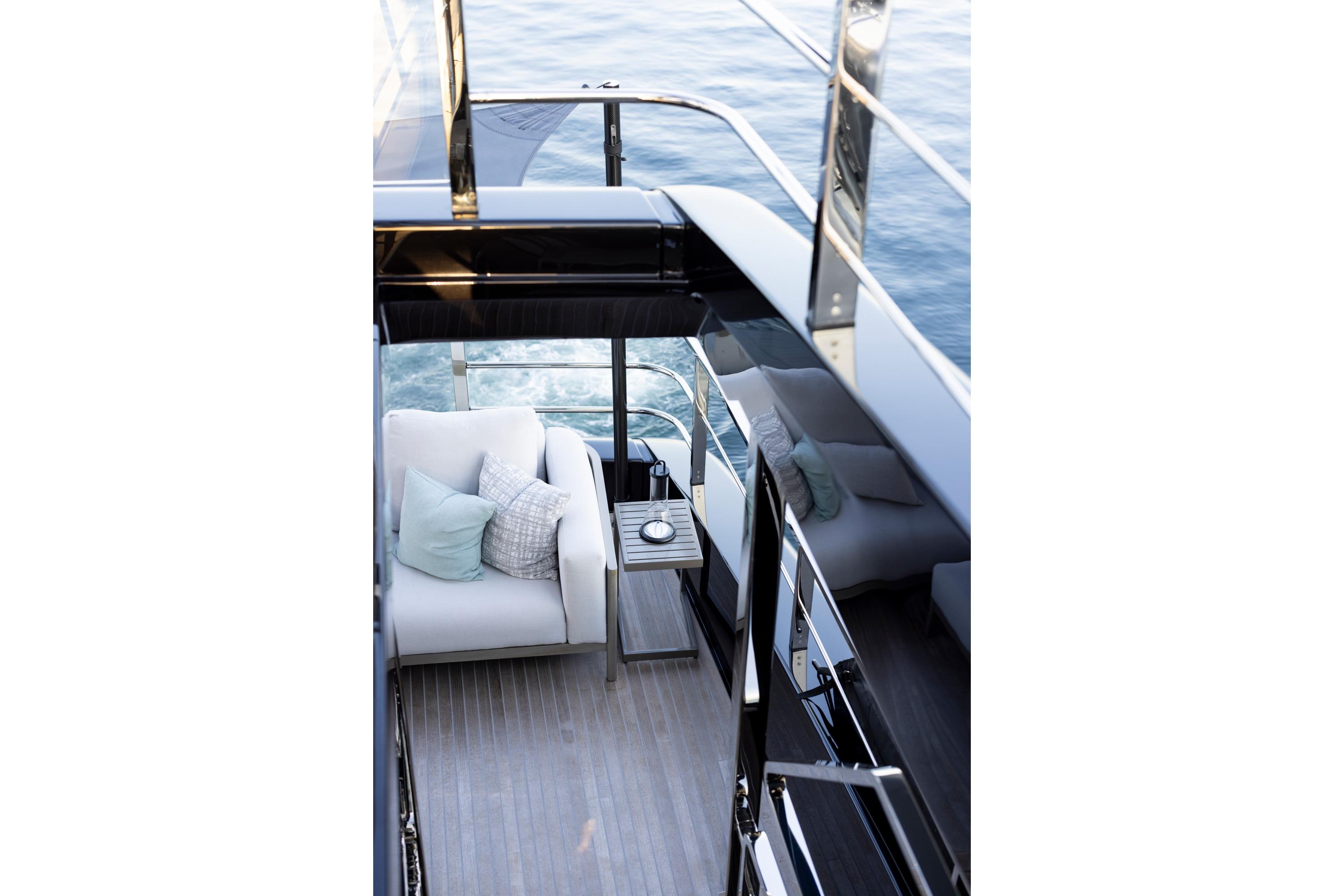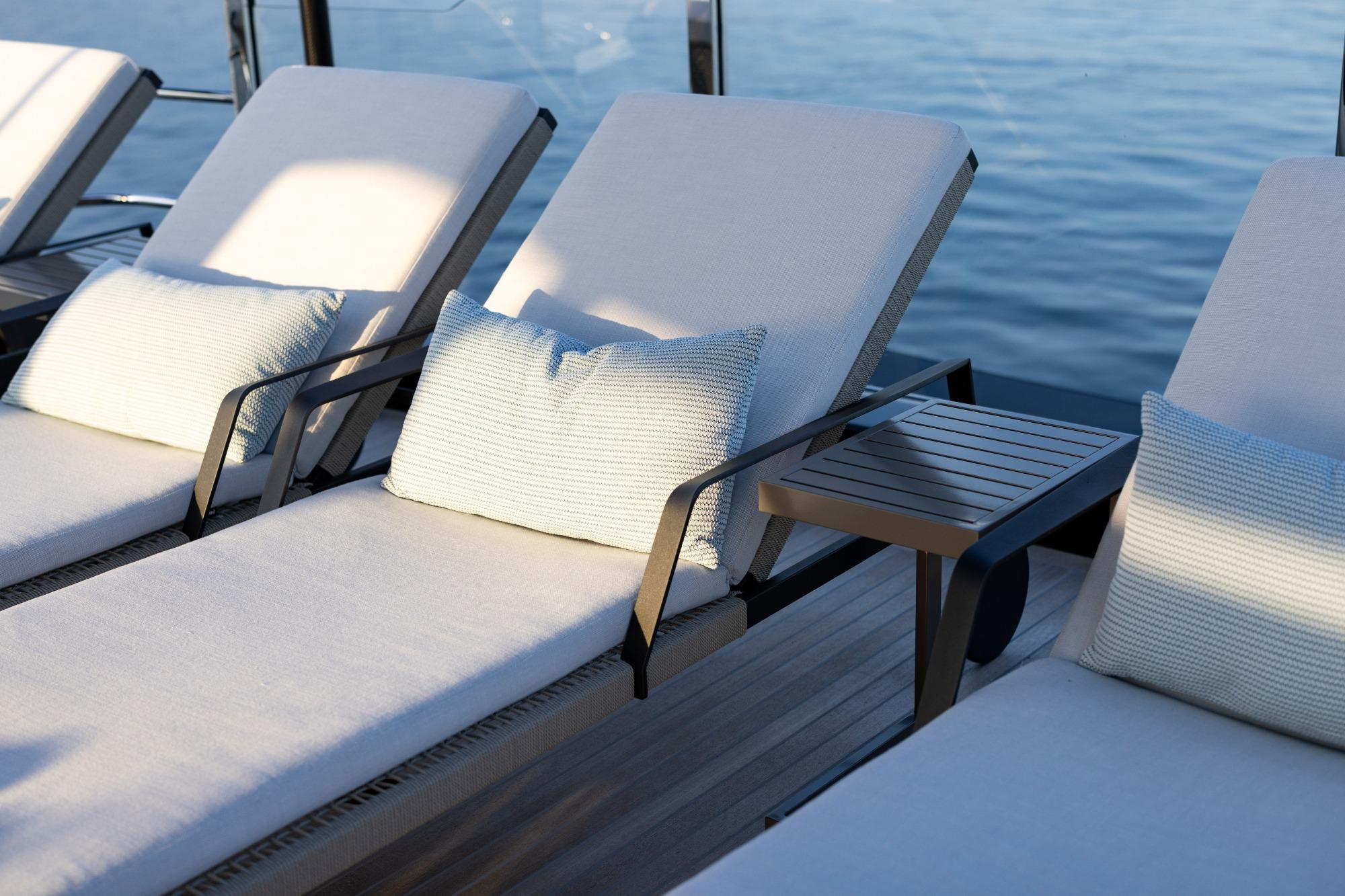 SKY LOUNGE: The bow area is connected with the sky lounge thanks to the side walk. Natural light illuminates the sky lounge with stunning views, while the side walkways create two private balconies, the port side can be reached the bow living area.