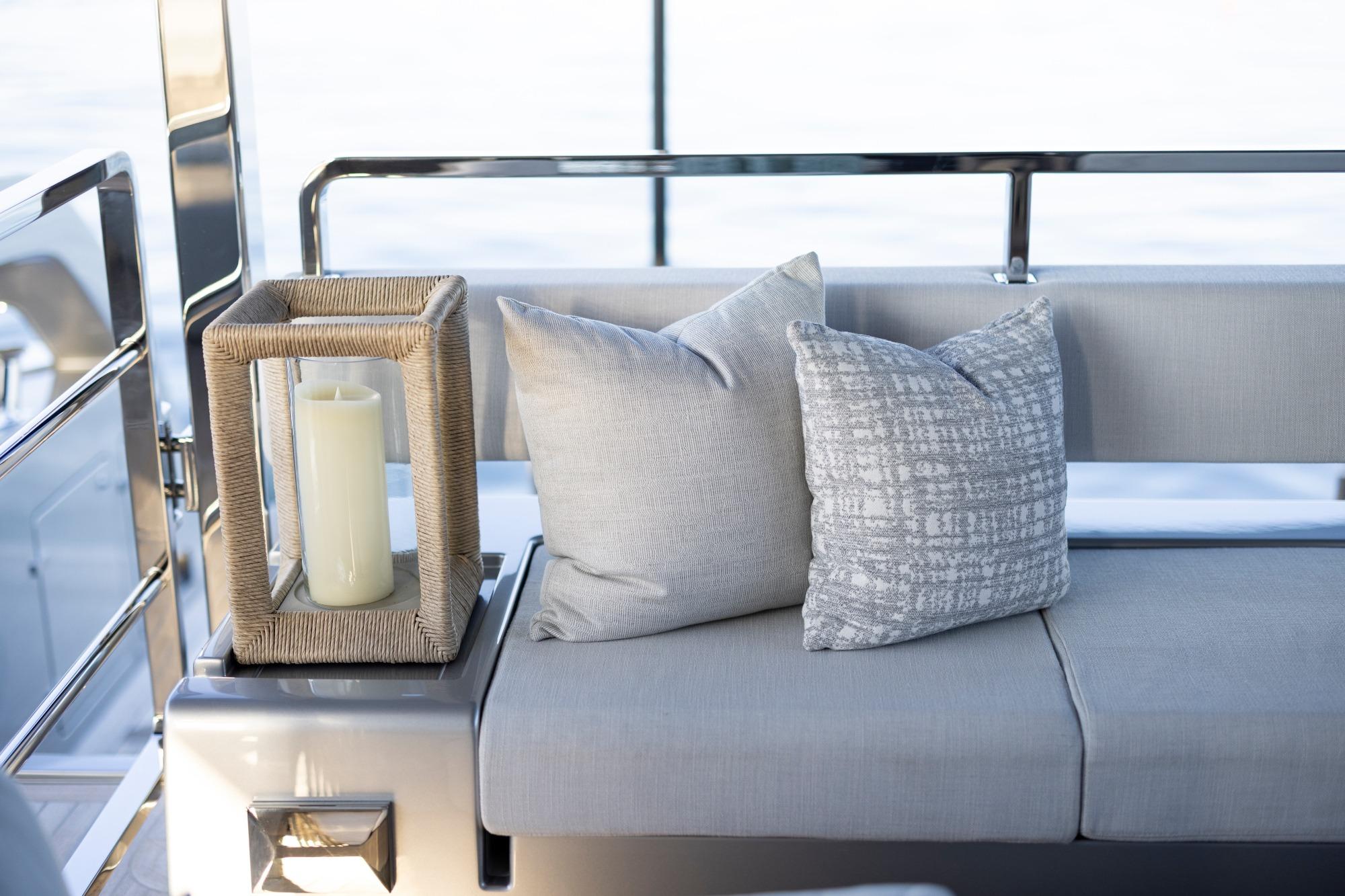 - 4. aft main deck cockpit: removable seat & back cushions for the sofa. Perennials - Rough n Rowdy 955-396 Vapor (this is the aft built in seating on the Main deck aft of the bar).