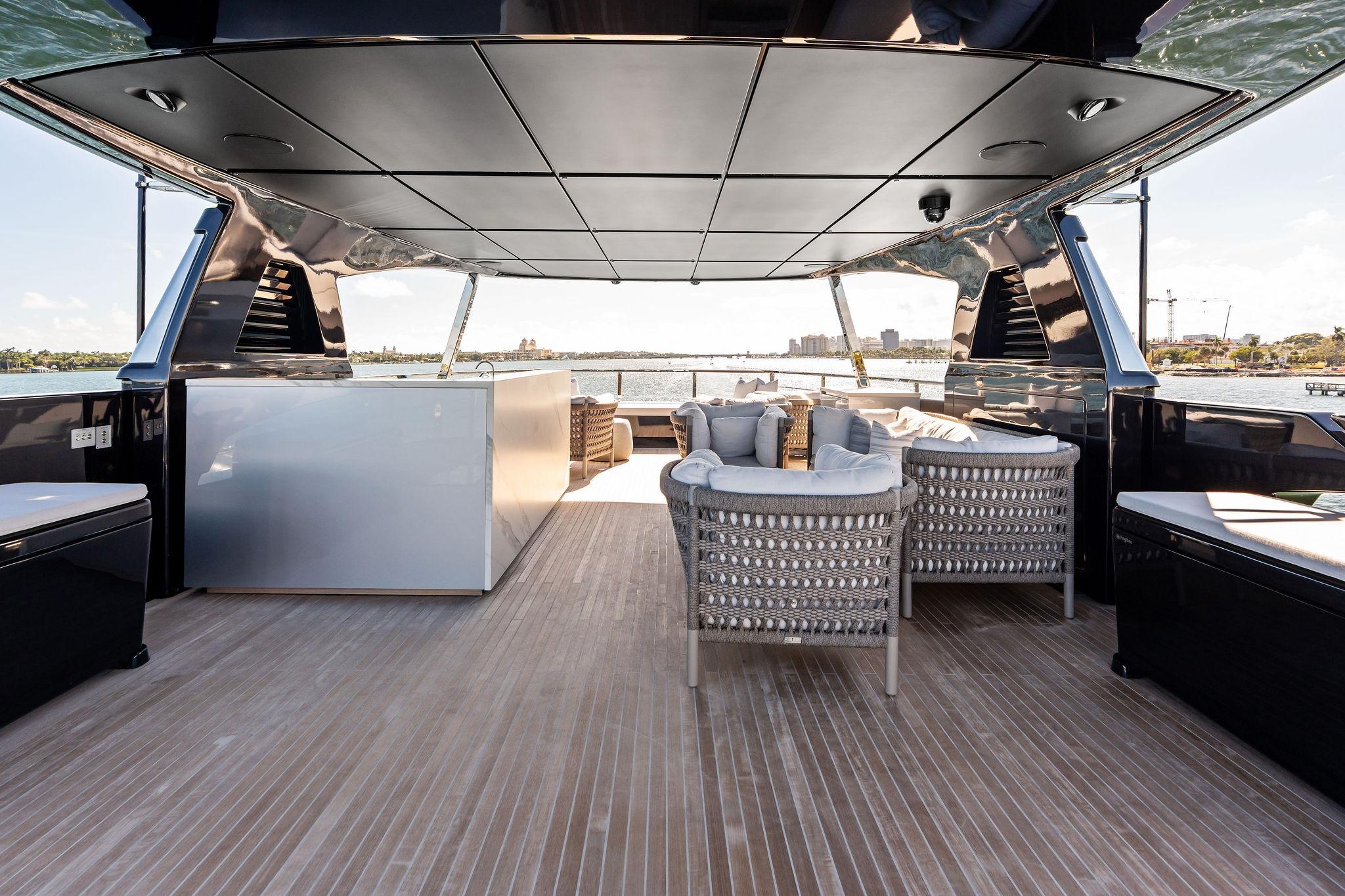 TENACIOUS was built with nearly $5,500,000 in extra shipyard options, plus $350,000 in custom bars, cabinets and tables, plus roughly $500,000 spent with the owner's personal designer on custom furniture and décor for a total of $6,350,000 in extras. Each of the three decks have custom-made bars, manufactured in Italy, by G.I.A.D.A. based in La Spezia.