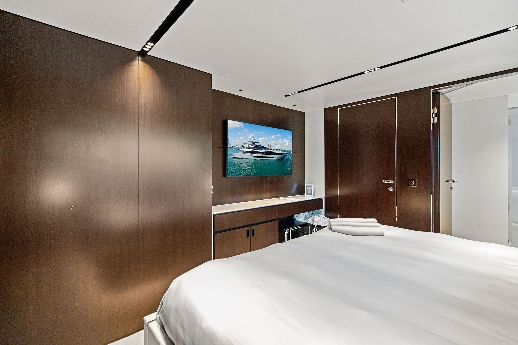 GUEST CABINS: 130’ Bellissima accommodates up to 10 guests across five staterooms. The master cabin is on the main deck, and the remaining four en-suite cabins are located on the lower deck.