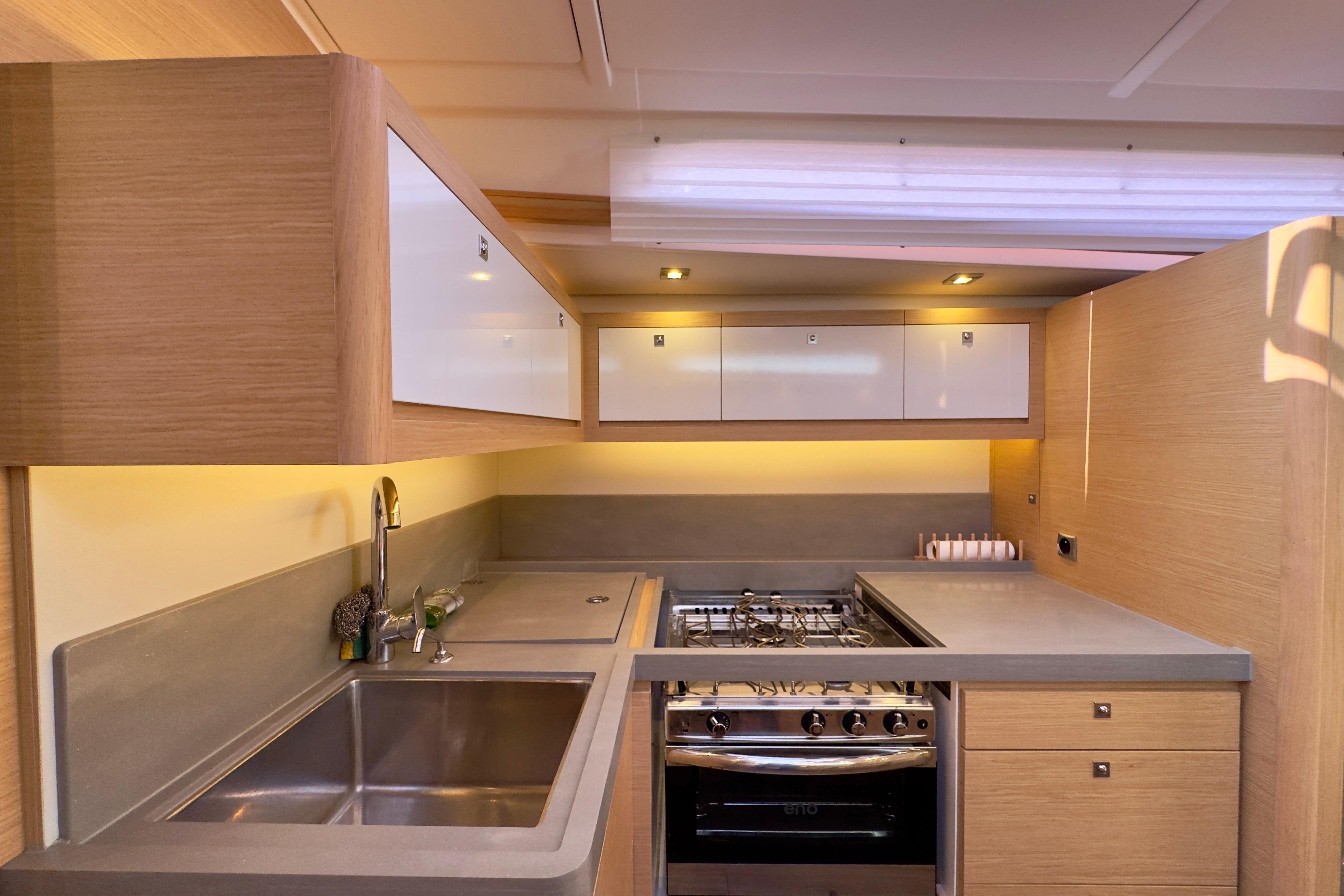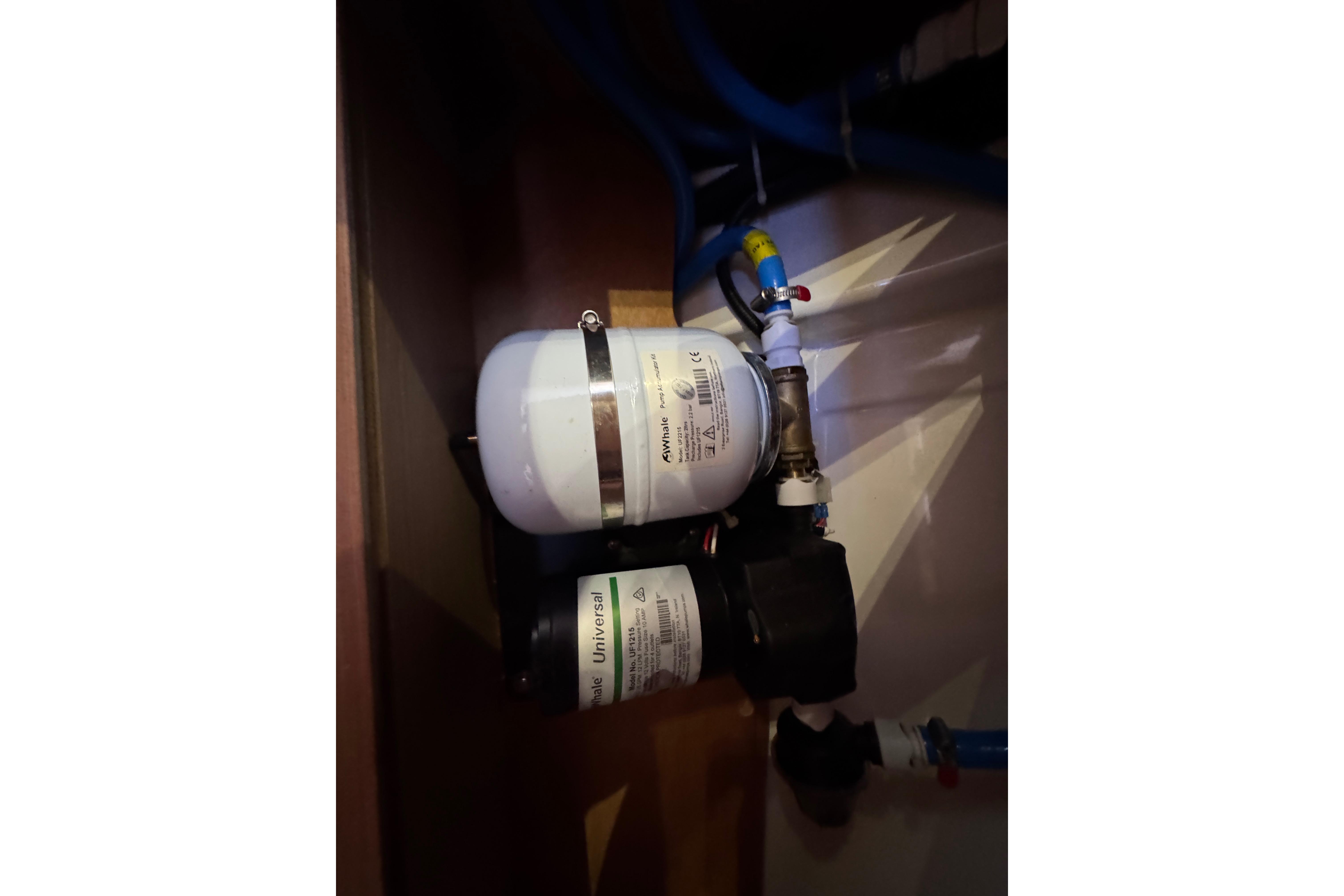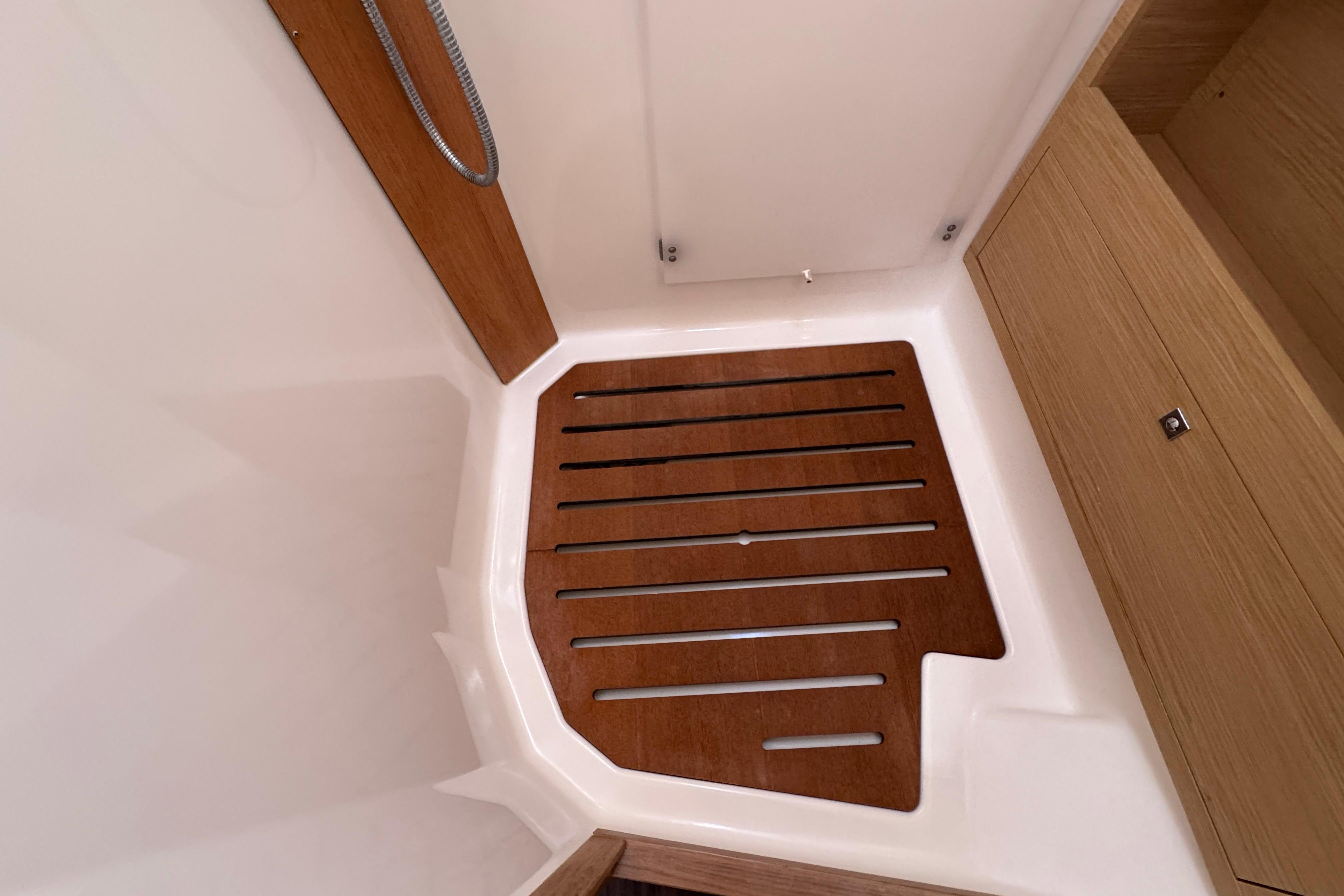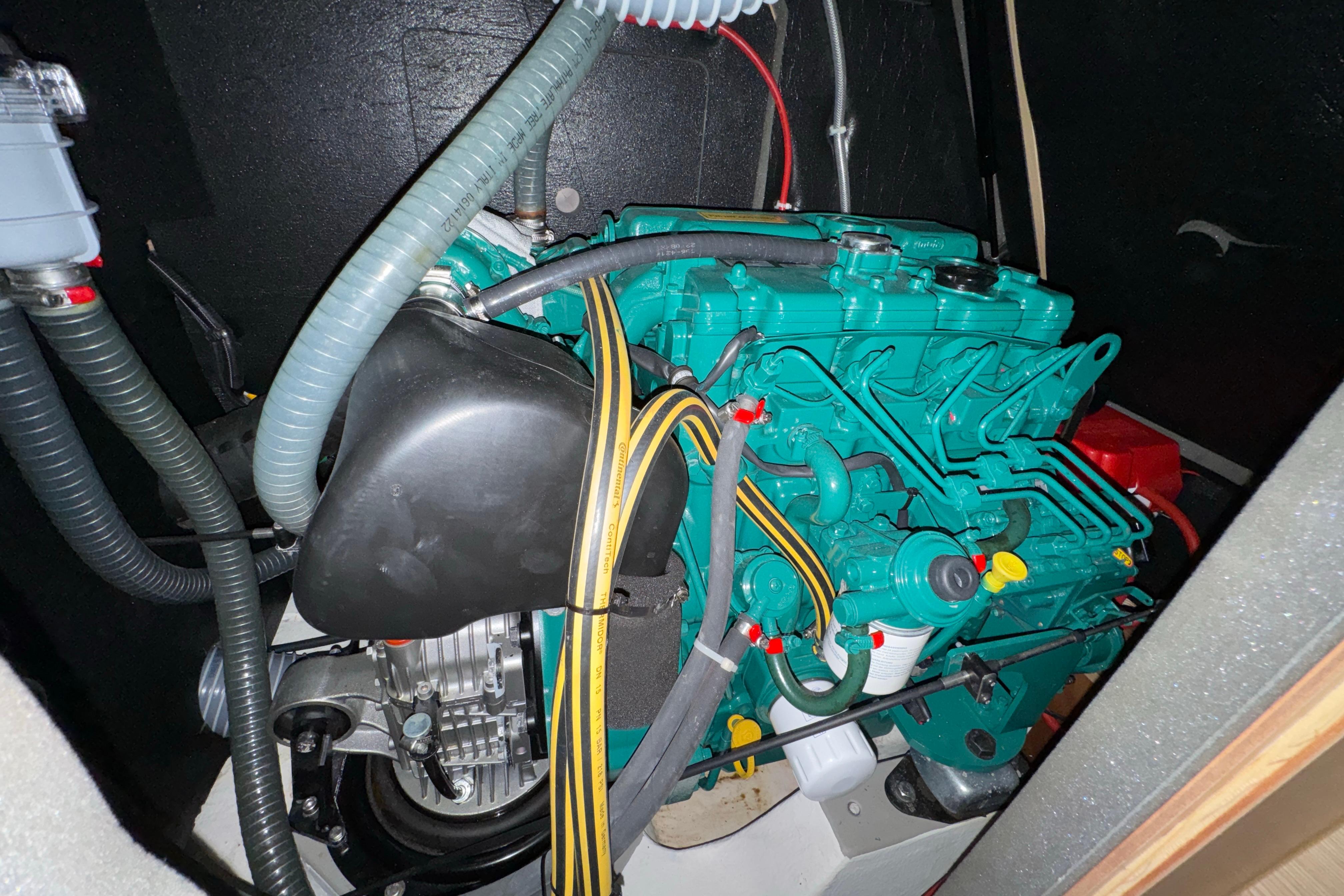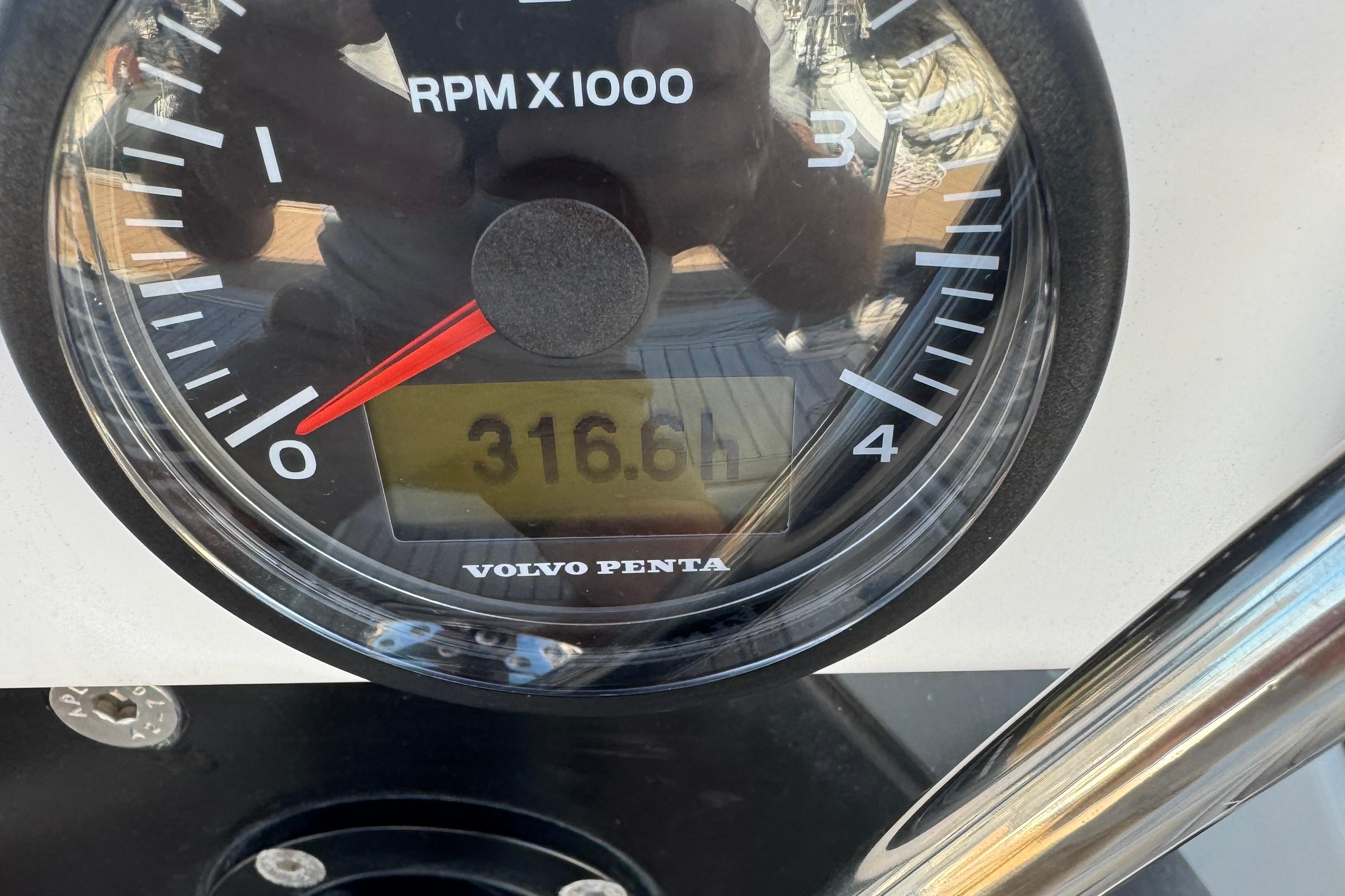 Volvo D2-75 avec uniquement 316h, GV hydranet, écoute à l'allemande, foc auto-vireur, gennaker sur emmagasineur, propulseur d'étrave, cockpit avec grand coffre de rangement, plateforme de bain, bossoirs télescopiques, panneaux solaires avec régulateur de charge, double barre à roue, pont et cockpit en teak, capote, Bimini..