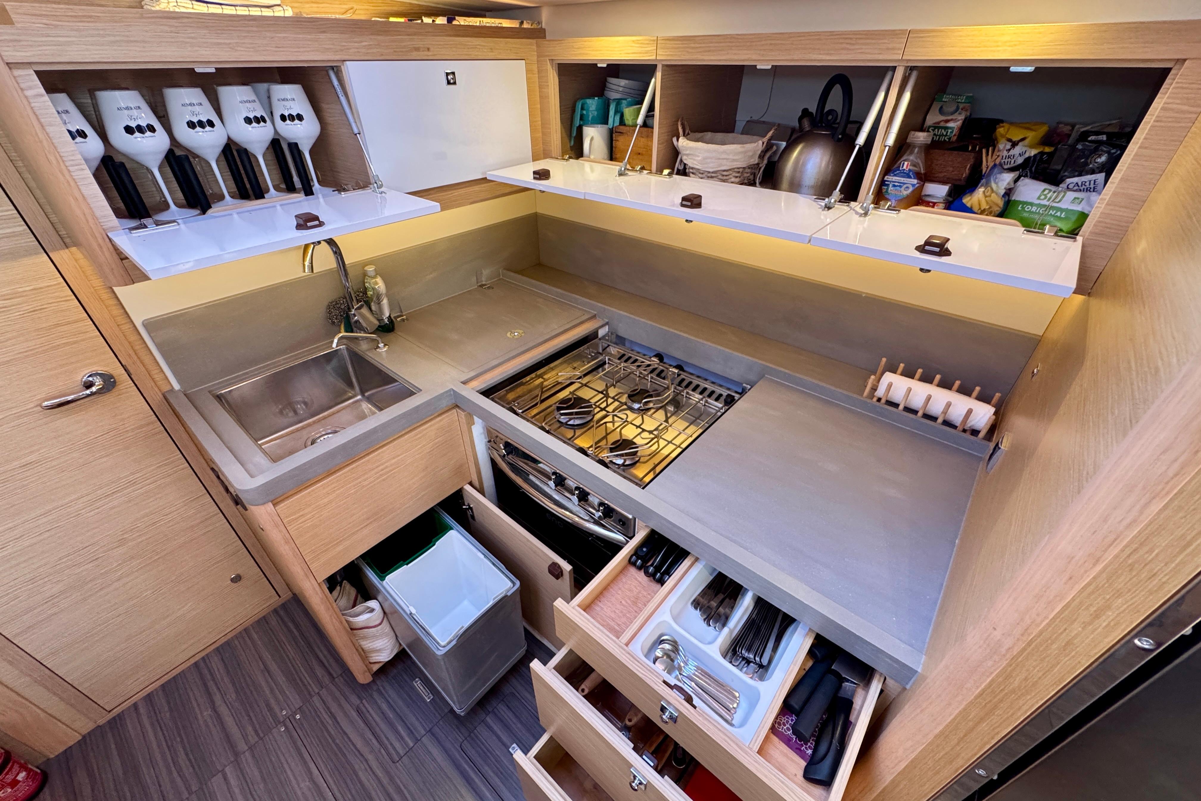 La version « Ocean » est idéale pour les propriétaires qui souhaitent un plan de manœuvre plus traditionnel avec les écoutes positionnées sur les hiloires et les manœuvres de drisse et de chariot de grand-voile à proximité du poste de barre. Equippé du GV en Hydranet montée sur charriots.