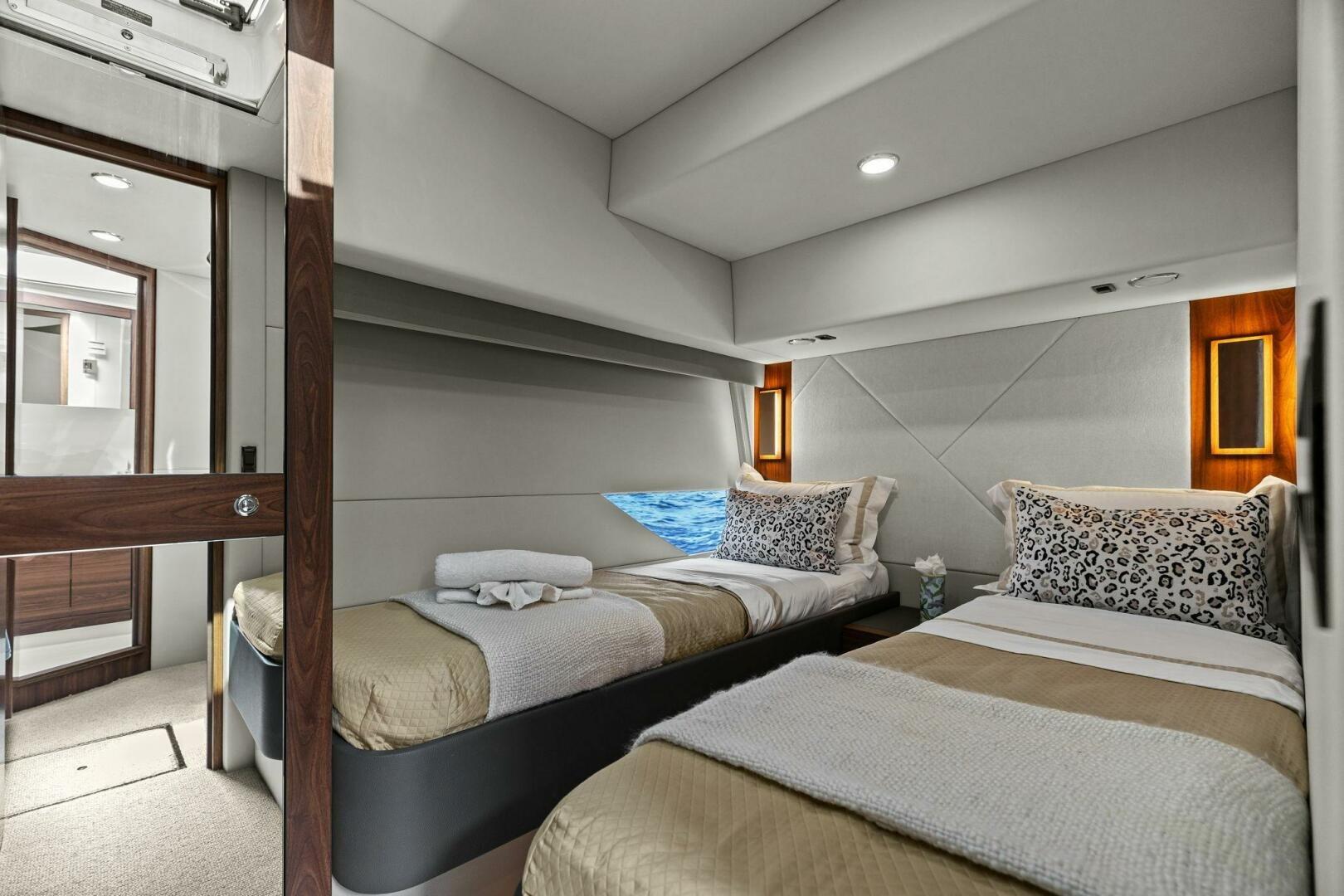 - Optional lowered Black Edition Queen bed in forward stateroom with more storage and charging for a vacuum