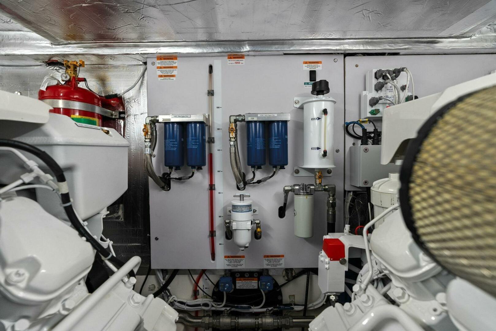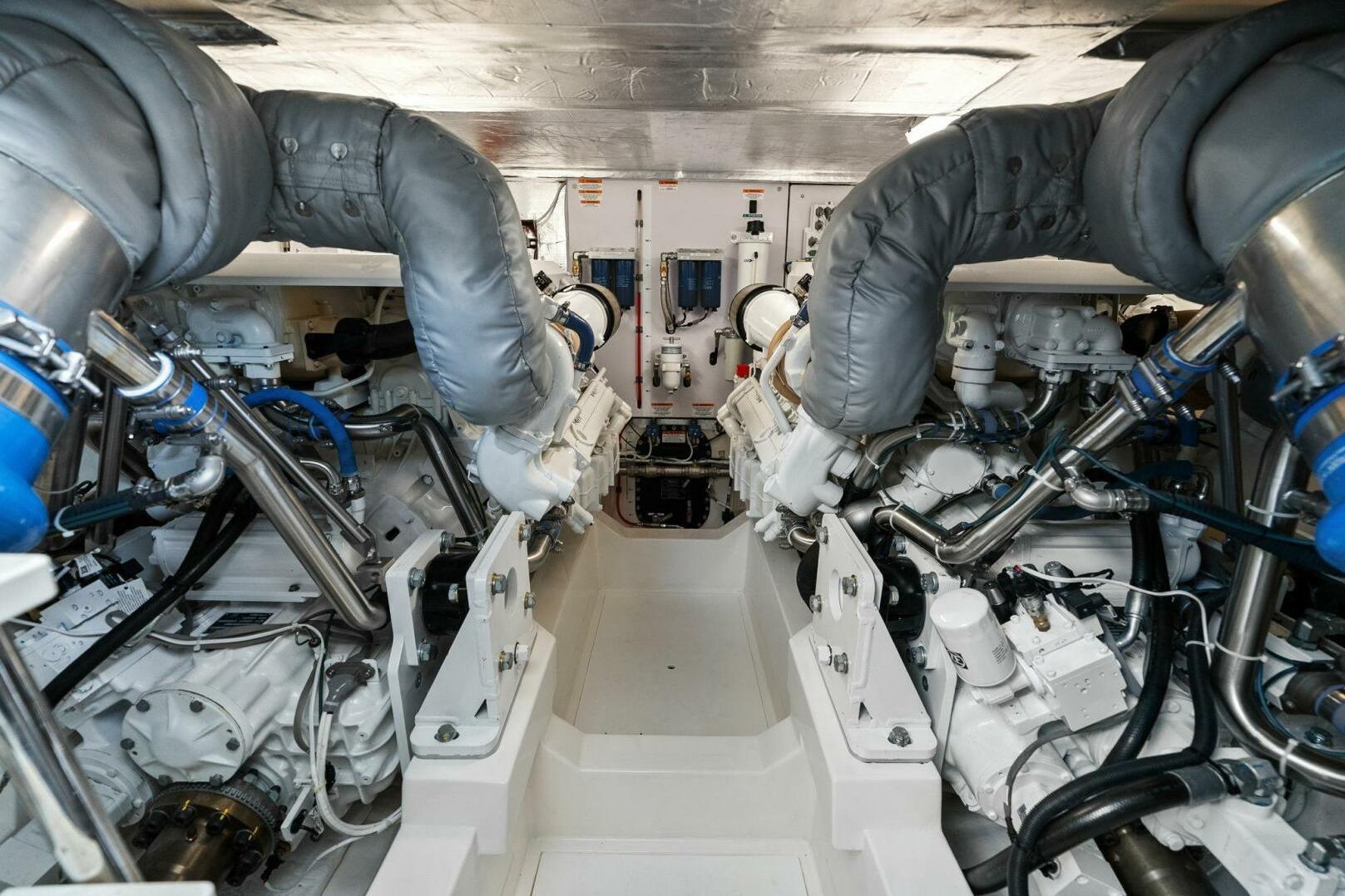 - Continuous fan ducted to lazarette and engine room light switch, additional waterproof 110V outlet on flybridge along with a water spigot for easy washdowns