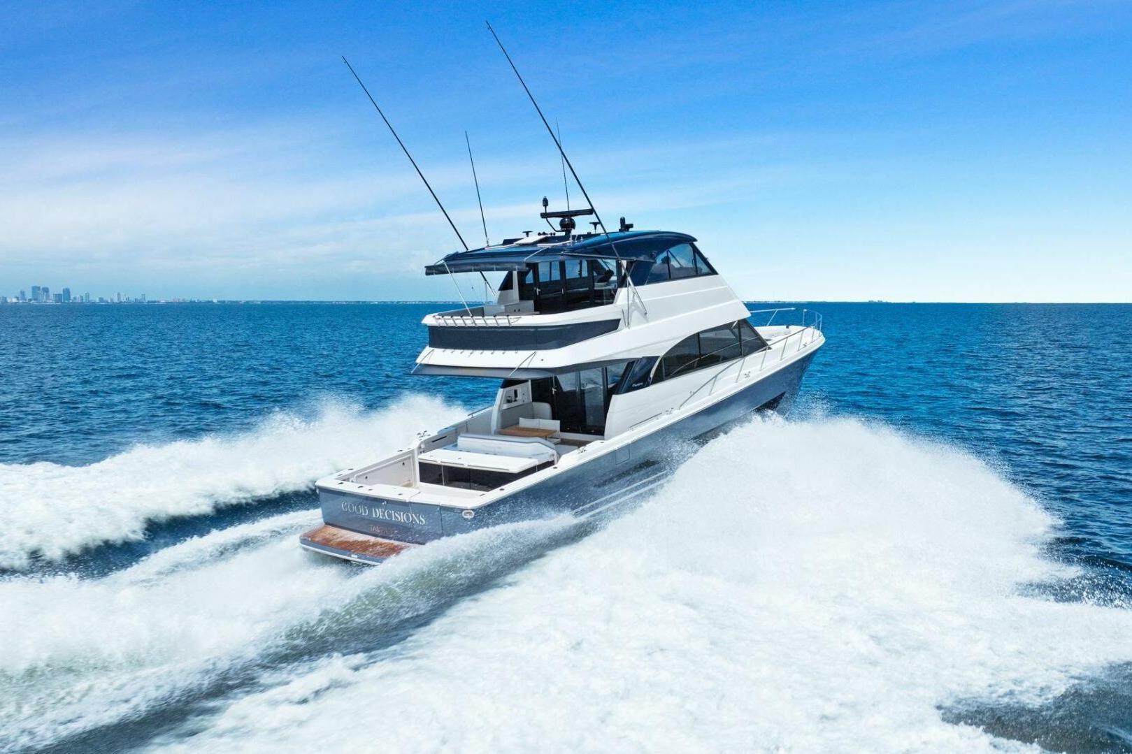 “Good Decisions” began life as a highly customized vessel for an avid boat owner who carefully selected every option, including a distinctive custom painted color scheme. Fitted with the largest engines available for this model — Scania DI 16 1,150 HP — she delivers commanding performance with effortless ease.