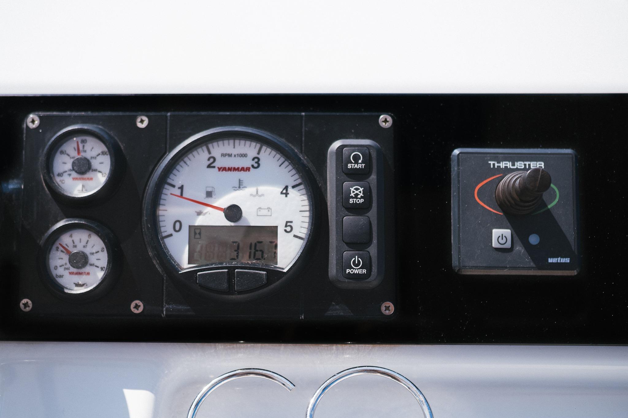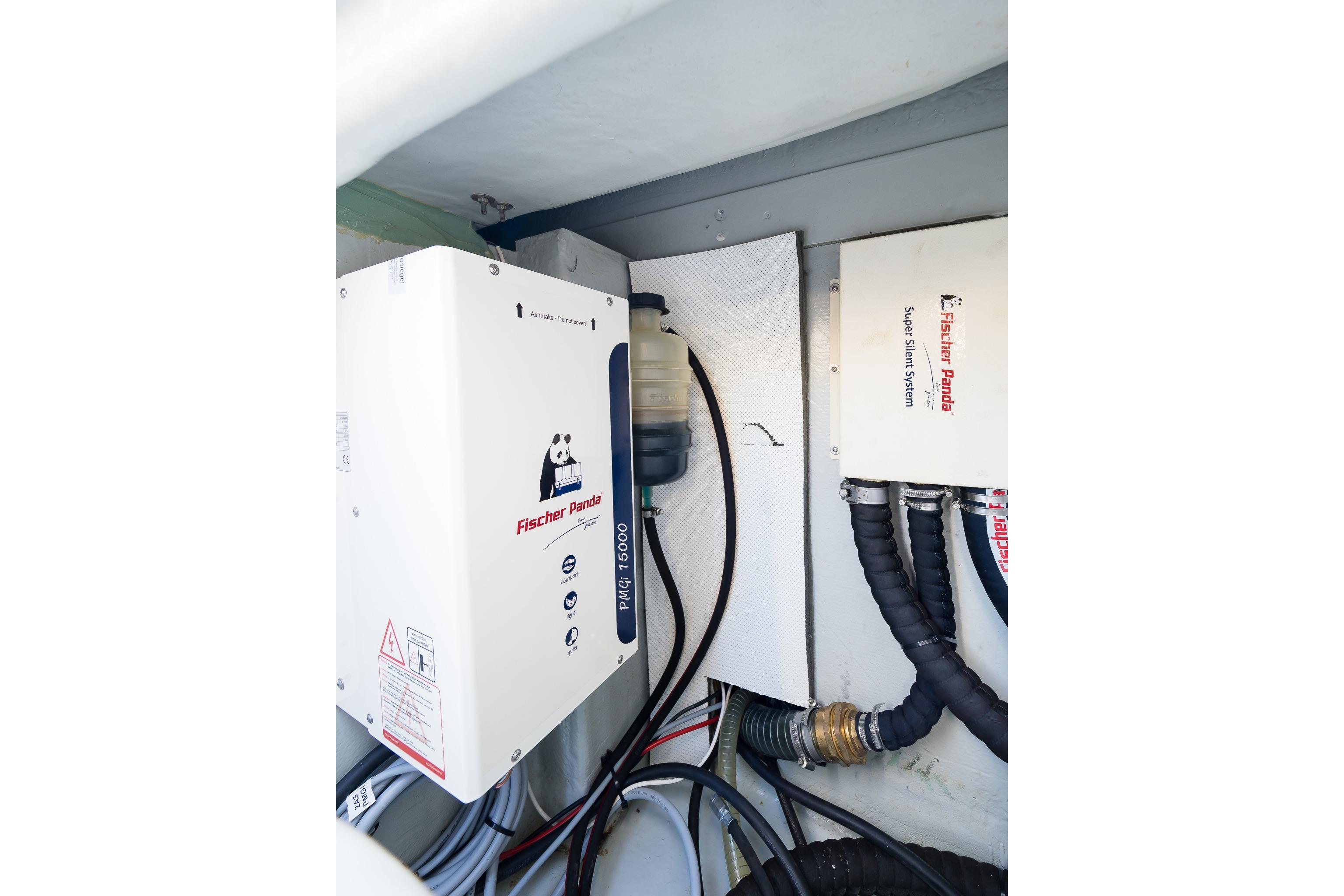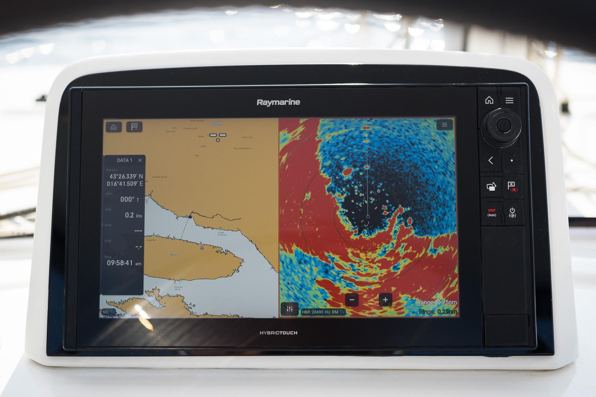Boat equipment features a classic mainsail, solar panels, a radar, a generator, a bimini and an outside GPS plotter. It also boasts a flat screen TV, heating, air conditioning, an audio system and outside speakers. The fully-equipped galley includes a fridge, an oven, a cooker, a sink and kitchen utensils.