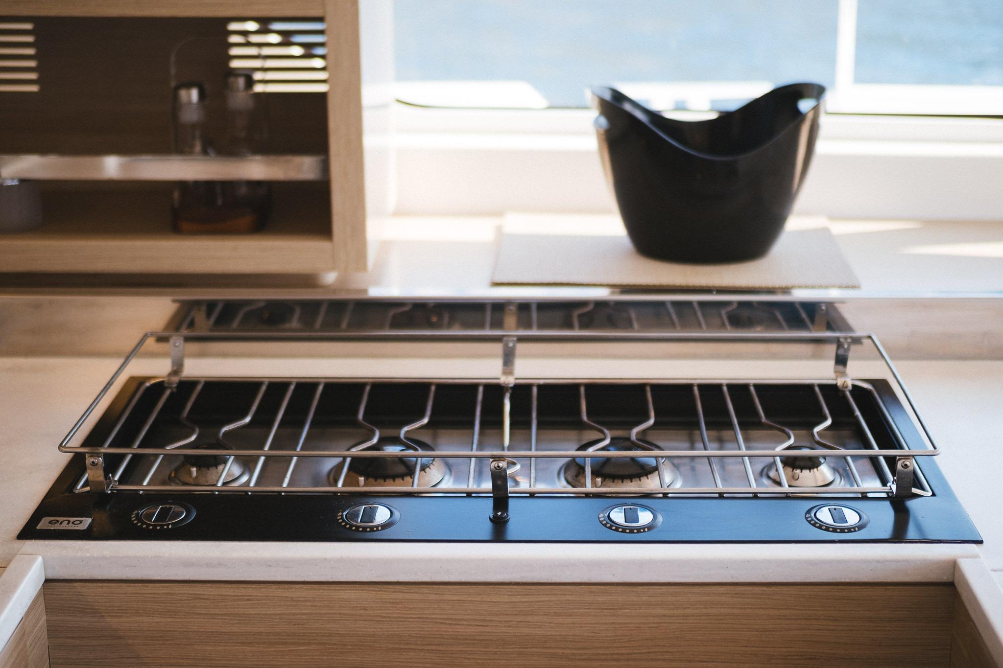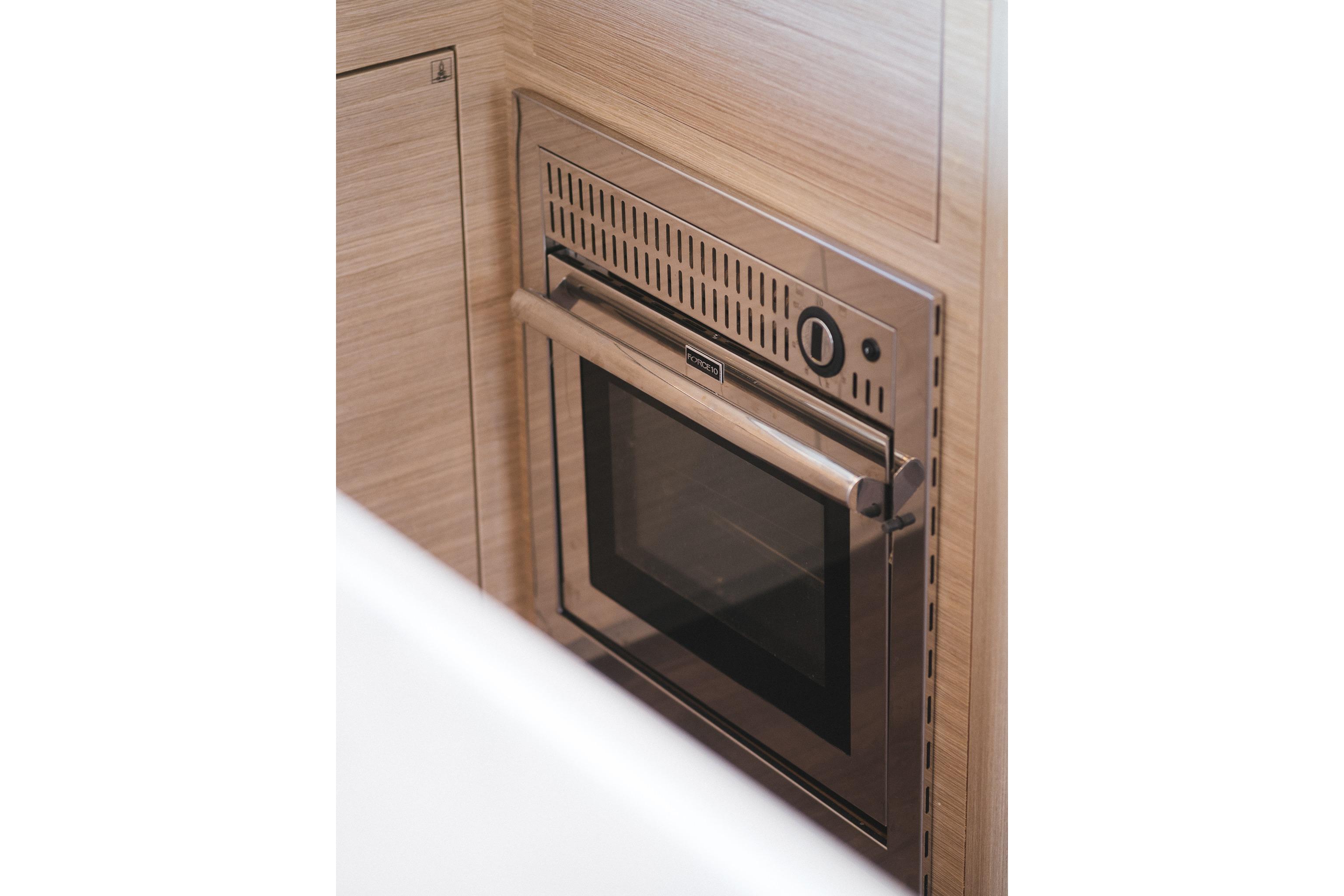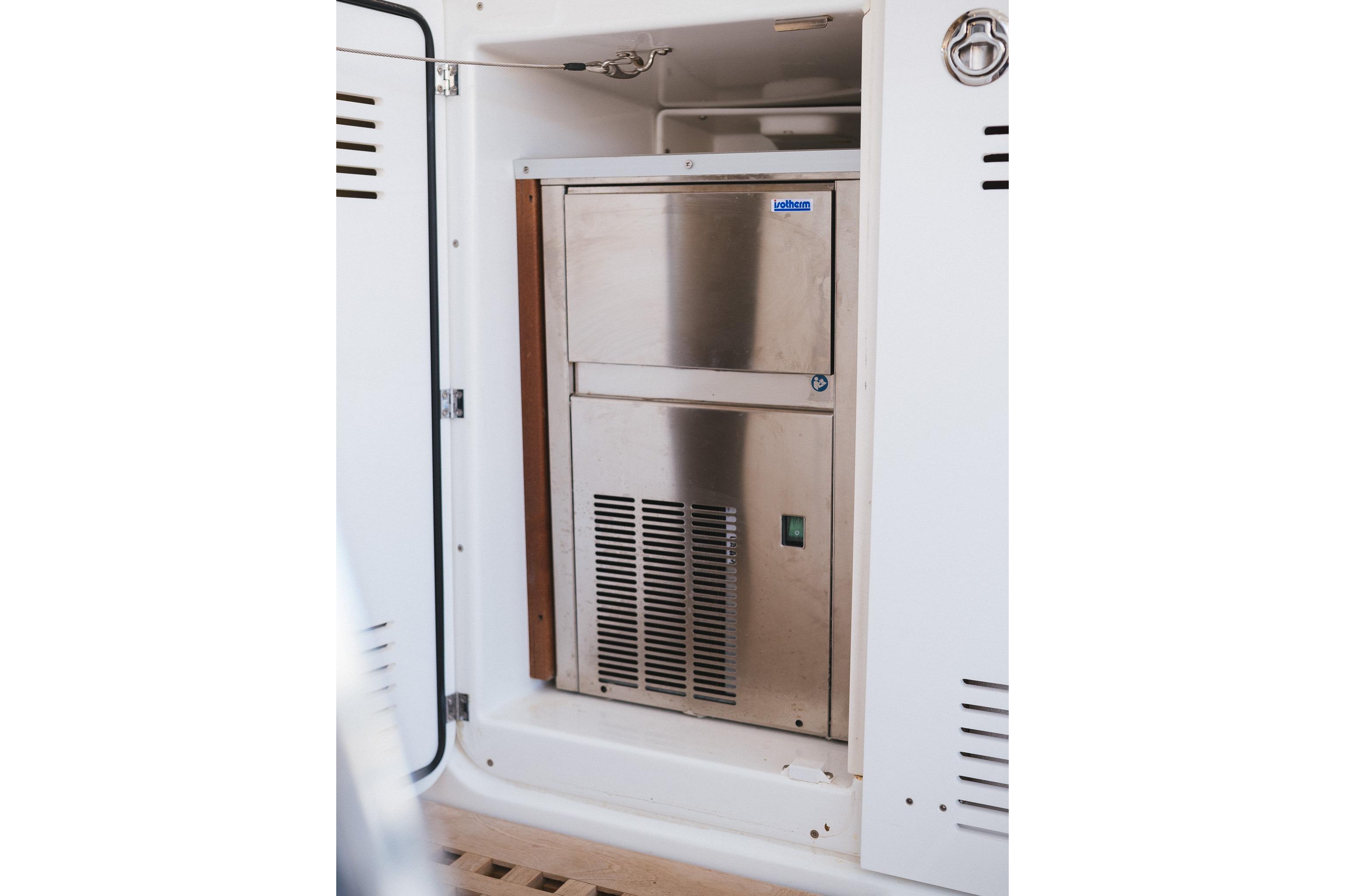 Boat equipment features a classic mainsail, solar panels, a radar, a generator, a bimini and an outside GPS plotter. It also boasts a flat screen TV, heating, air conditioning, an audio system and outside speakers. The fully-equipped galley includes a fridge, an oven, a cooker, a sink and kitchen utensils.