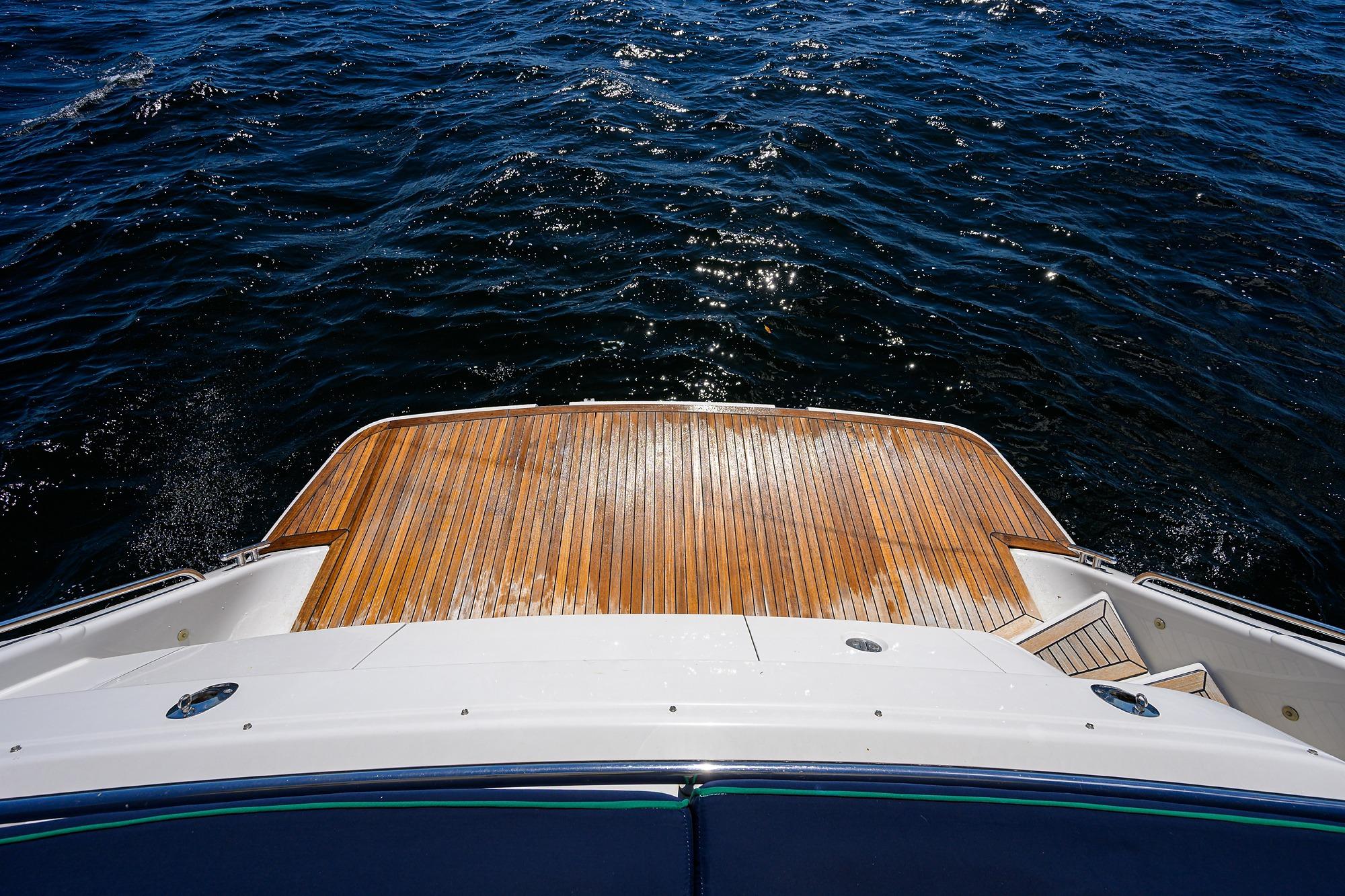 - FRP hardtop custom made by Pipewelders, single Opacmare 550 lb. davit on boat deck, S.S./teak electric/hydraulic extend/retract Opacmare passarelle, S.S. swim ladder on swim step