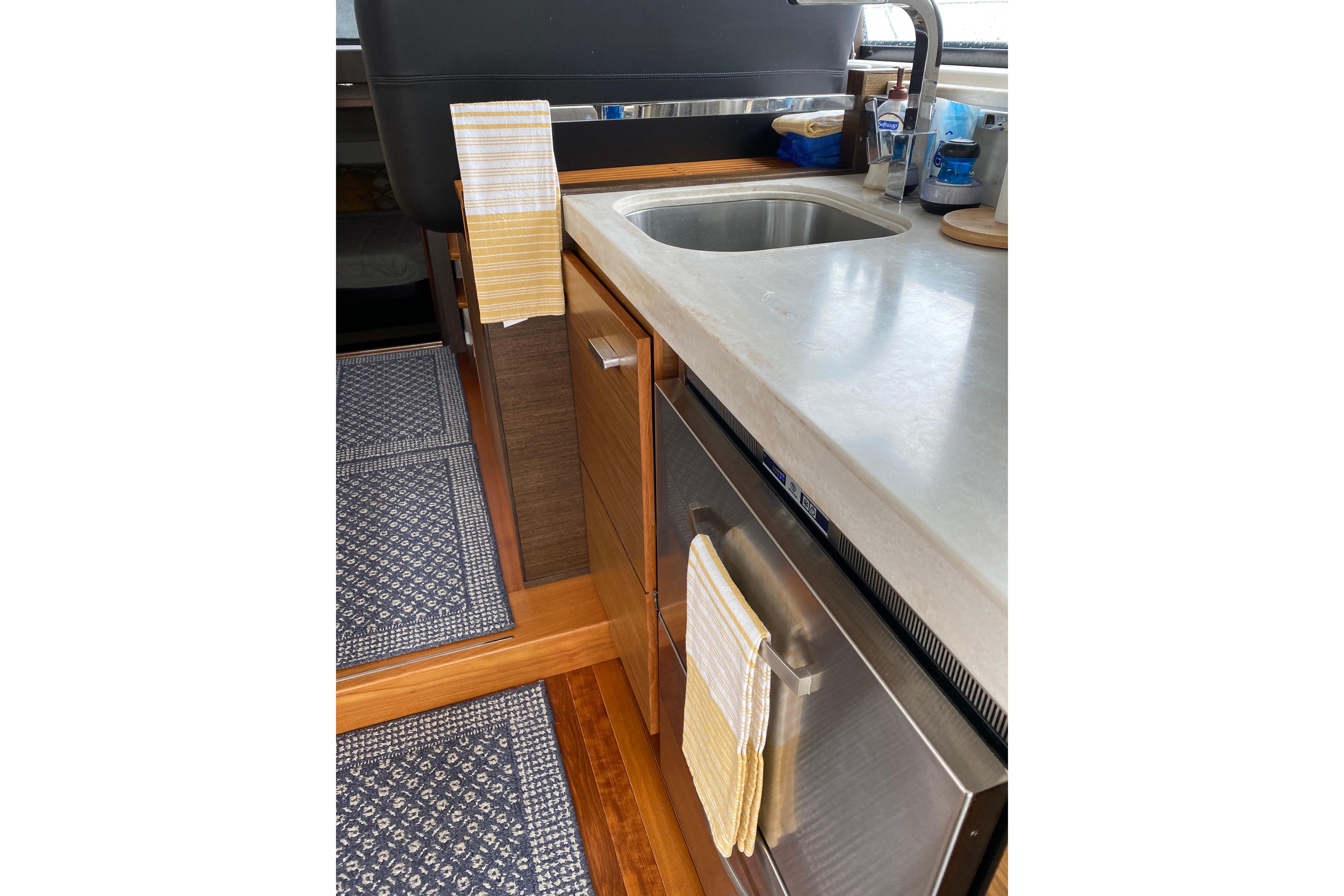 Additional upgrades including a Garmin 800 AIS Transceiver, Garmin OnDeck Boat Monitoring, Newer Solid State Doppler Garmin GMR Fantom 54, Spare Volvo IPS T3 Propeller Set on a custom mount in engine room, Milwaukee Packout tool and storage units in engine room, Apple TVs on Salon, Master, & Guest TVs, Additional Dometic Refrigerator/Freezer in Lazarette, and an AB Dinghy with ePropulsion electric outboard are a part of the sale!
