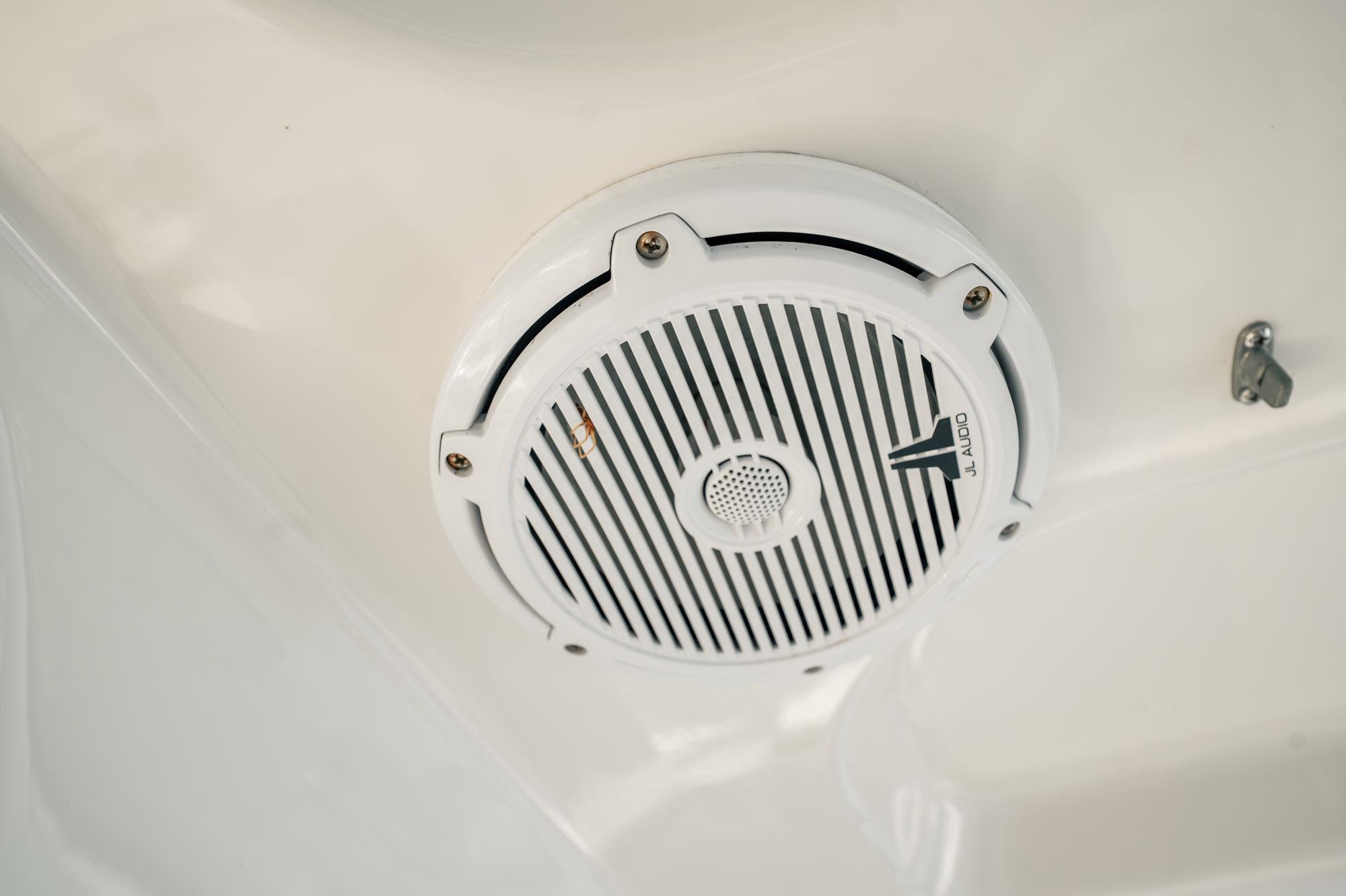 Boarding from the hydraulic retractable swim platform, you’ll find easy access to the cockpit. An up-molded staircase leads to the flybridge, where you’ll find a carpeted deck, a newer isinglass enclosure (2023), and a full suite of updated electronics. The helm is equipped with a Garmin GPSmap 18 XSV, a 2023 Raymarine 16-inch display, refurbished MAN engine displays, FLIR night vision camera, and aft-facing and salon cameras for full visibility. Entertainment on the bridge is top-notch with a Fusion stereo system, JL Audio speakers, a Vizio Roku TV, and Starlink internet for streaming or remote work.