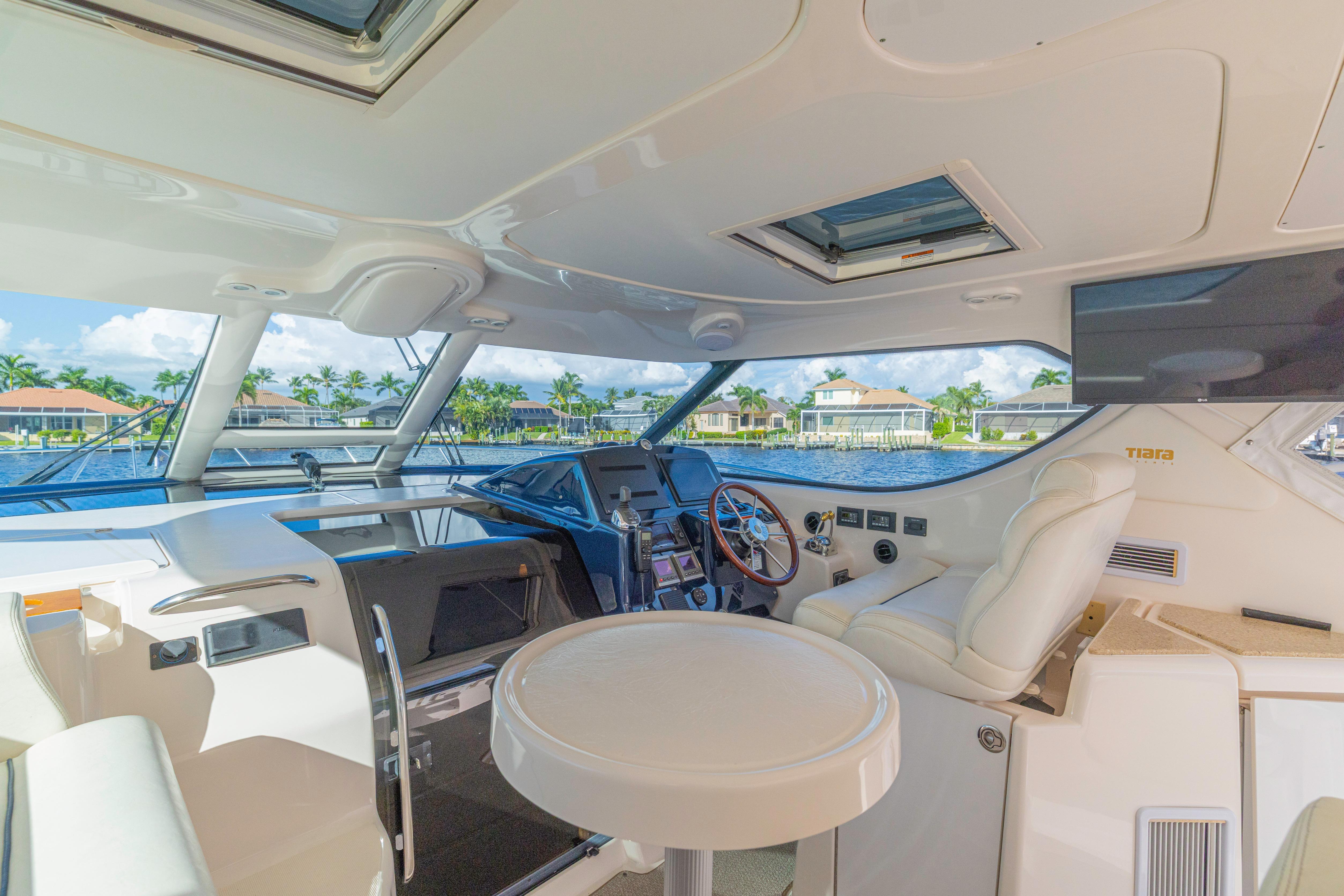 Below deck, the Sovran’s two-stateroom, two-head layout delivers real cruising comfort for owners and guests. The forward master offers a private retreat with its own head entry, while the mid-cabin has true privacy thanks to a bulkhead and door—something many express cruisers lack. Rich cabinetry, Ultraleather seating, and warm natural light create a relaxing interior atmosphere, while the salon and galley provide all the function needed for extended stays on the water. Whether it’s a quiet weekend for two or a longer cruise with family and friends, the Sovran provides a level of comfort, privacy, and livability that stands out. And with this being the newest model year 4300 Sovran currently available on the market, it represents a rare opportunity to acquire one of the last and best examples of this iconic Tiara design—fully serviced, thoughtfully upgraded, and ready to enjoy immediately.