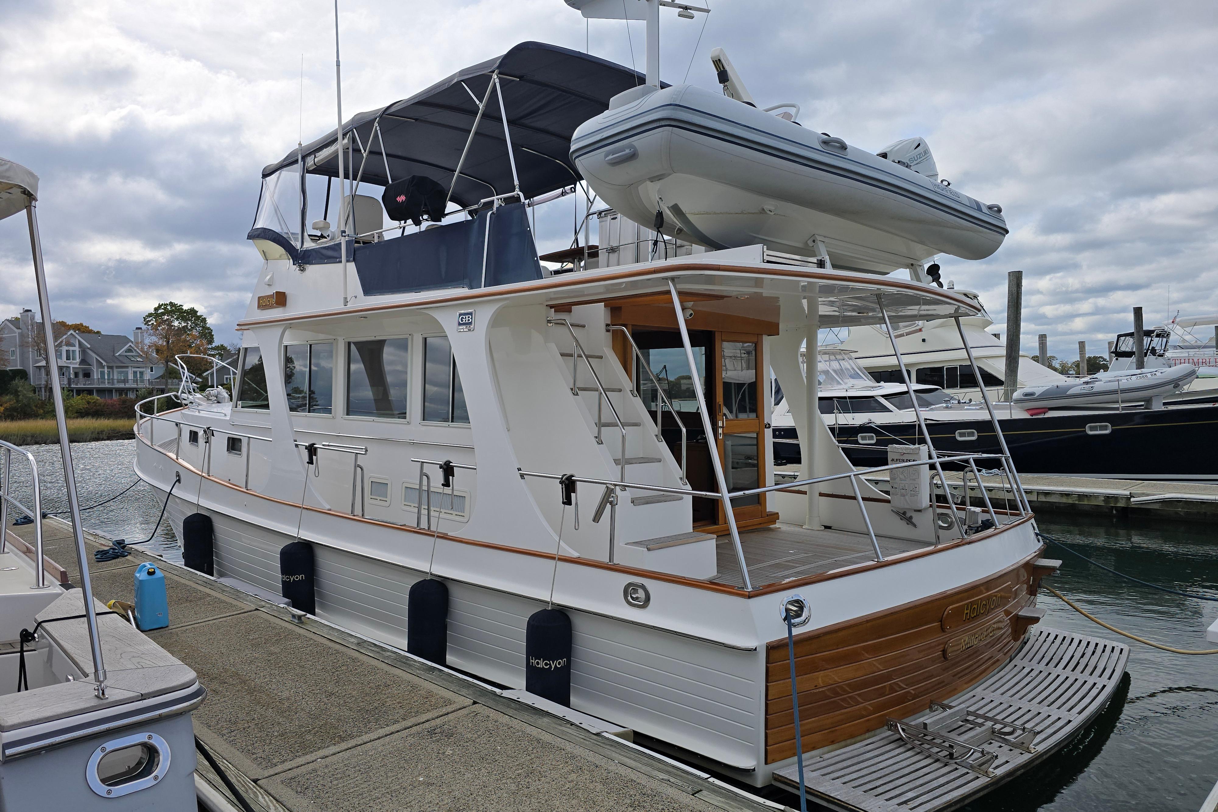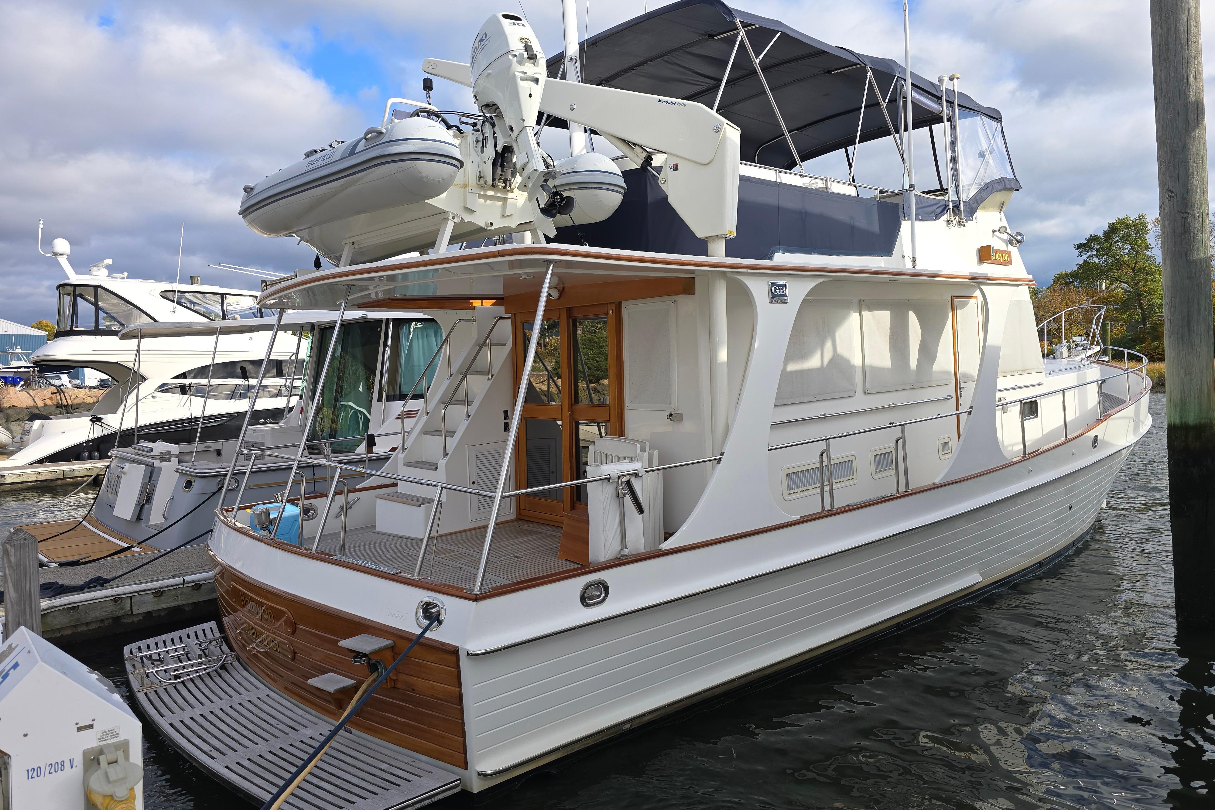 "Halcyon" is an exceptional example of one of Grand Banks’ most sought-after models. She features the popular galley-up floor plan, with the helm forward to starboard and the galley forward to port. A comfortable L-shaped dinette sits aft to port, opposite a large settee aft to starboard. The beautifully maintained interior showcases Grand Banks’ signature teak craftsmanship, with woodwork and cabin sole in excellent condition throughout.