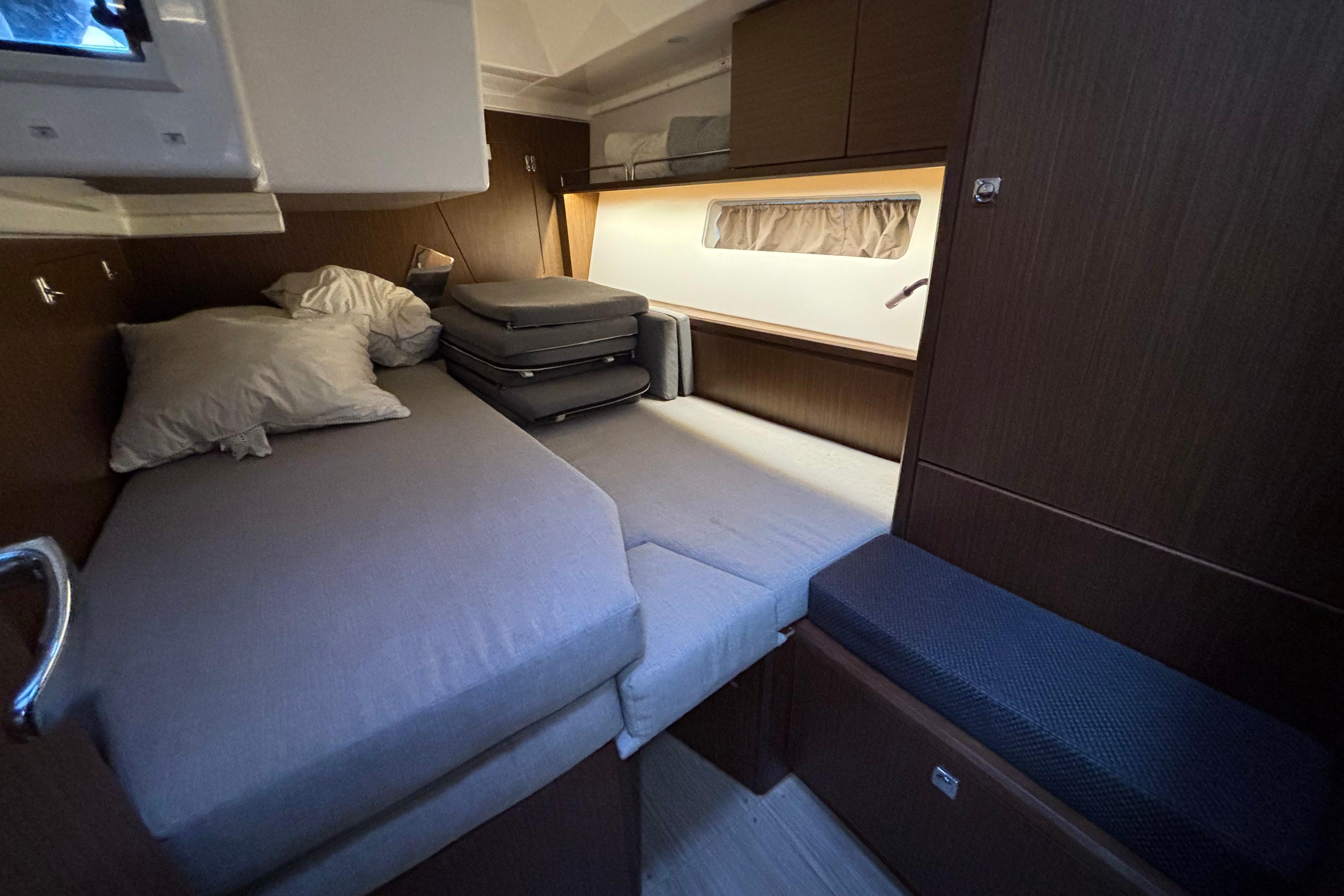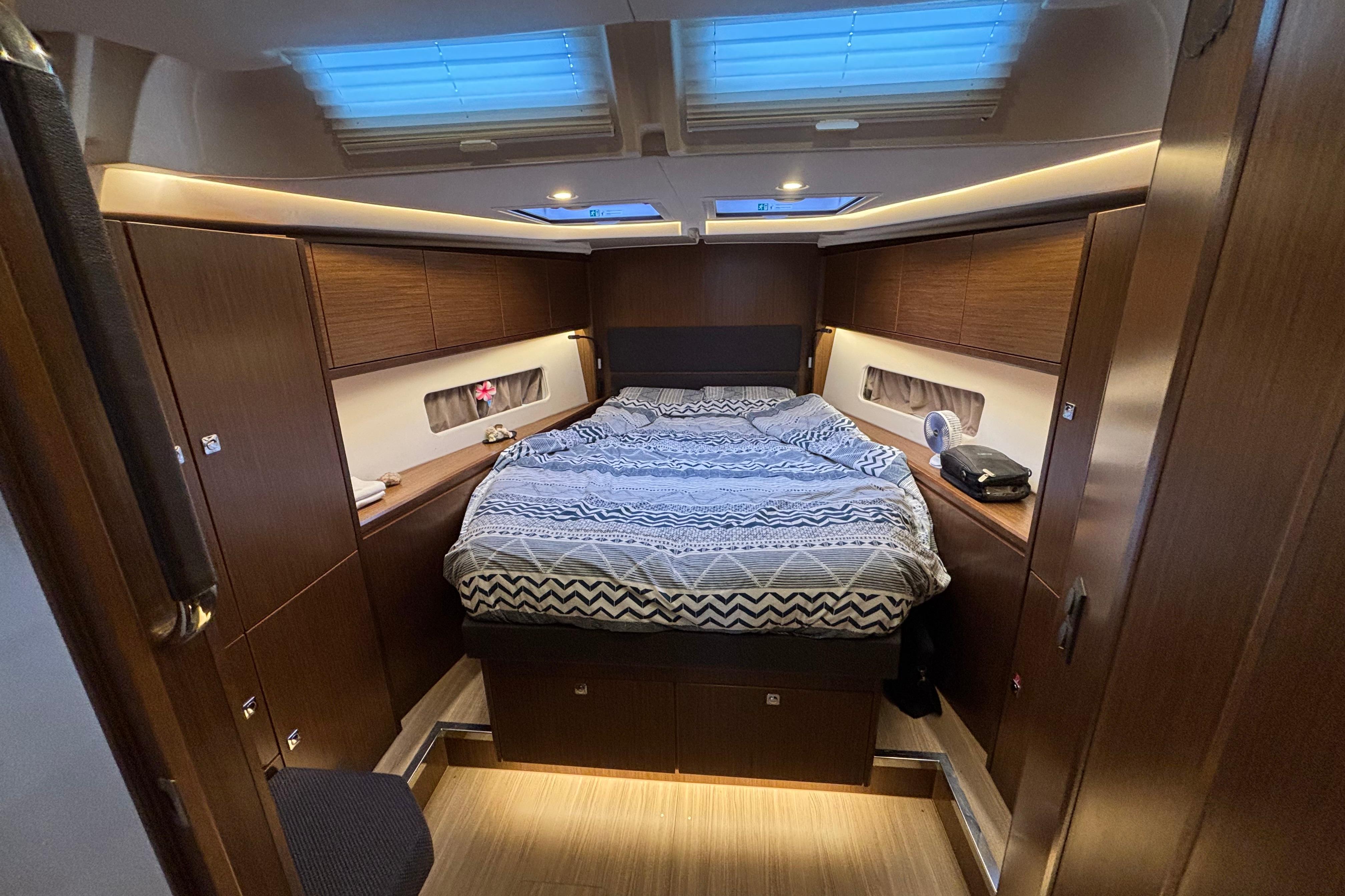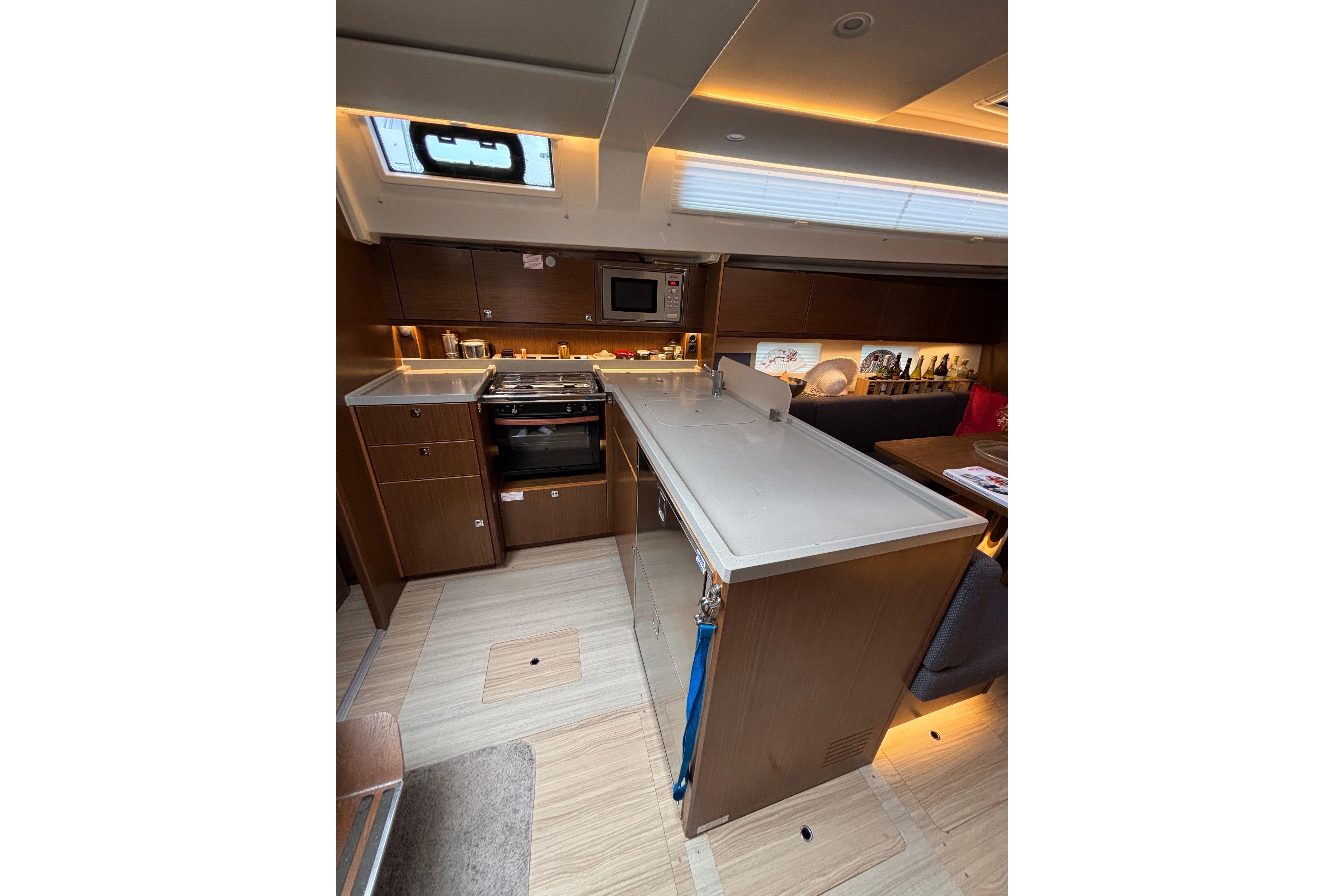 Ce BAVARIA C45 vous offre un grand confort intérieur. Il dispose de 3 cabines dont 1 propriétaire avec matelas à mémoire de forme, d’un dressing spacieux ainsi qu’une cuisine équipée en L.