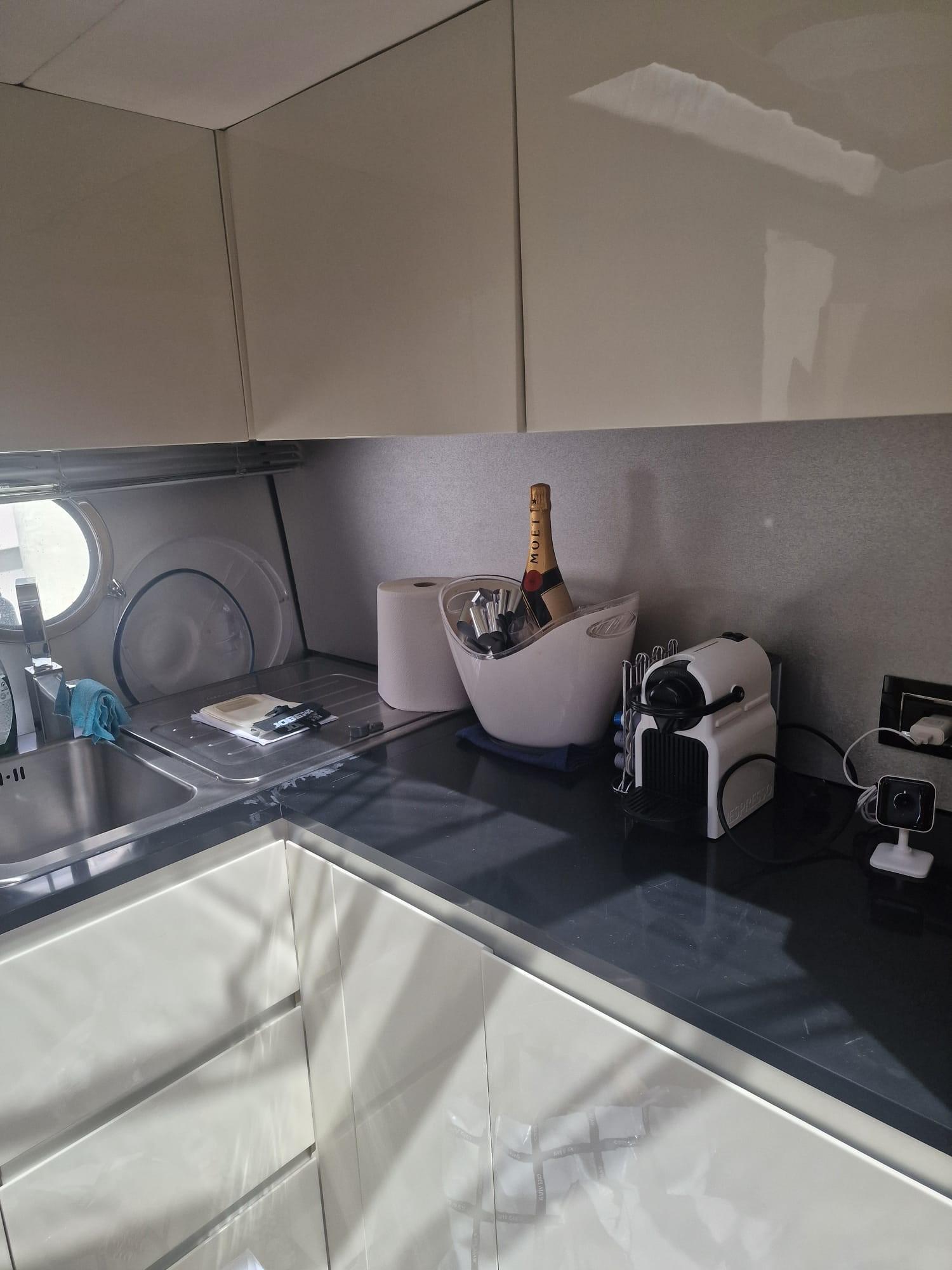 The C54 Sport Coupé unites a design, comfort and quality features typically expected from a big yacht. This luxury boat is an expression of the builder’s creativity and skill. She has been intelligently studied and features both a generous distribution of space as well as an enclosed living. The enormous sun bed and the table for eight combine to make the main deck the focal point of life on board, while below deck, the 3 cabins, including a centrally located master suite equipped with a separate bathroom, plus kitchen not only assure a high standard of living, but also make every moment on board an amazing life experience.
