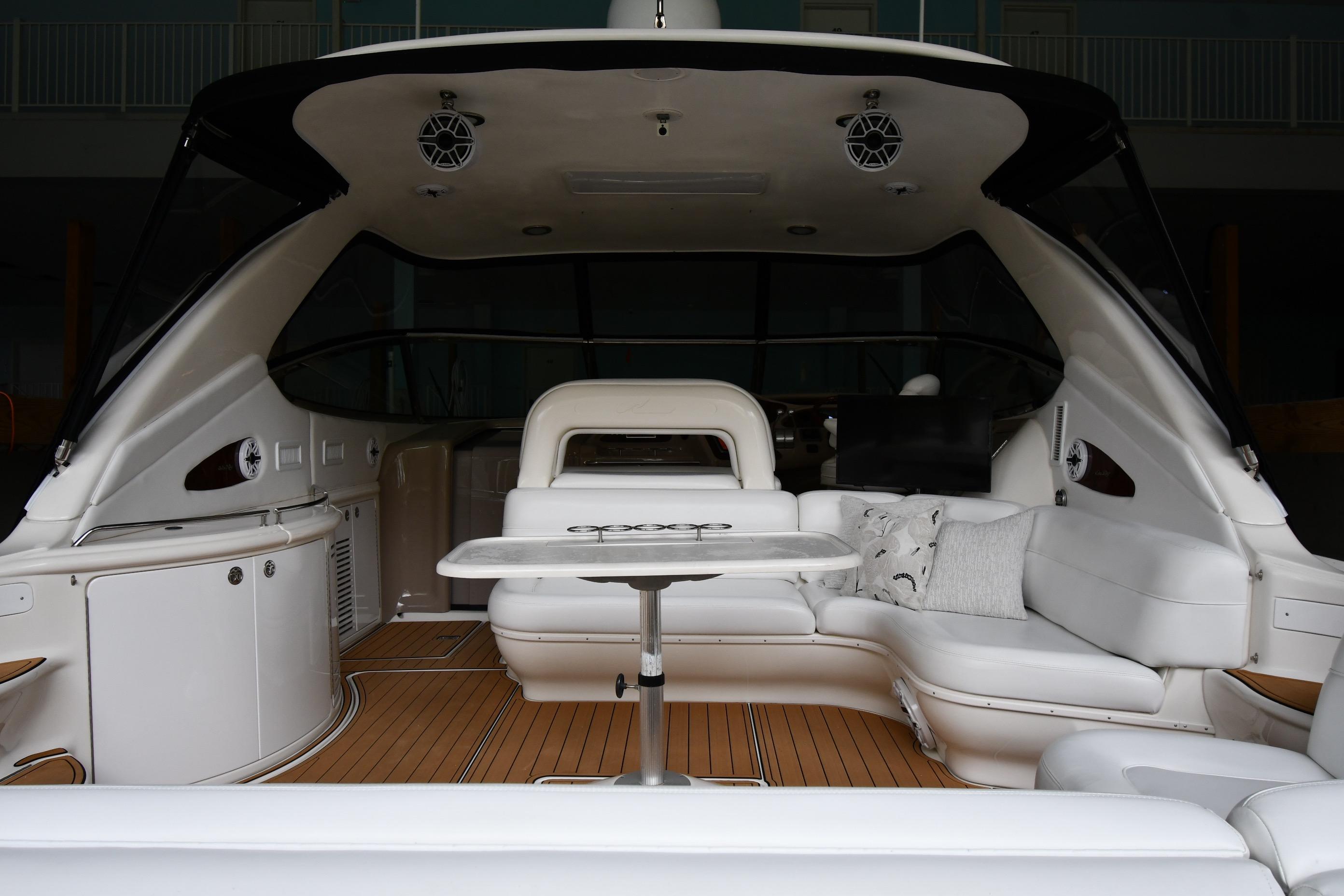 Broker Notes: Shows in far above average condition - Note NEW Custom Cockpit Interior w/Sea-Dek Throughout Cockpit / Hydraulic Swim-Platform, NEW Interior Carpeting and Sunbrella Canvas Carpet-Runners, Professionally Serviced - Note NEW Turbo's. NEW Raymarine Electronics w/NEW Dash Panels. (2) Spare Propellers. Inside heated stored in climate controlled boathouse winter 2025/2026 and available to see by appointment. Highly recommended by listing agent!