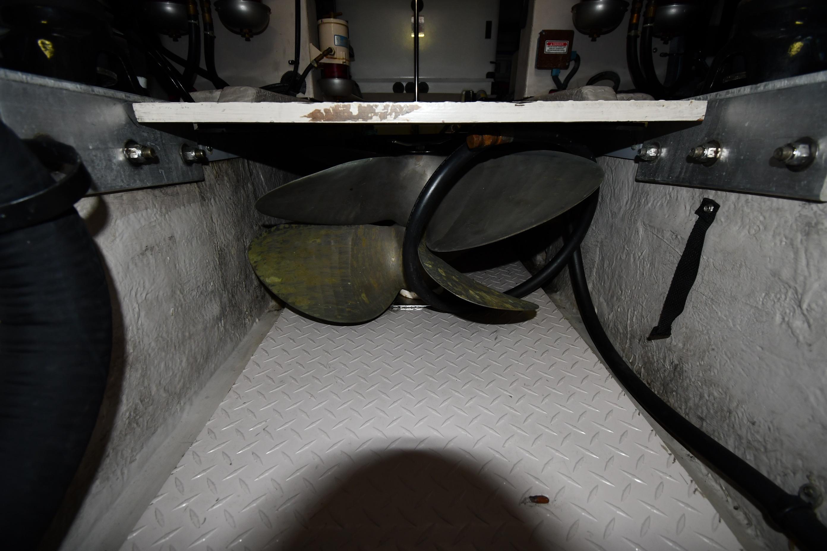 Bonding System w/Large Zinc Hull Plate Propeller Shafts, 2 1/2" Stainless Steel (2) - Aquamet 22 Propellers, Nibral 4-Blade Cup Rudders - Manganese-Bronze w/Stainless Steel Posts Seacocks On All Underwater Fittings Seawater Strainers Shaft Logs, Dripless w/Extra Seal Carrier Kit Struts - Manganese-Bronze Trim Tabs, 24V Hydraulic Transom-Mounted, Heavy-Duty, Dual Rams w/Pump
