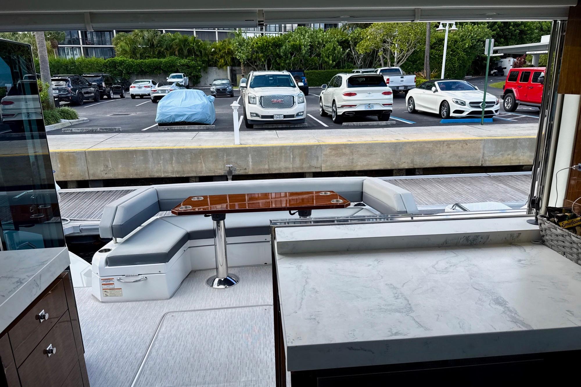 - Sliding pocket glass doors + window joining salon and cockpit seamlessly