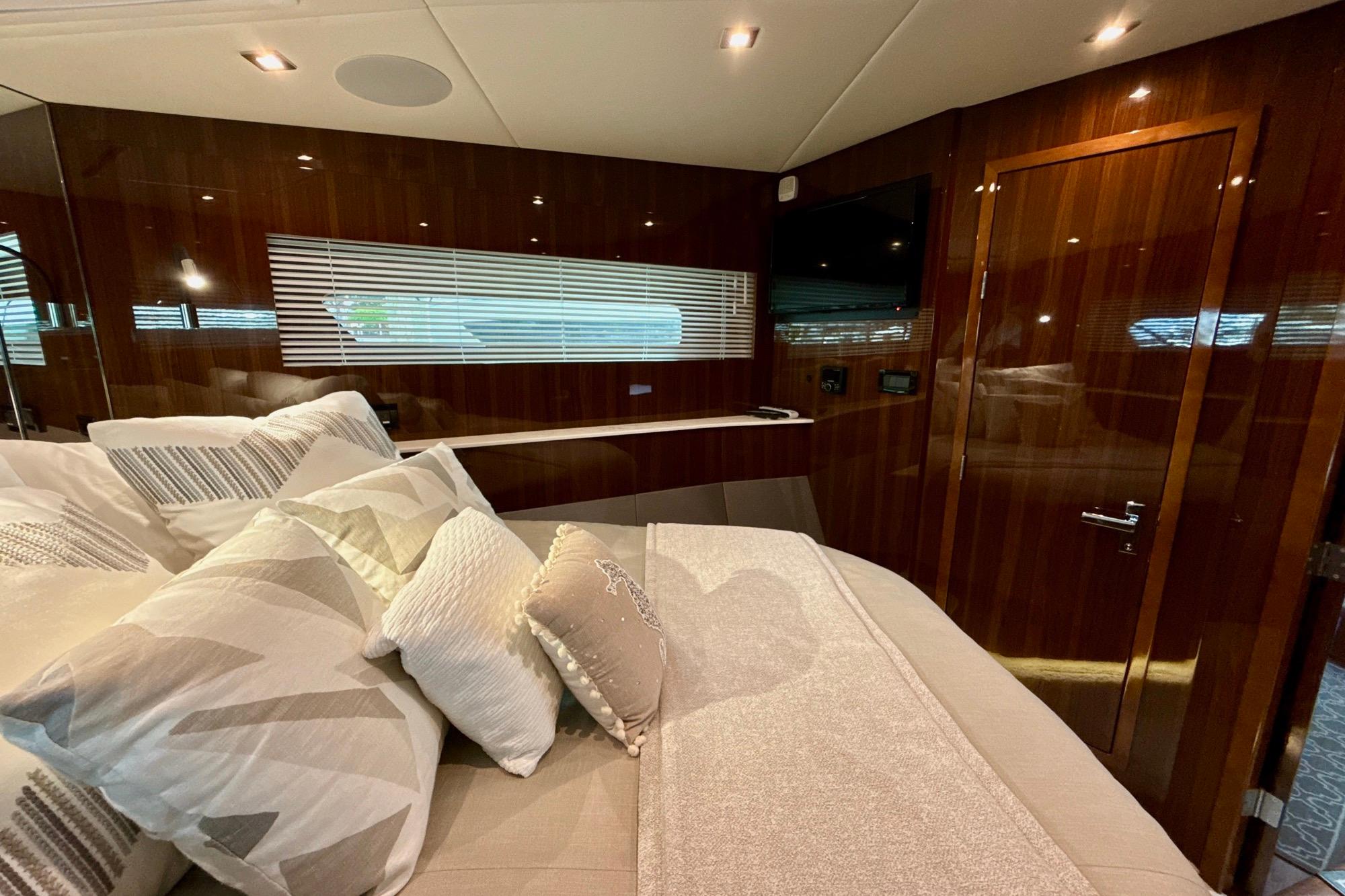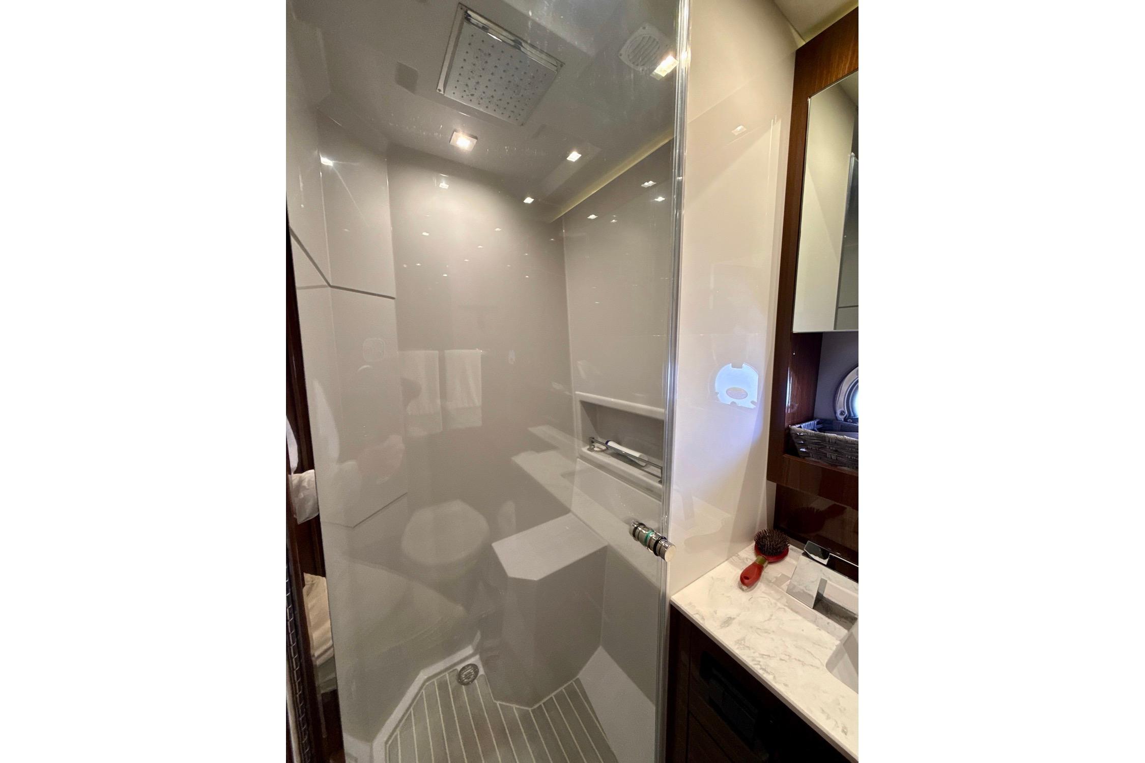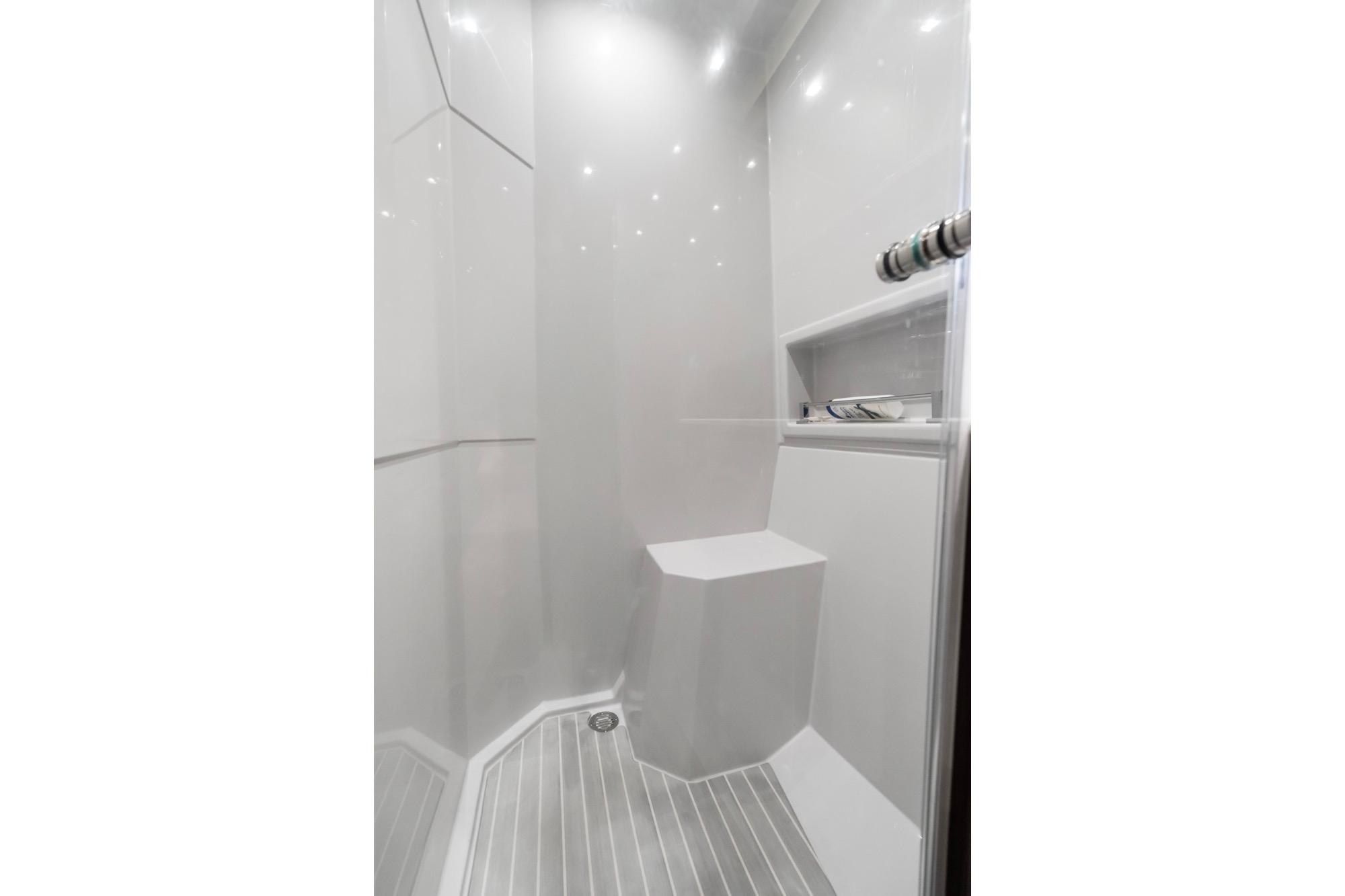 - Galley to port – convection microwave, dual drawer fridges/freezers, dishwasher, deep stainless sink with modern fixture, ample storage