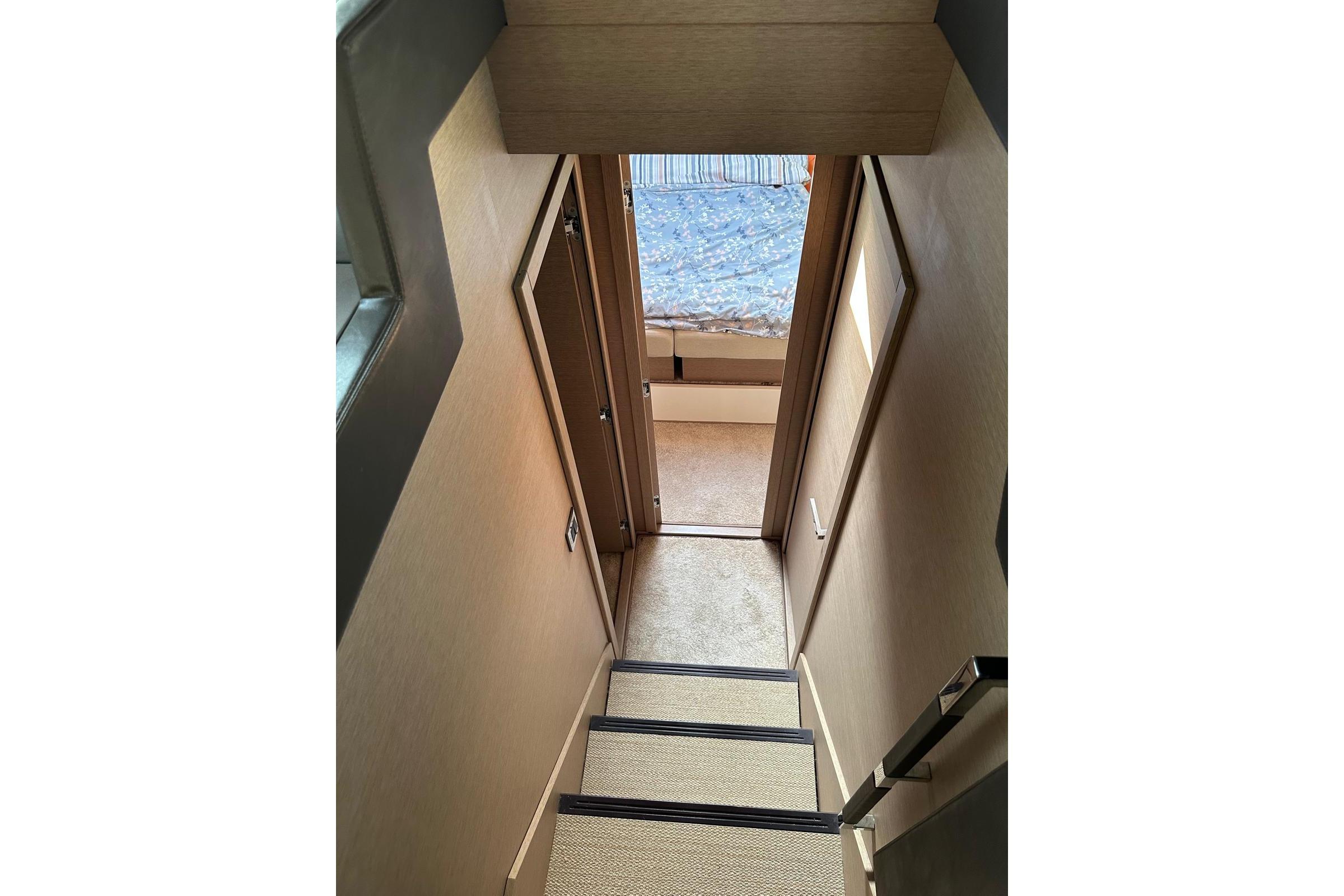 Powered by twin Volvo IPS 600 (2x440 hp) engines with only 245 hours, she offers smooth, quiet, and precise handling. Equipped with a generator, air conditioning, hydraulic platform, and hydraulic gangway, she delivers the highest level of onboard comfort.