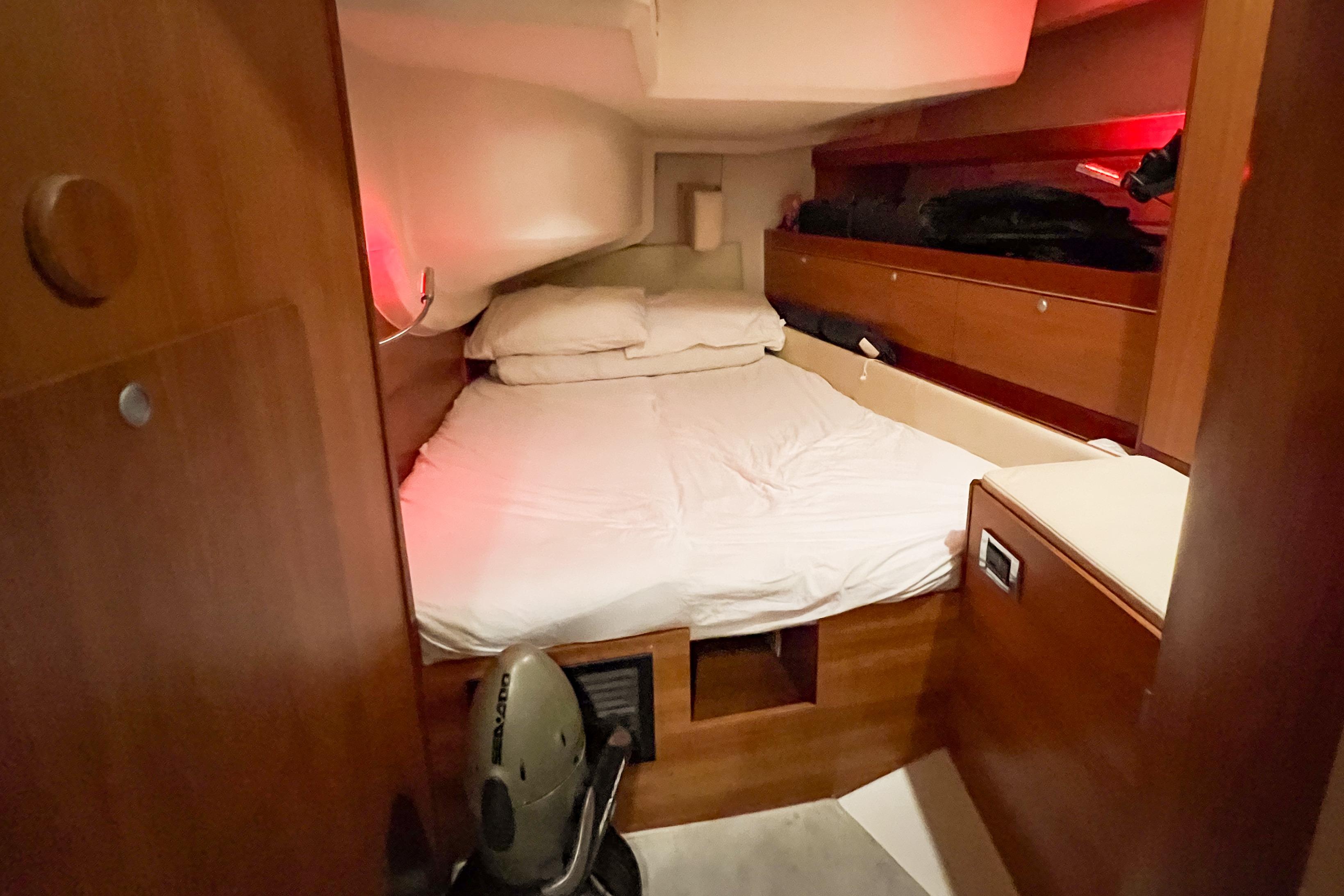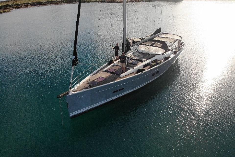 In total, six sails are provided: mainsail original from 2013, headsail 2020, headsail unused, code zero 2016, asymmetric spinnaker 2016 and a storm jib unused.