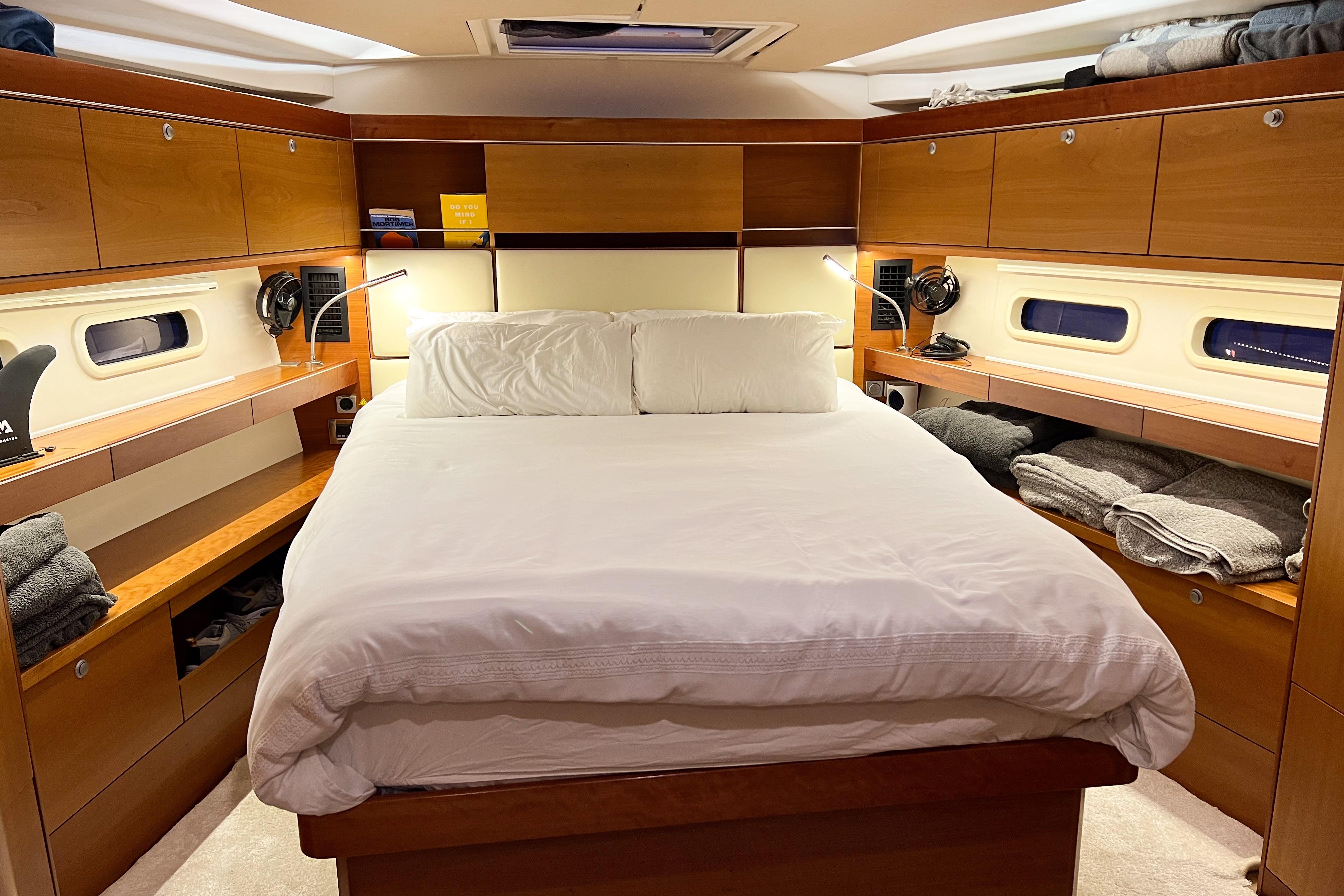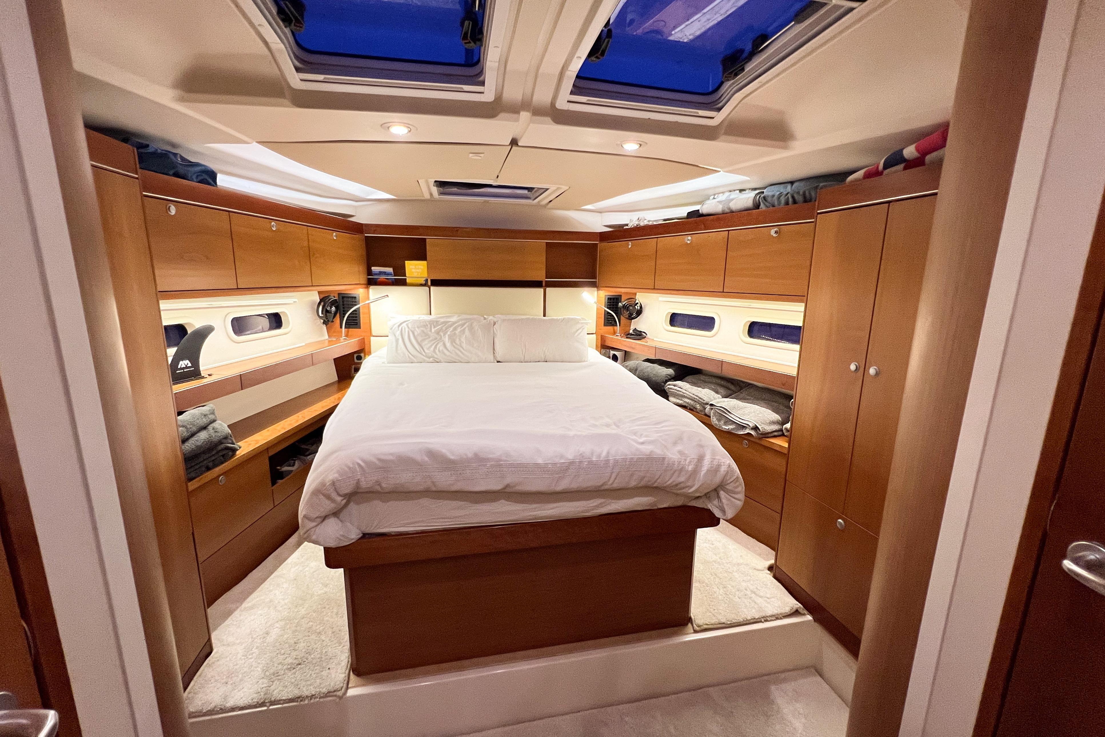 The Hanse 575 offers comfortable accommodations, featuring three well-appointed double cabins and two heads, making it ideal for extended voyages with family or friends. Equipped with an electric windlass, it enhances convenience during anchoring and docking.