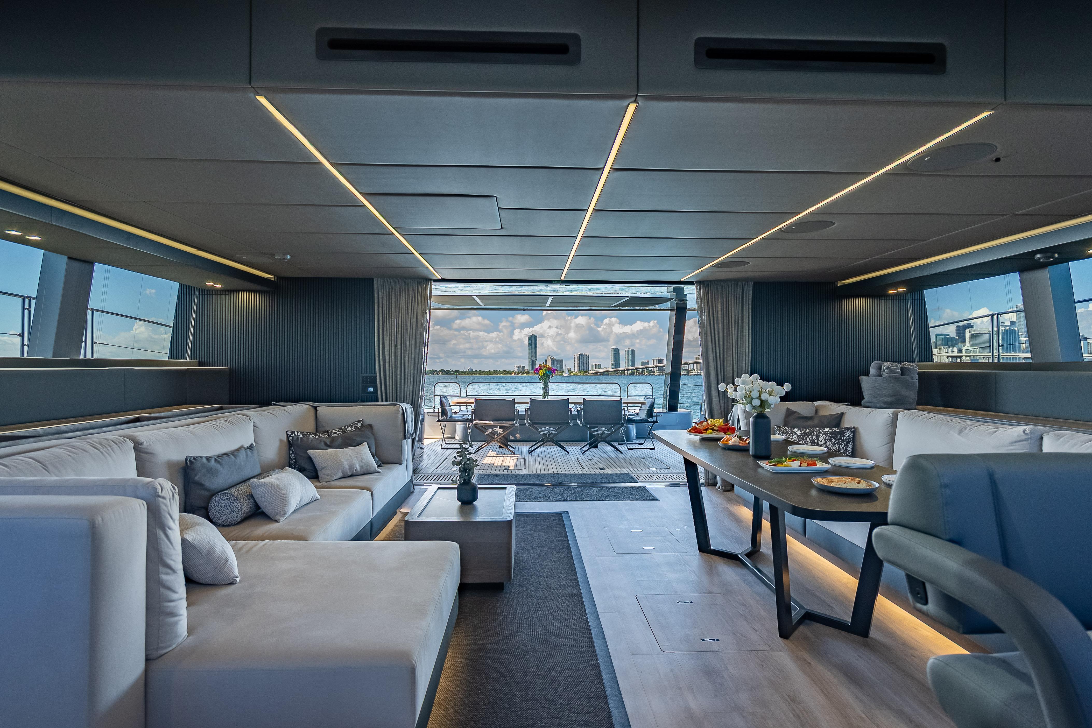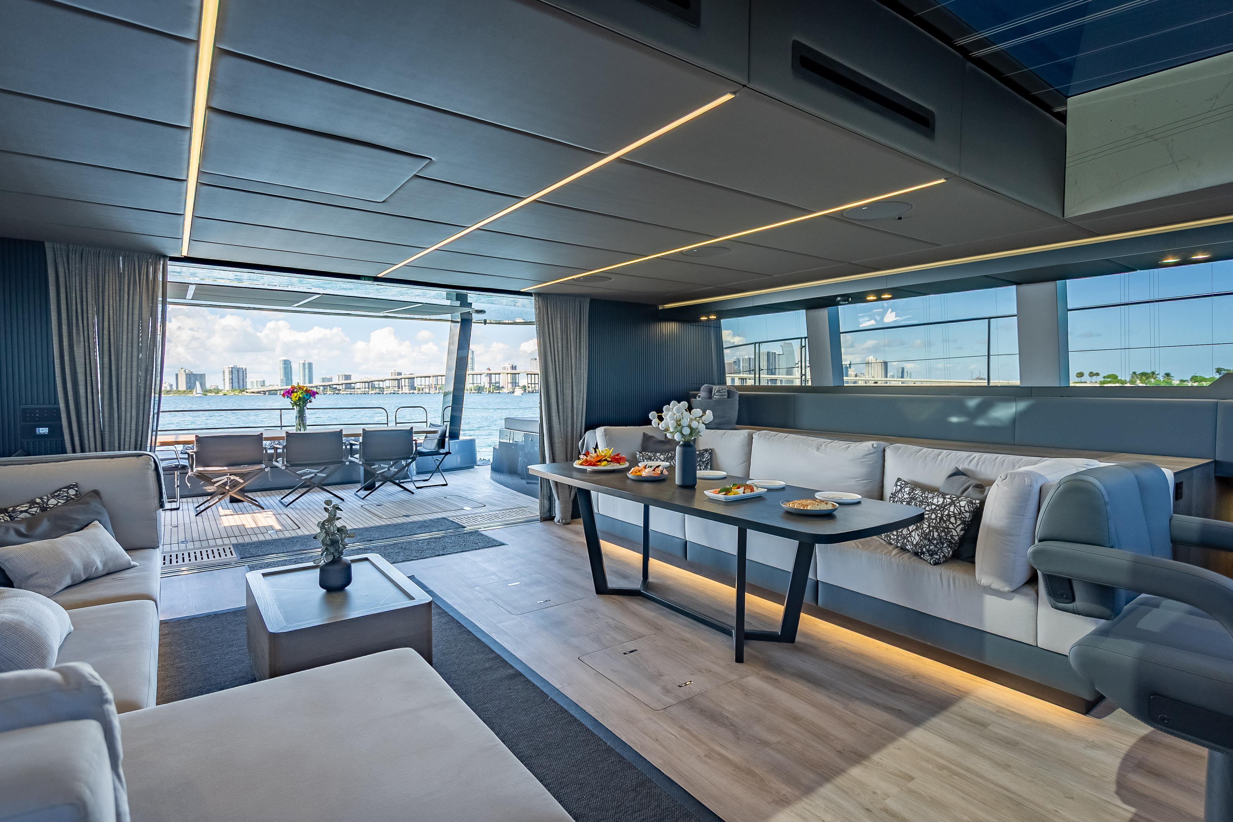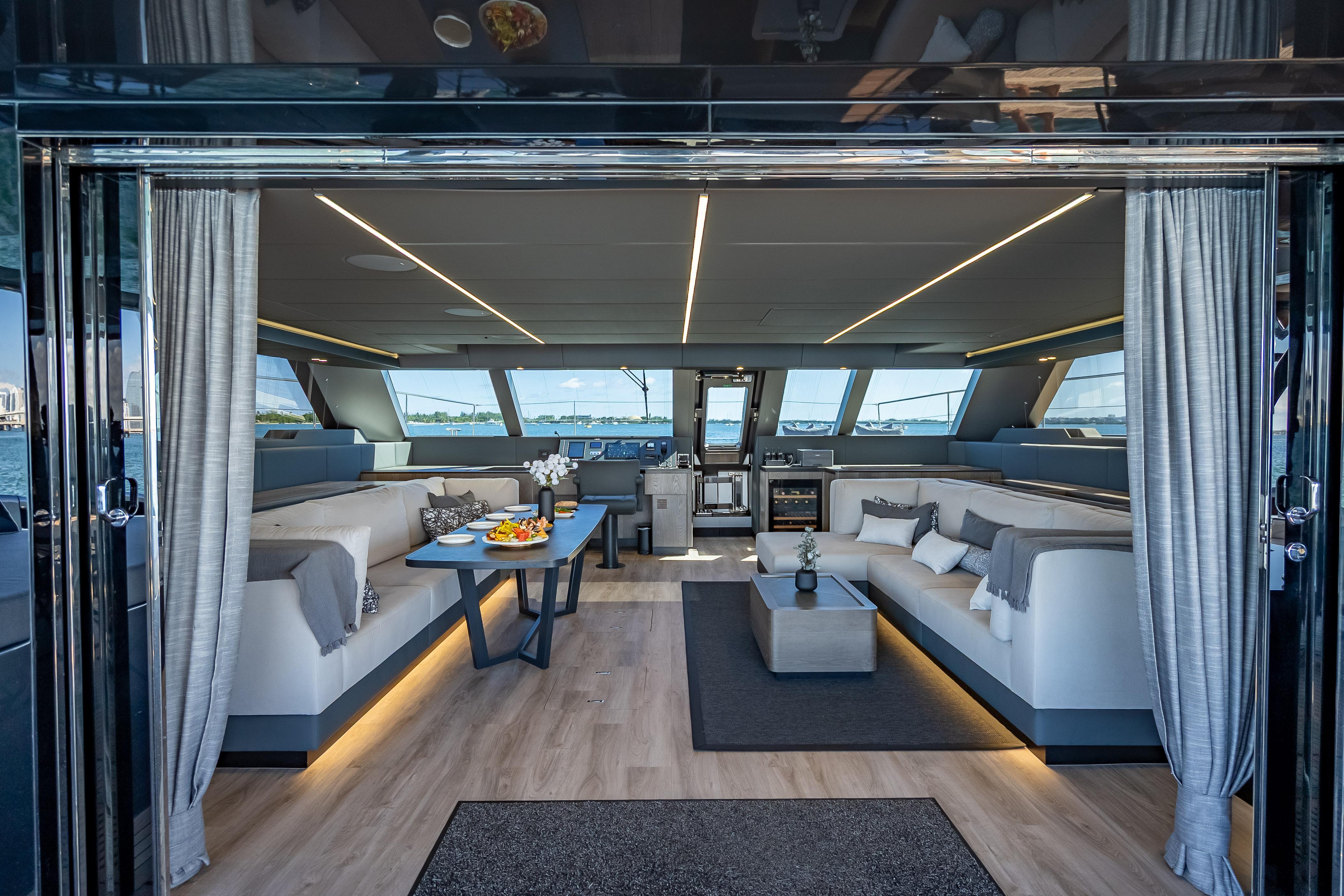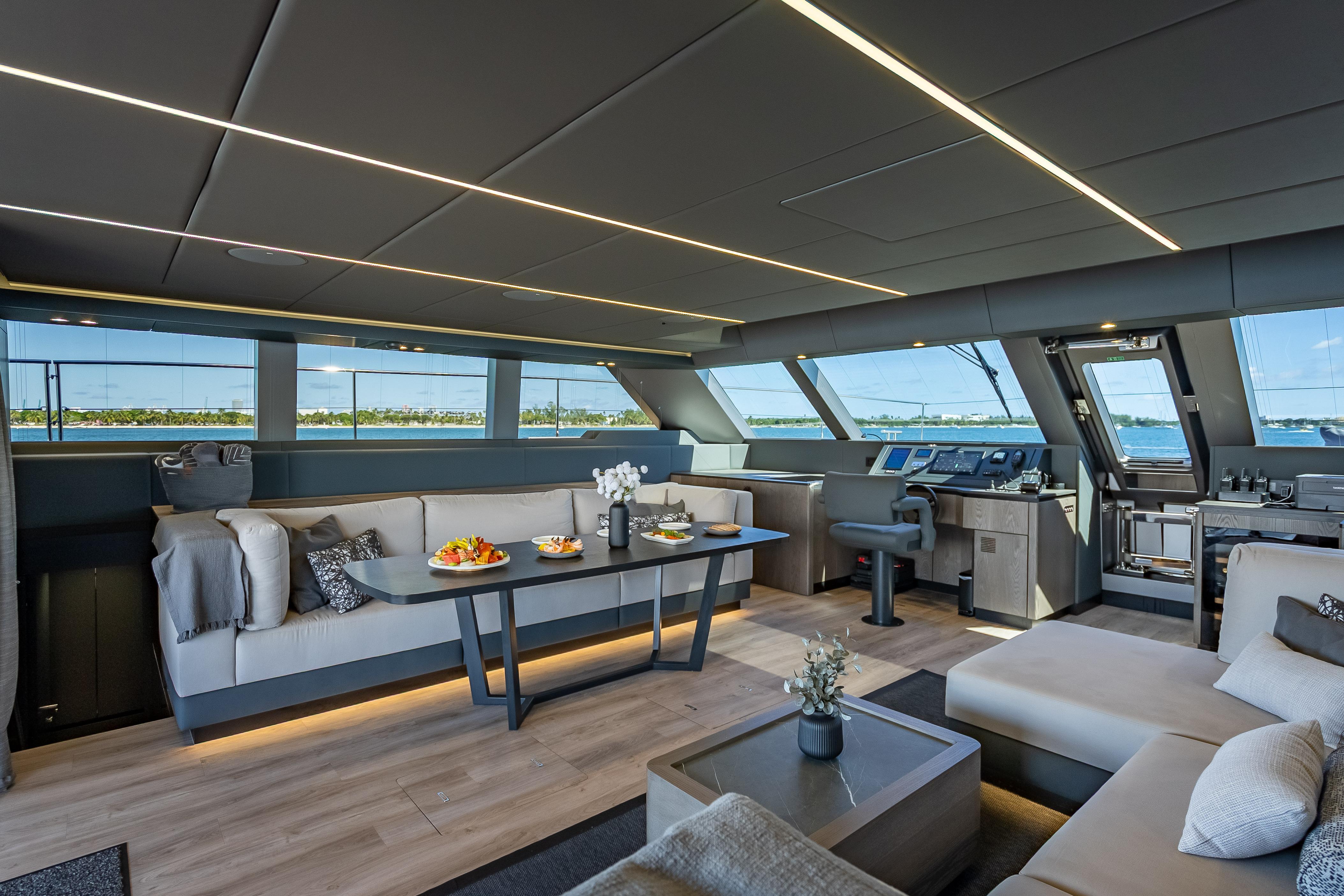 - Expansive living area of approximately 257 square meters, including a full-beam aft cockpit and customizable layouts for seamless indoor-outdoor flow.
