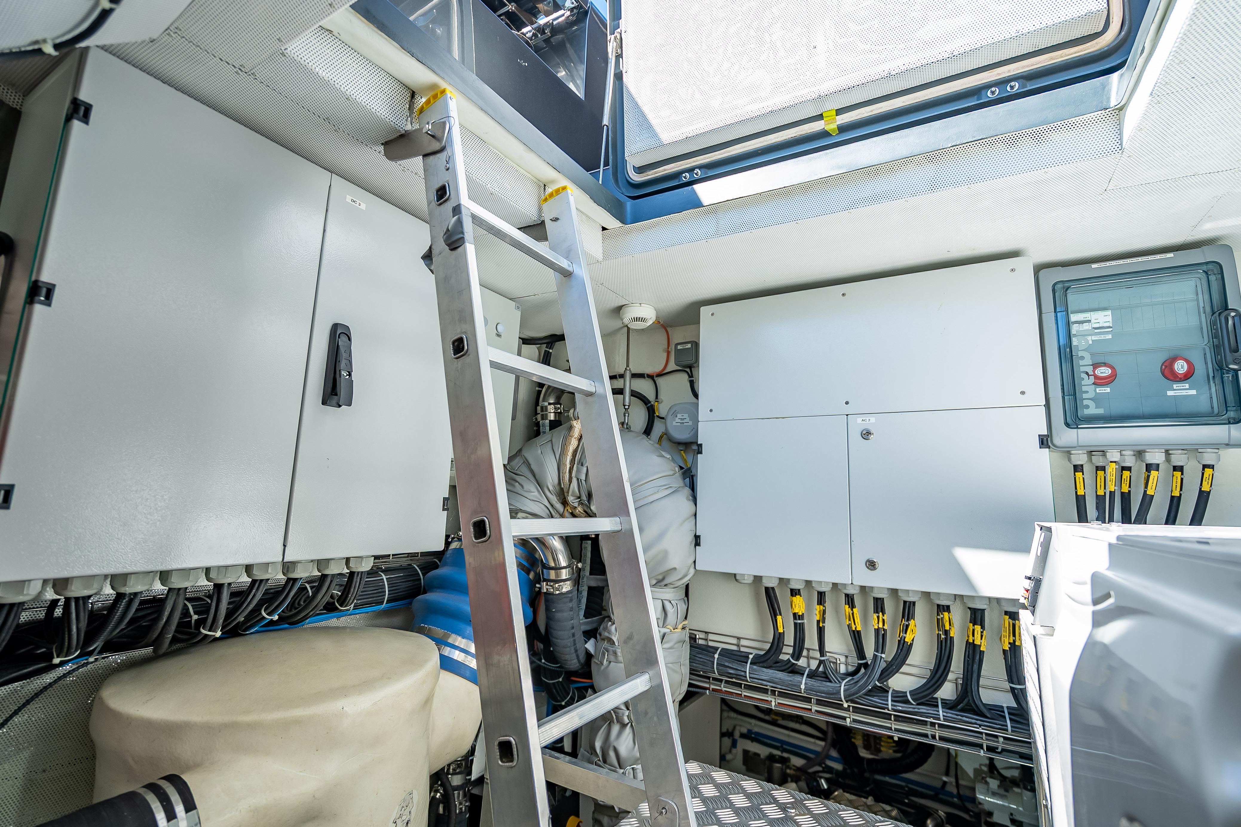 - Aft garage for tender storage, complemented by a spacious flybridge ideal for al fresco dining and panoramic views.