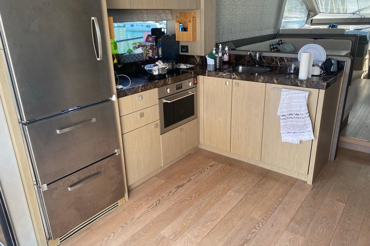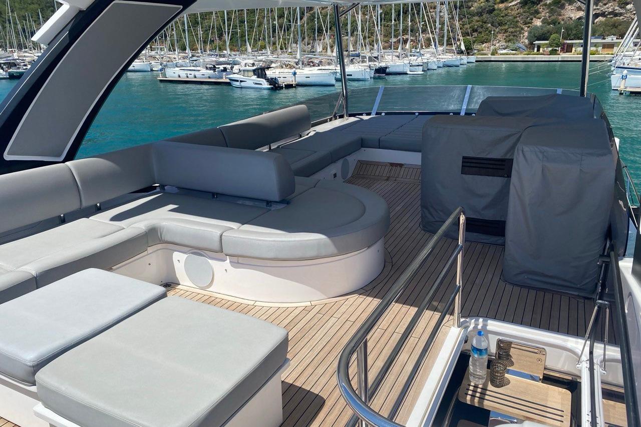 Introducing the stunning 2019 Sunseeker Manhattan 66, a remarkable motor yacht that embodies luxury and performance. With an impressive overall length of 21.65 meters, this vessel is designed for both comfort and style. The fiberglass hull features a planing shape, ensuring smooth navigation and stability on the water. Powered by twin MAN V8 1000 inboard engines, each delivering 735 kW, this yacht achieves a cruising speed of 23 knots and a maximum hull speed of 32 knots, making it perfect for exhilarating adventures. With a range of 300 kilometers, you can explore far and wide. Accommodating up to 12 guests, the yacht boasts five cabins and four heads, providing ample space for relaxation. Enhanced with modern features such as joystick control and an electric windlass, the Manhattan 66 offers an effortless and enjoyable boating experience. This vessel is a true testament to elegance and engineering excellence.