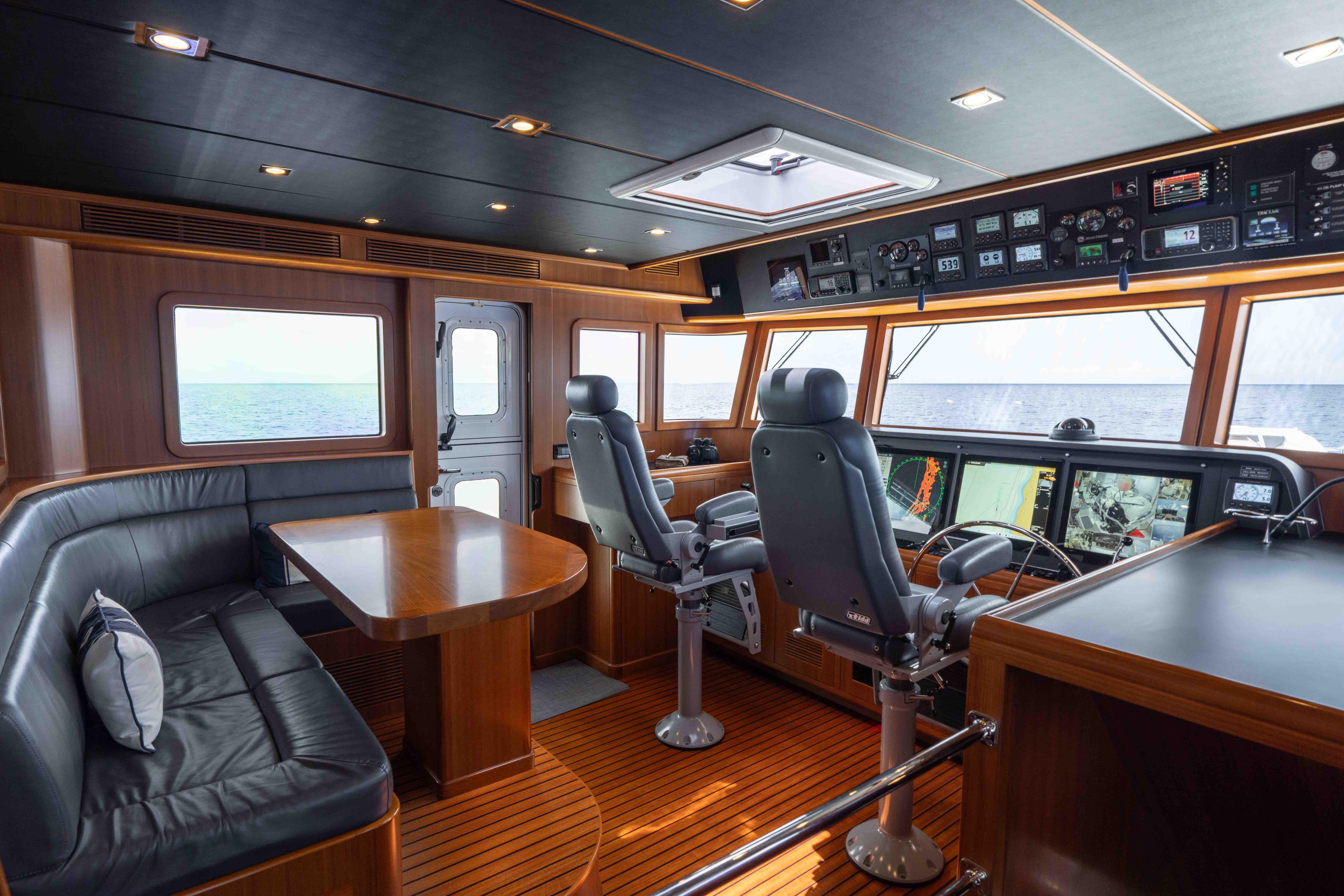 - Wing stations to both port and starboard for easy docking that feature: Electronic gear controls, Icom HM-195GB VHF radio, Bow & Stern thruster controls, Windlass control & Steering control as well as upgraded bracket to hold hatch open in strong winds