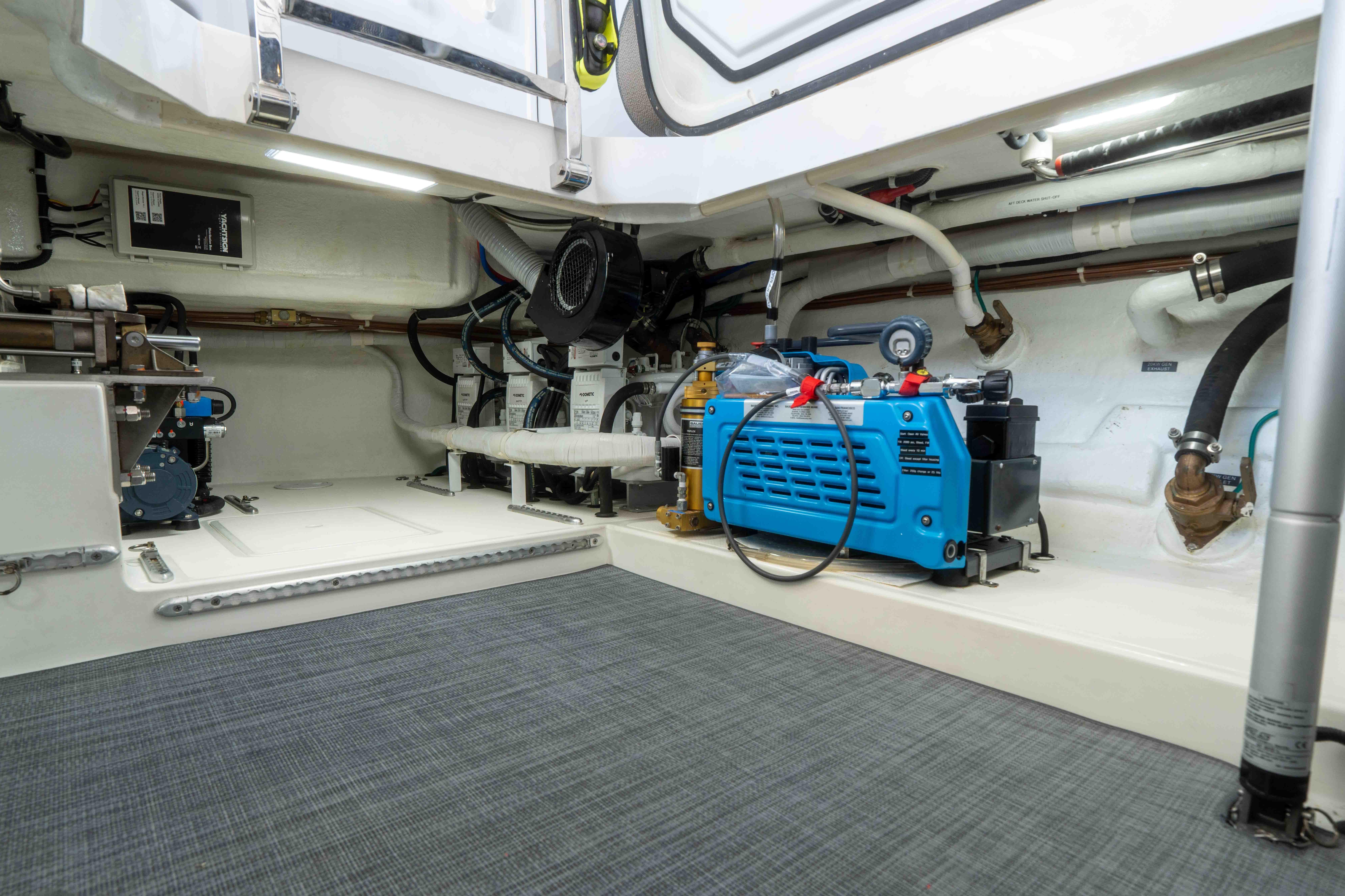 Forepeak - Accessed in the deck of the VIP stateroom, there is a ball mounted on the hatch lock to ensure nothing catches it when going in or out.