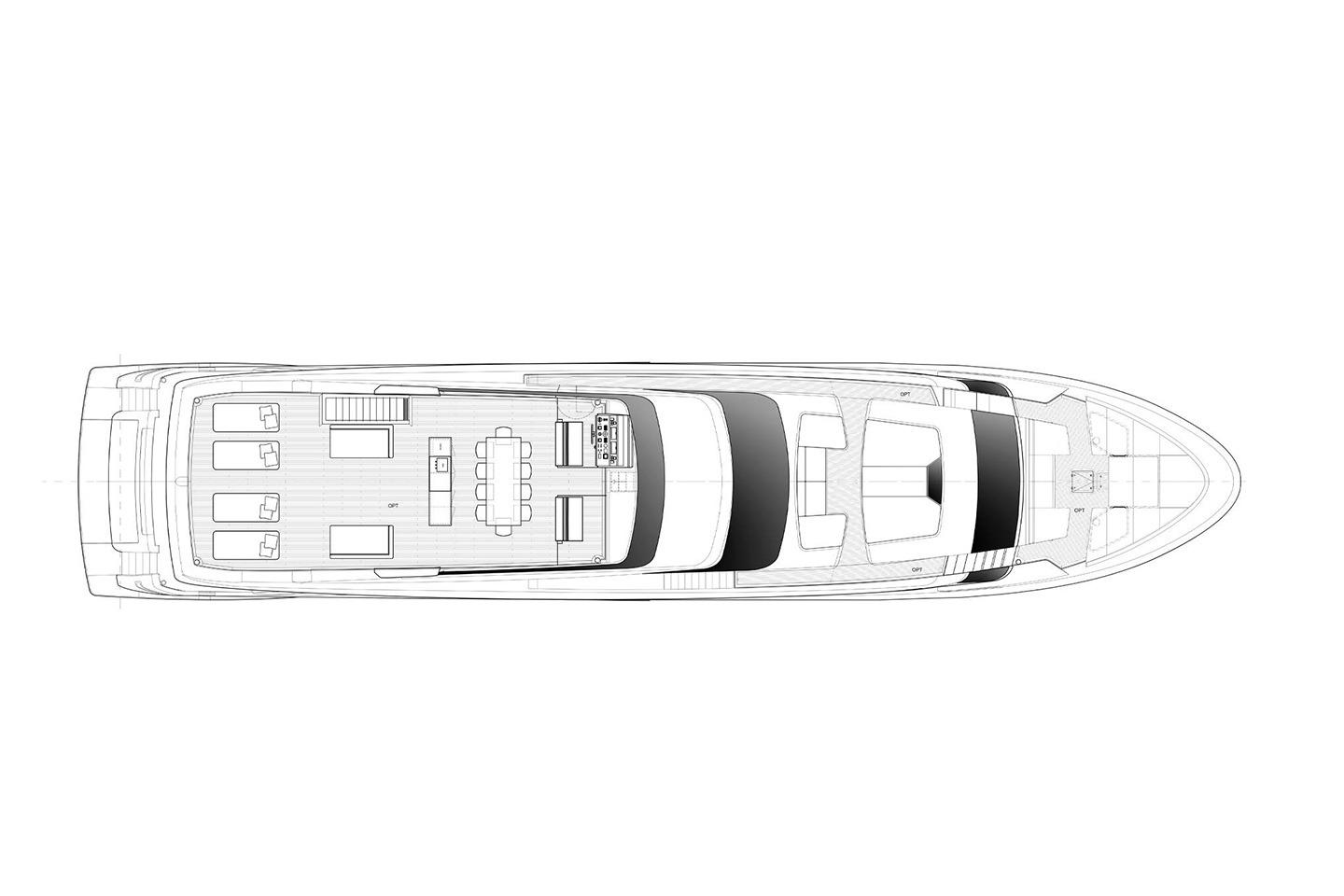 In front of the flybridge on the foredeck there is a beautiful sunbathing area. The flybridge itself has a classy, timeless feel, with a barbecue and outdoor dining area. The yacht's upper driving position offers breathtaking views.