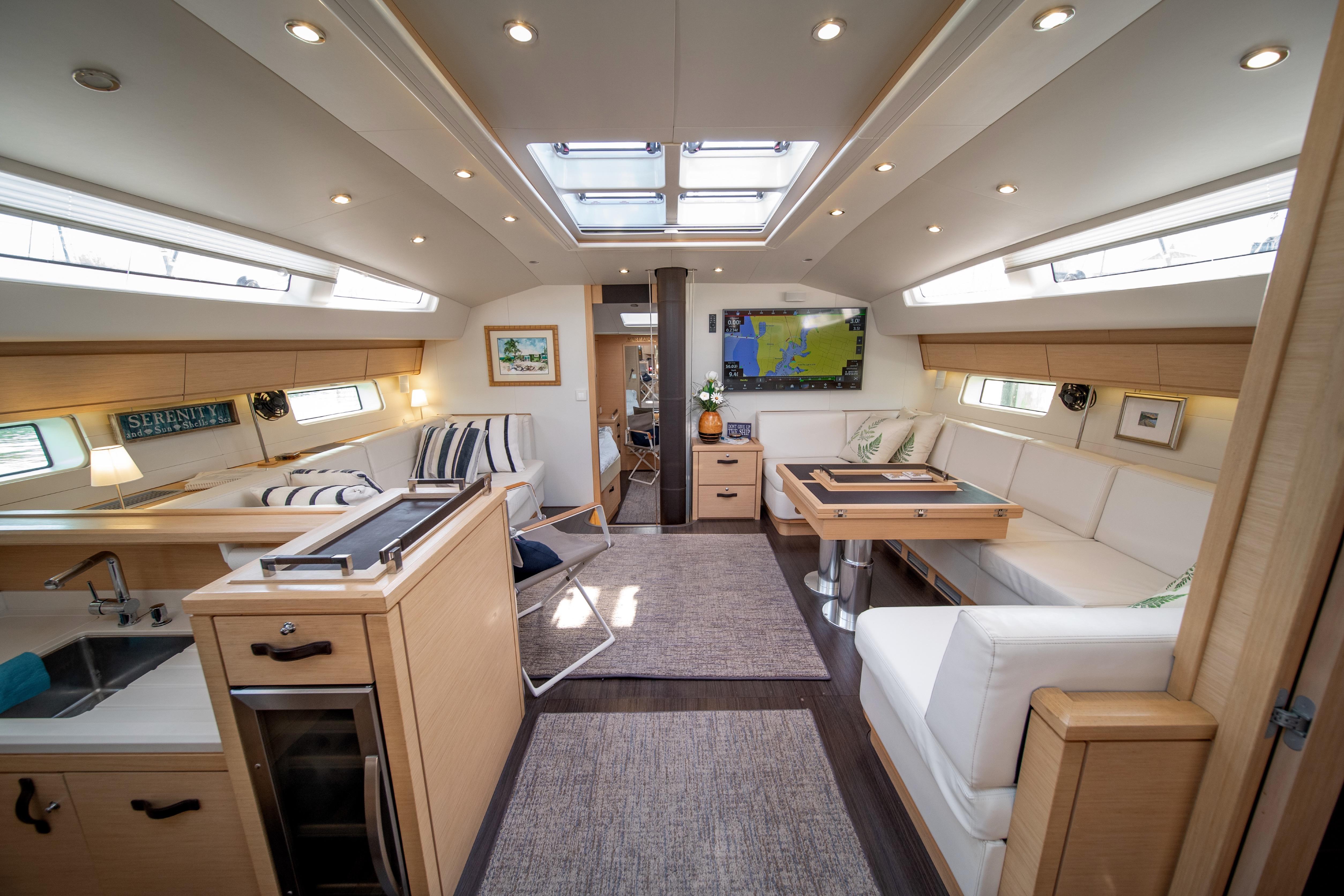 Serenity stands out as the most fully equipped and highly customized Jeanneau 64 on the water today. Her owner has spared no expense to transform her into a yacht capable of extensive world travel or perfect for island cruising. The focus of these upgrades has been on enhancing comfort, practicality, and ease of sailing, turning Serenity into a vessel ideal for weekend getaways or long voyages—perfect for live-aboard cruising or entertaining loved ones.