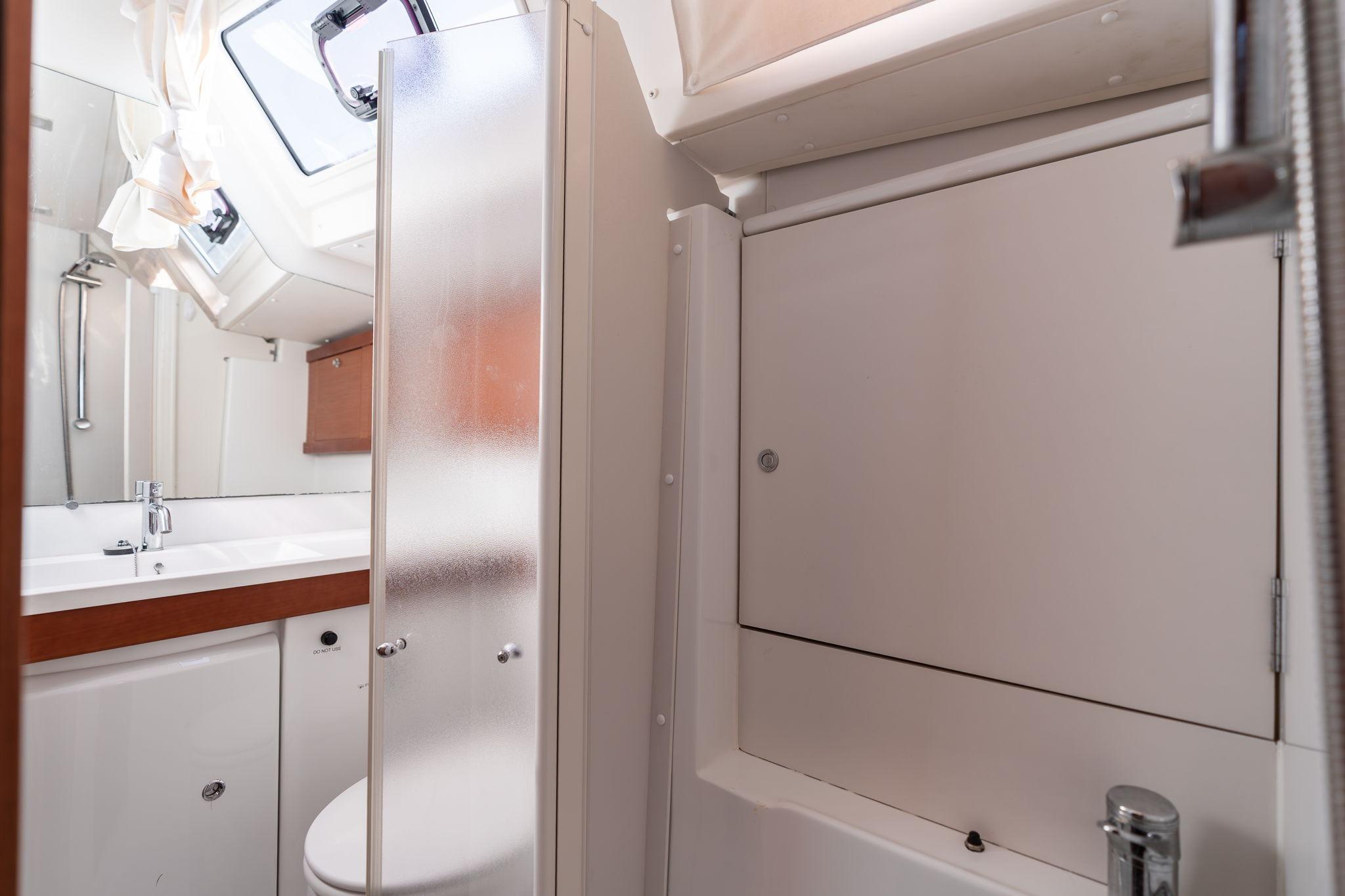 Below deck, the Oceanis 50 design shines with a bright, open saloon, abundant natural light, rich wood cabinetry, and a full-beam galley equipped for extended cruising. Large hull windows, generous headroom, and thoughtful ergonomics make the interior one of the most livable in its class.