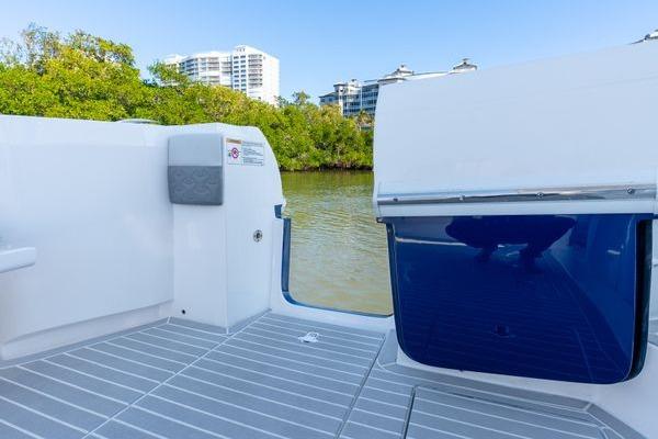 The stunning 2023 Intrepid 438 Evolution, a remarkable Express Cruiser that combines elegance with performance. With an overall length of 45.4 feet, this vessel is designed for both comfort and speed. The deep Vee hull, crafted from durable fiberglass, ensures a smooth ride through various water conditions. Powered by three robust Mercury outboard engines, each delivering 400 horsepower, this cruiser promises exhilarating performance. With only 99 hours of use, these engines are ready for your next adventure. The stainless steel, 4-blade propellers enhance efficiency and handling, making every journey enjoyable. Equipped with joystick control, maneuvering this beauty is effortless, allowing for precision docking and navigation. The Intrepid 438 Evolution is not just a boat; it's an invitation to explore the open waters in style and luxury. Experience the thrill of cruising with this exceptional vessel that embodies both innovation and craftsmanship.