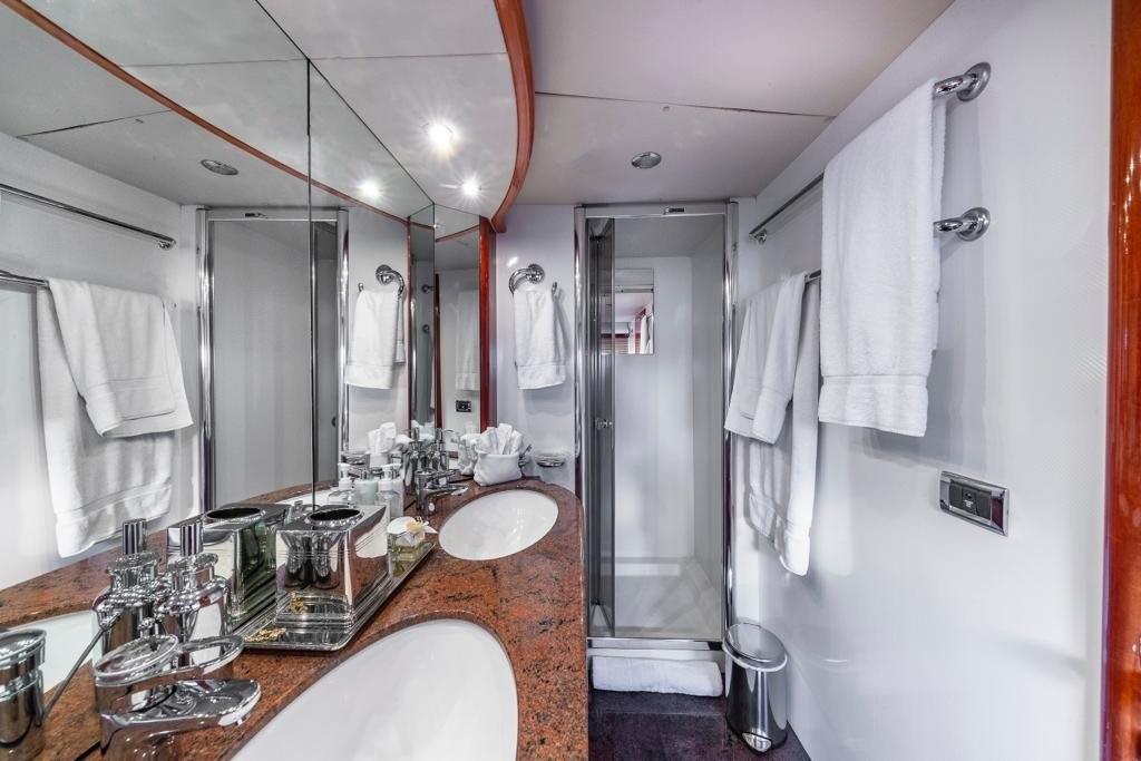 The 82' Sunseeker Yacht offers luxurious accommodation for up to eight guests across four beautifully appointed staterooms. The expansive Master Suite and VIP Stateroom are complemented by two additional guest cabins — one with twin beds and the other with bunks — each thoughtfully designed for comfort and style. Every stateroom is finished to an exceptional standard, featuring rich materials, elegant details, generous storage, and a private en-suite head.